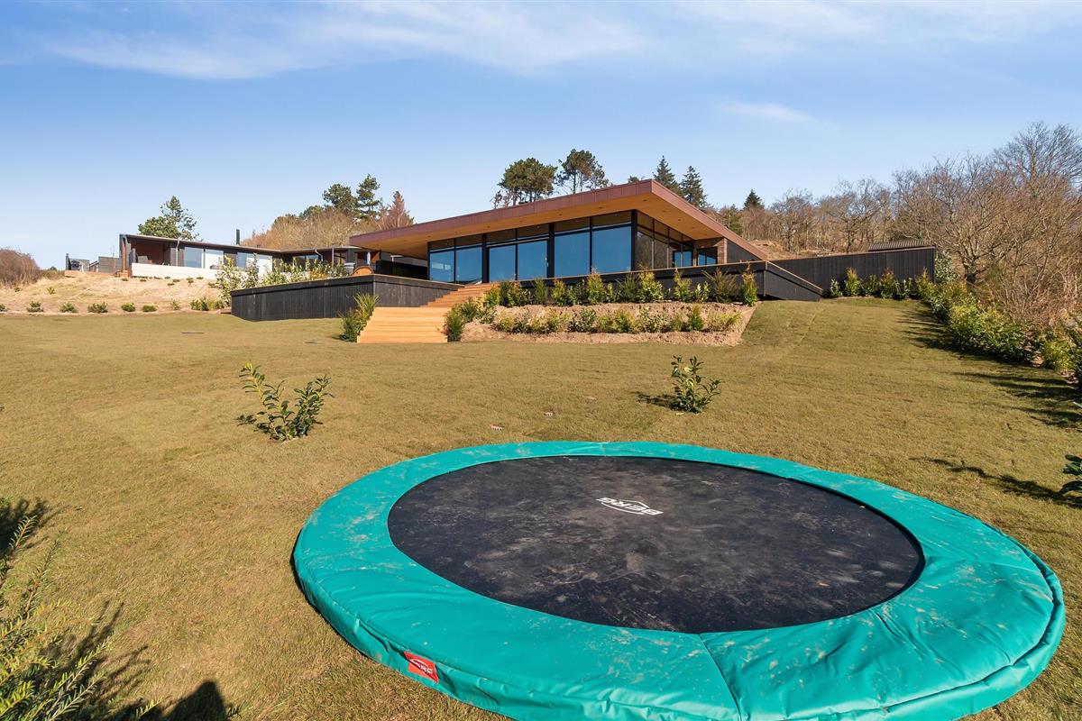 Bij het huis hoort een open perceel met ruimte voor ontspanning en diverse, kindvriendelijke faciliteiten zoals buitentafeltennis en een trampoline. Of u nu binnen wilt dineren of bij zomers weer liever buiten zit, alle gasten vinden een plekje aan de mooie eettafels. In de koelere seizoenen kunt u na een verfrissende wandeling terecht in de sauna.