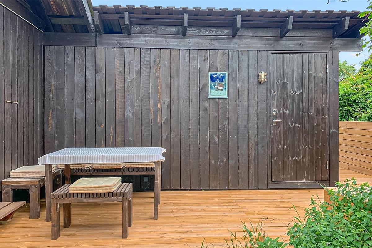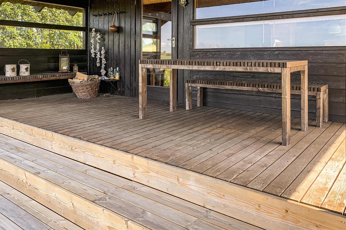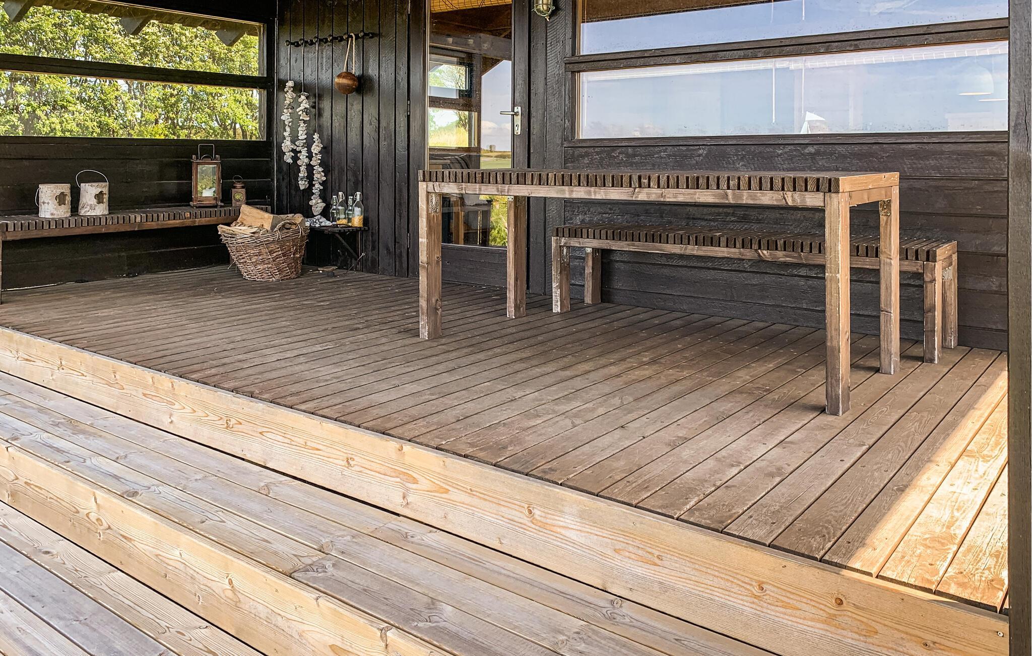 Gebruik het ruime terras om te zonnebaden of te ontspannen met een boek in een ligstoel. De gedeeltelijk overdekte houten veranda biedt beschutting op winderige dagen en is ideaal om buiten te ontbijten of dineren. De natuurlijke tuin met eenvoudige buitenzitjes past harmonieus in de omgeving.