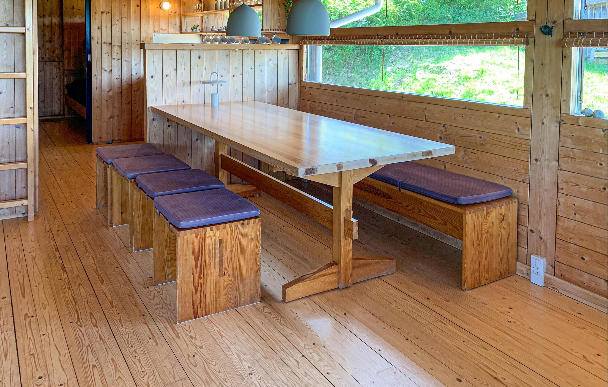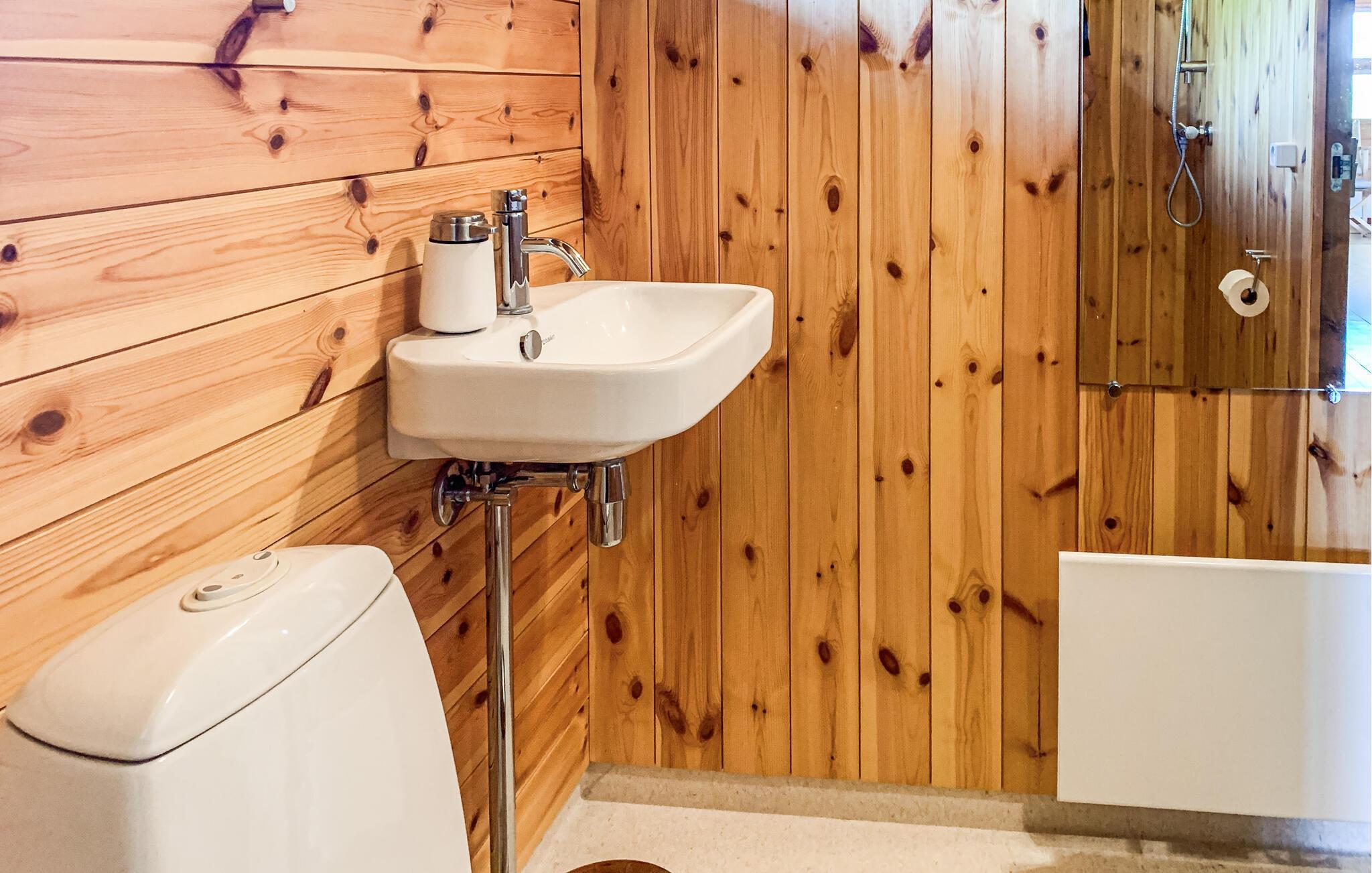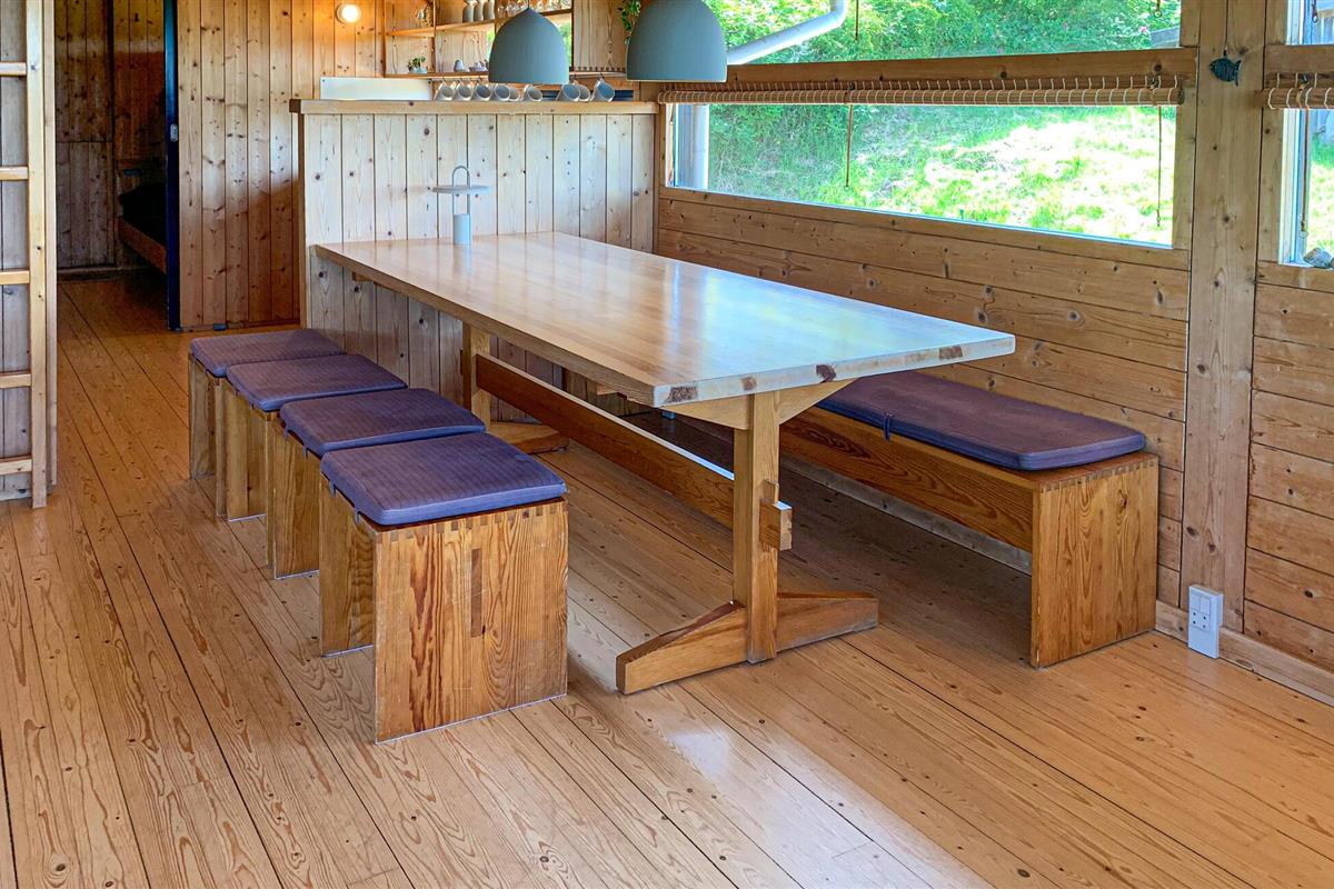 Gebruik het ruime terras om te zonnebaden of te ontspannen met een boek in een ligstoel. De gedeeltelijk overdekte houten veranda biedt beschutting op winderige dagen en is ideaal om buiten te ontbijten of dineren. De natuurlijke tuin met eenvoudige buitenzitjes past harmonieus in de omgeving.