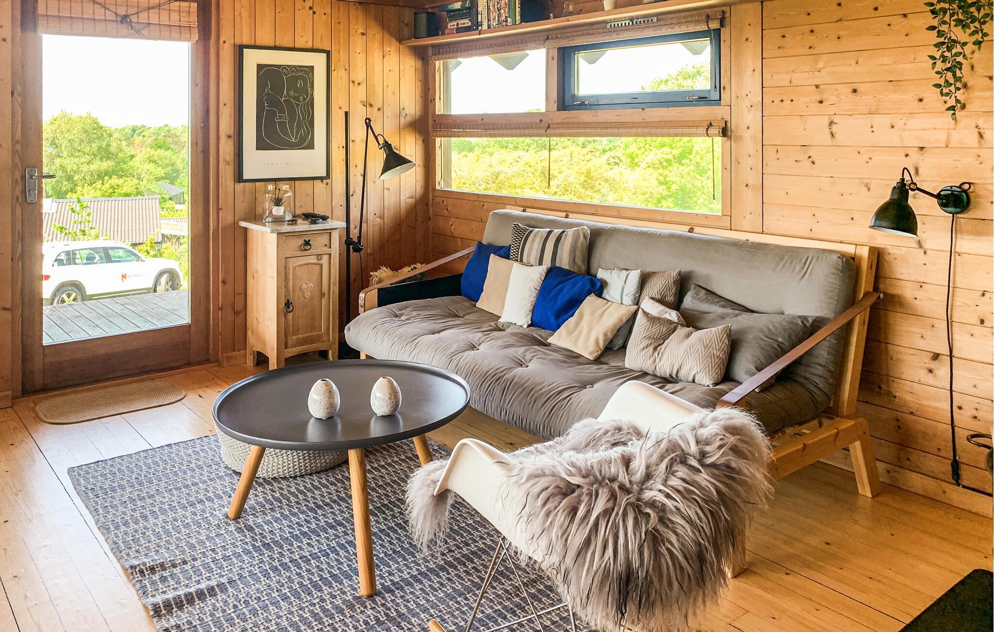 Breng een heerlijke vakantie door in dit charmante houten huis met prachtig uitzicht over de heuvels tot aan het water.
