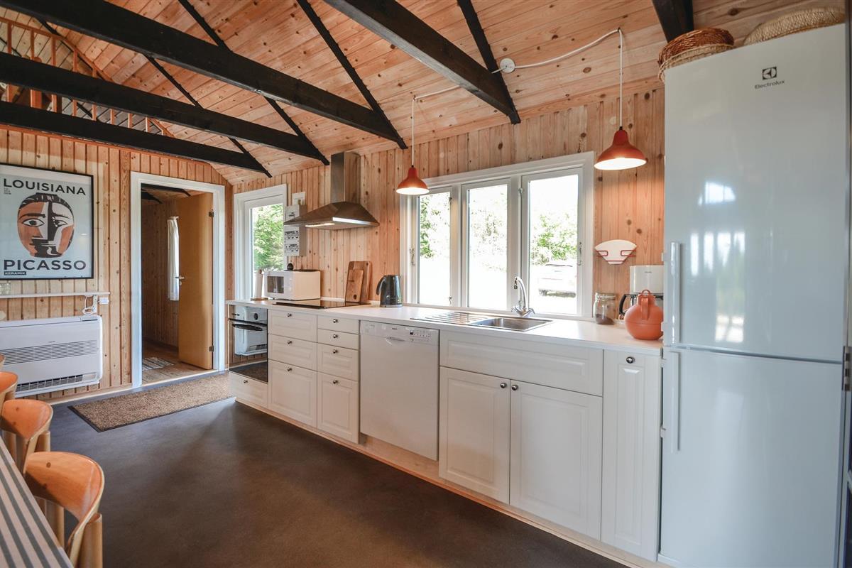 Wanneer u hier aankomt, zal het uitzicht u ademloos achterlaten. U ziet de hele kust in de baai, de lichtjes van Ebeltoft bij nacht en het steeds veranderende karakter van de zee, afhankelijk van de stand van de zon en de wind. Het huis heeft een prachtig terras. U kunt ook overnachten in de beschutting. U kunt proberen stokbrood te bakken op de kampvuurplaats. Er is ook een schuilplaats voor overnachtingen in de buitenlucht (neem uw eigen uitrusting mee). Natuurcentrum Karpenhøj en Nationaal Park Mols Bjerge liggen vlakbij. Het is slechts 15 minuten rijden naar Ebeltoft om te winkelen en te eten. Vanaf hier loopt u in 10 minuten naar het mooie badstrand met een goede zwemsteiger.
