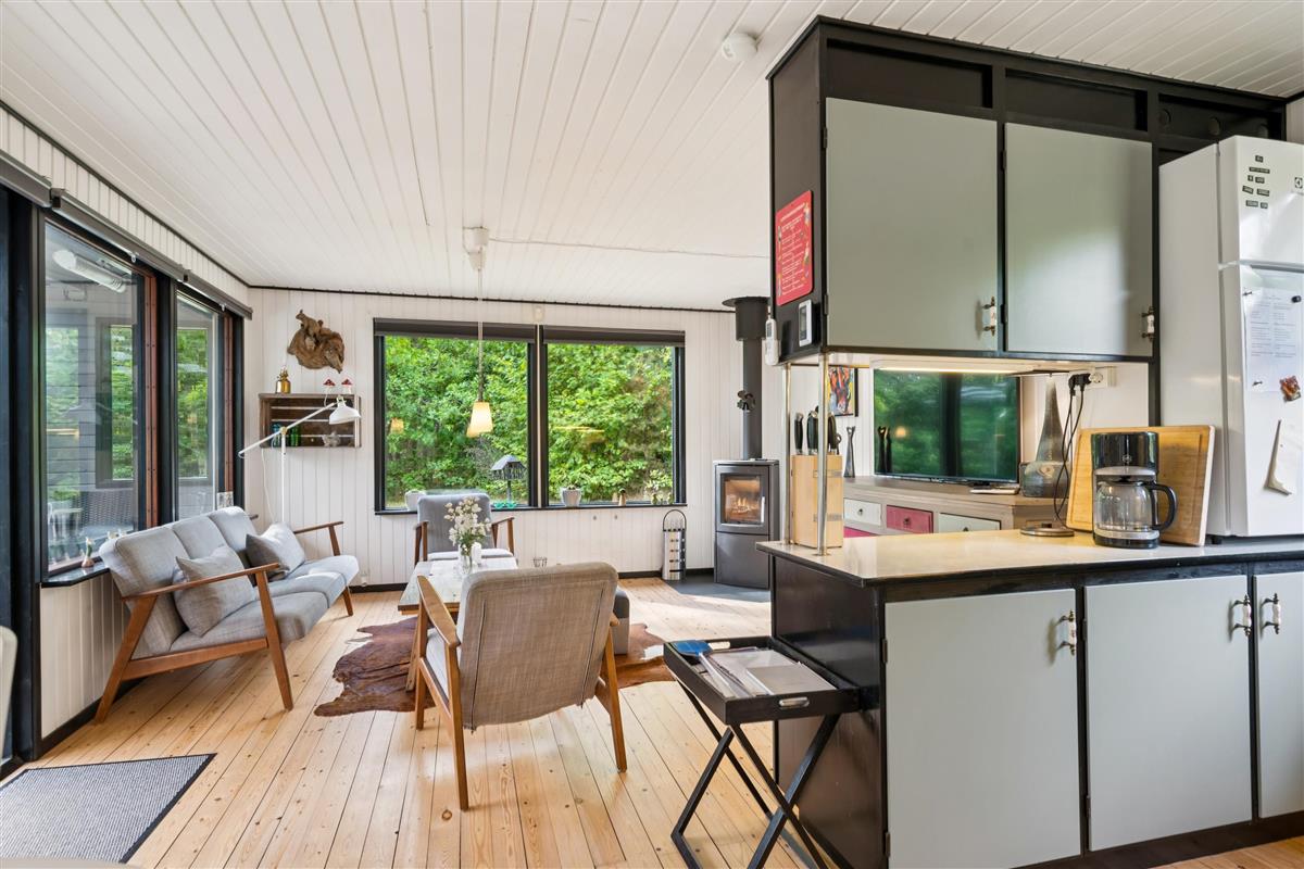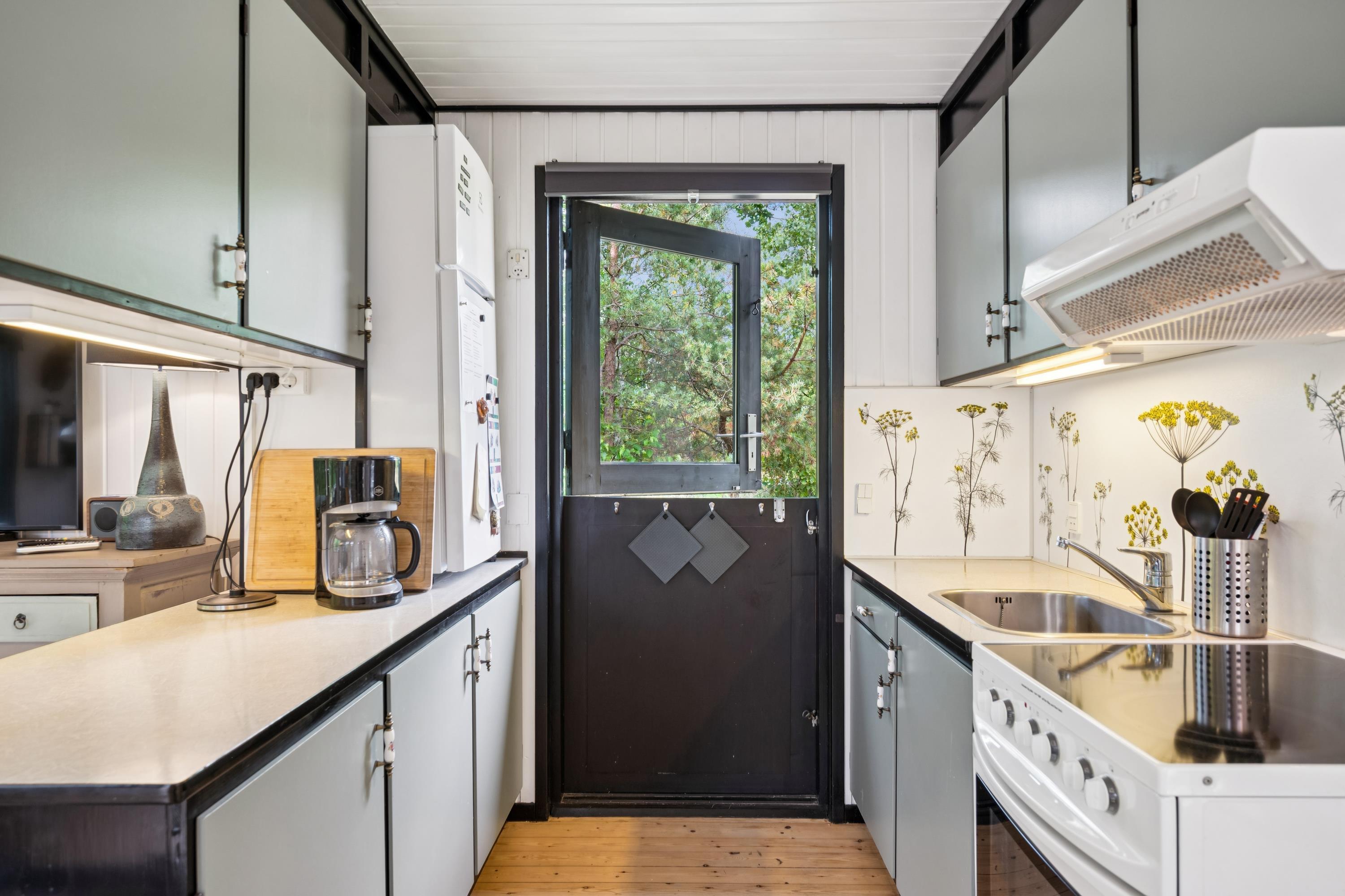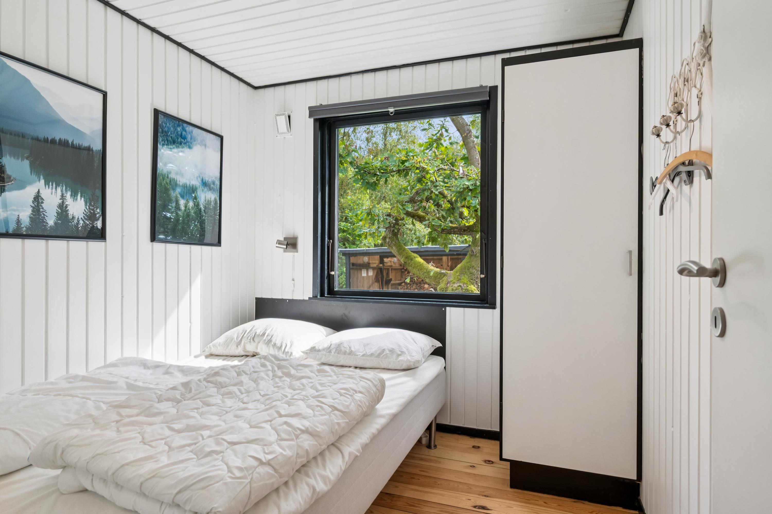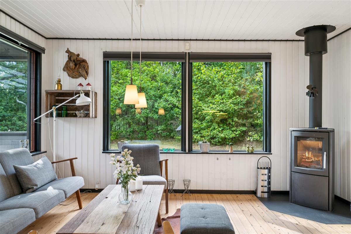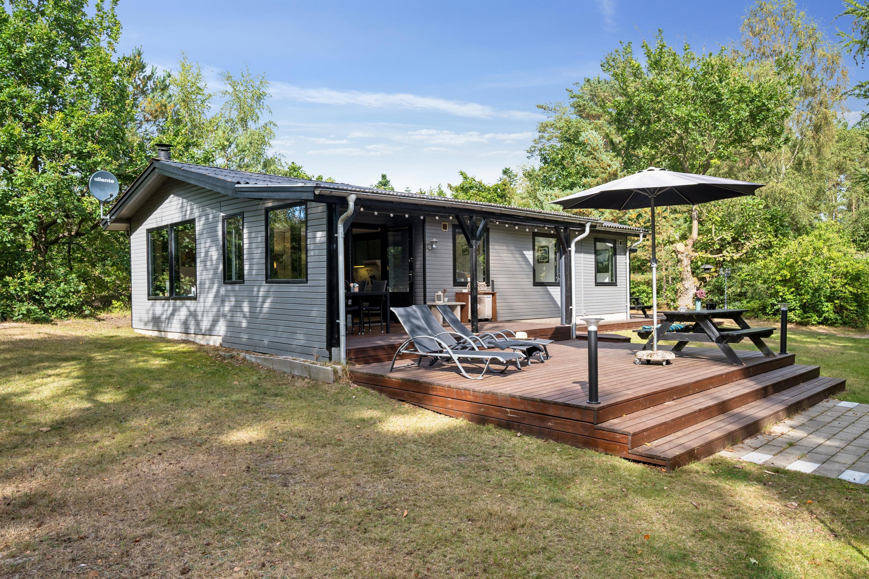 In a beautiful natural setting close to Ebeltoft, you will find this older but very cosy holiday home. The house is located on a lovely plot with spacious terrace areas. The living room features a wood-burning stove, a heat pump, and a TV with Danish, German, and Nordic channels. From here, there is access to a covered terrace with garden furniture. Next to the living room, you will find a smaller but well-functioning kitchen and a nice dining area. The bathroom is modern and includes a shower. The sleeping arrangements consist of three bedrooms – two with double beds and one with a bunk bed. For the youngest guests, a highchair and a cot are available. The large lawn is ideal for play and outdoor activities. There is also a cosy fire pit where you can gather to roast bread twists or marshmallows, and for children, there is a football goal.