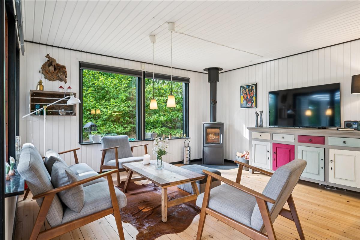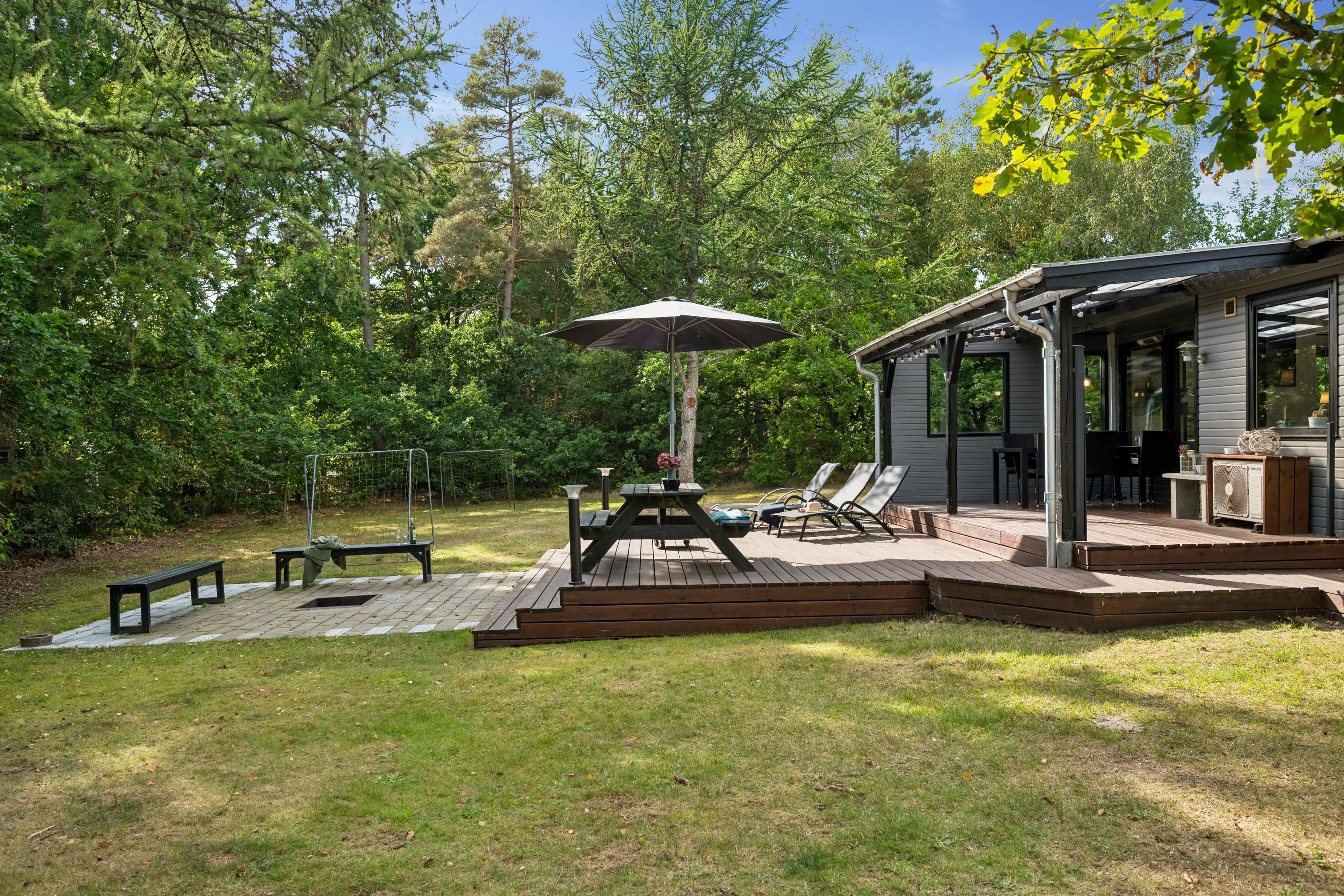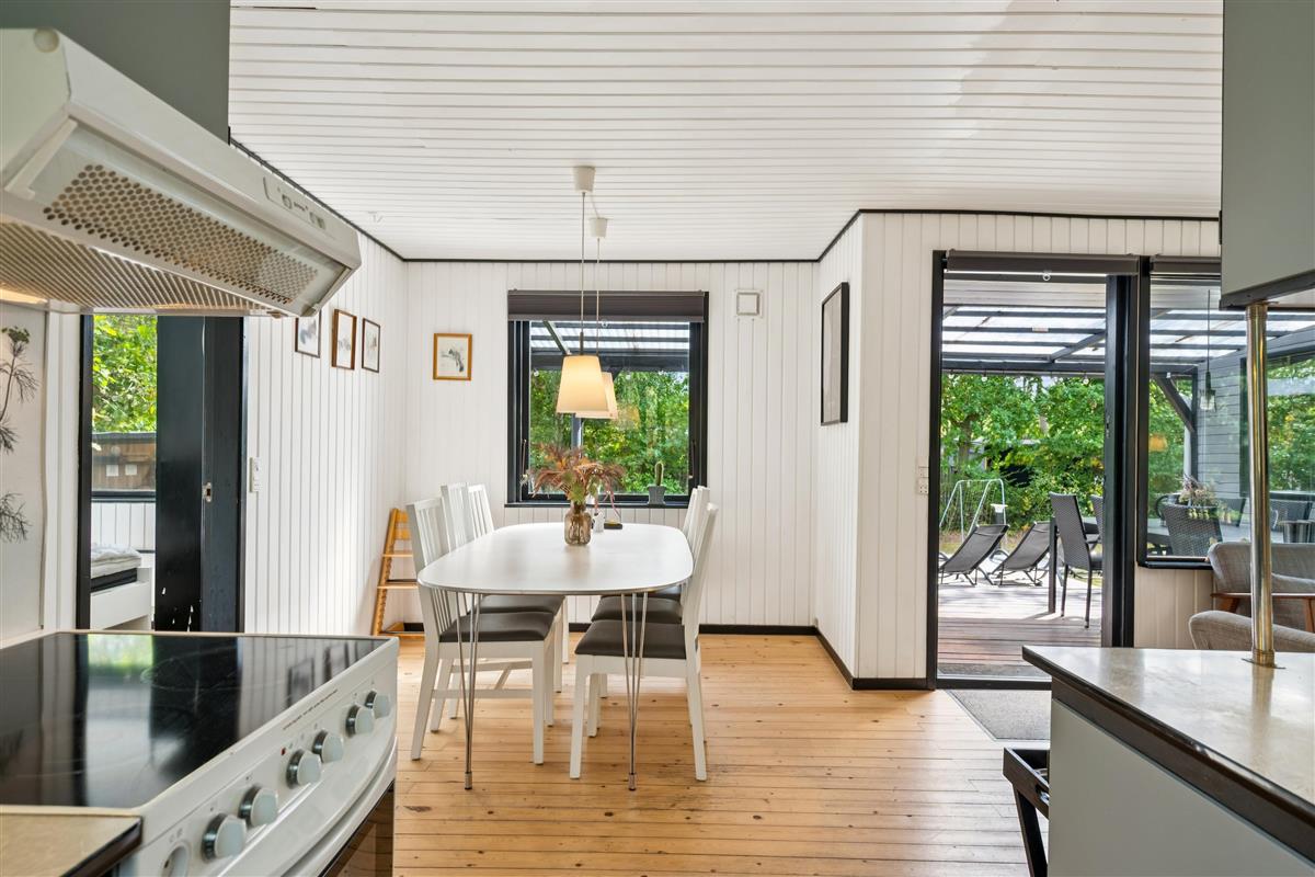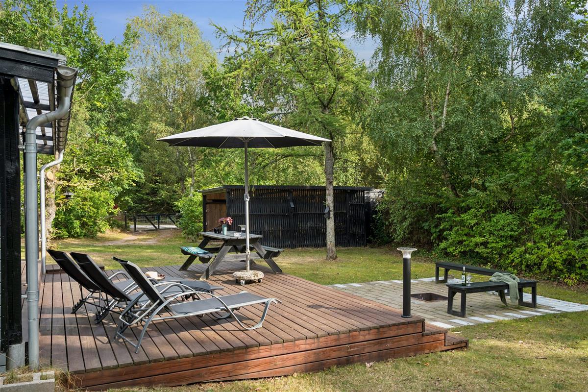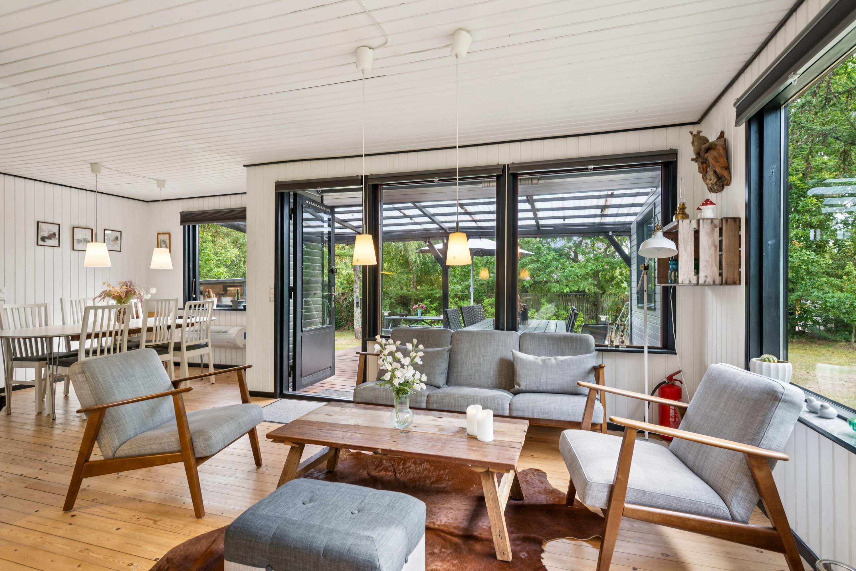 In a beautiful natural setting close to Ebeltoft, you will find this older but very cosy holiday home. The house is located on a lovely plot with spacious terrace areas. The living room features a wood-burning stove, a heat pump, and a TV with Danish, German, and Nordic channels. From here, there is access to a covered terrace with garden furniture. Next to the living room, you will find a smaller but well-functioning kitchen and a nice dining area. The bathroom is modern and includes a shower. The sleeping arrangements consist of three bedrooms – two with double beds and one with a bunk bed. For the youngest guests, a highchair and a cot are available. The large lawn is ideal for play and outdoor activities. There is also a cosy fire pit where you can gather to roast bread twists or marshmallows, and for children, there is a football goal.