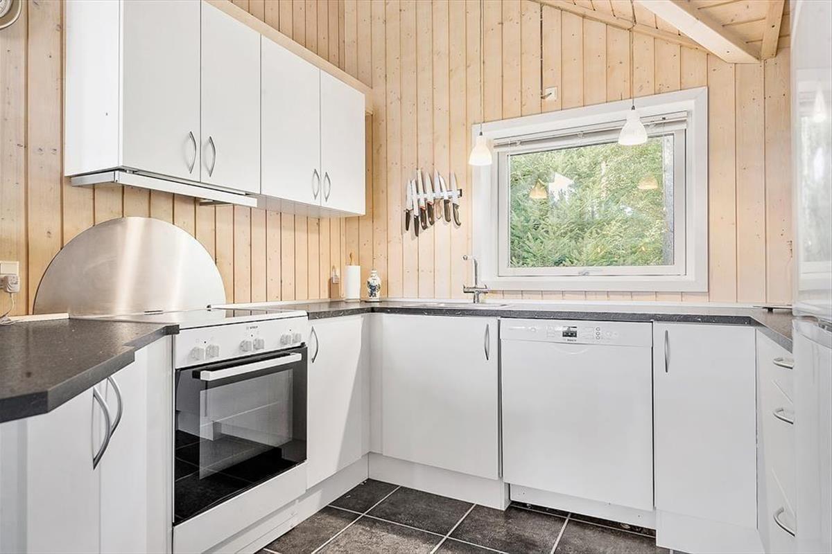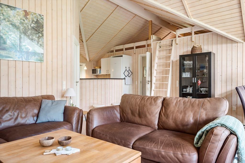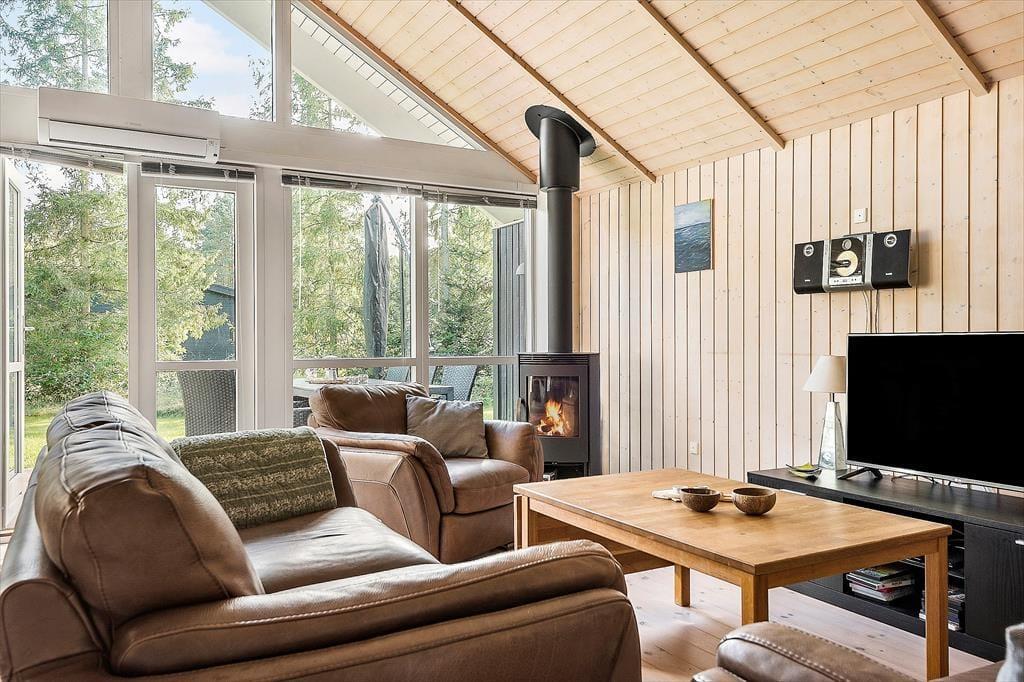 Dein helles, angenehm geräumiges Urlaubsdomizil empfängt dich mit einer ausgesprochen schönen Wohnatmosphäre. Das Herzstück des Hauses ist der Wohnraum, in dem komfortable Sitzmöbel und ein Kaminofen zur Verfügung stehen. Die großen Fenster des Wohnraums eröffnen einen hübschen Ausblick auf die umliegende Natur. In der gut ausgestatteten offenen Küche wird die Zubereitung der täglichen Mahlzeiten zum unterhaltsamen Gemeinschaftsprojekt. Der große Esstisch vor der Küche lädt nicht nur zu stimmungsvollen Mahlzeiten im Kreise deiner Lieben, sondern auch zum ein oder anderen vergnügten Spieleabend ein. Mit insgesamt drei Schlafräumen und einem ansprechenden Duschbadezimmer beherbergt dein Ferienhaus bis zu sechs übernachtende Personen.