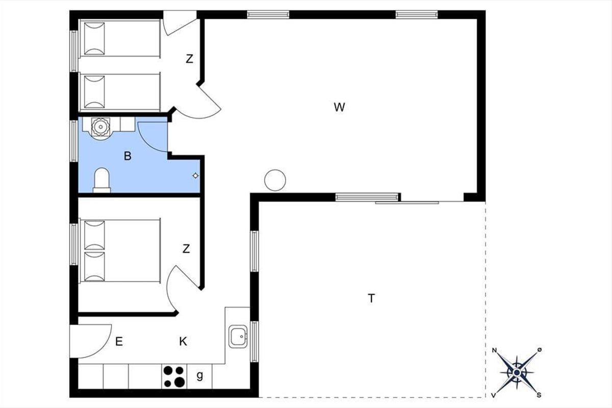 Willkommen in diesem attraktiven Ferienhaus, dessen Eigentümer großen Wert auf eine schöne Einrichtung und einen zeitgemäßen Wohnstil gelegt hat. Das Mietobjekt ist geschmackvoll und gemütlich eingerichtet. Vom kleinen Eingangsbereich gelangen Sie in den großen, tollen Wohnraum mit Möbeln, die zum Entspannen einladen. In diesem Raum können Sie von der gemütlichen Stimmung des Kaminofens untermalte Lesestunden, Fernsehabende und gesellige Runden im Kreise Ihrer Lieben verbringen. Der Wohnraum ist teilweise offen mit der funktionellen Küche verbunden, in der die Zubereitung der Mahlzeiten zum Vergnügen wird. Der Essbereich überzeugt mit einem großen Esstisch, mit Ausblick in den Garten und mit einem Ausgang auf die Terrasse. An den Wohnraum schließt das schöne Badezimmer, das sich ebenso stimmungsvoll wie der Rest des Hauses präsentiert. Es gibt 2 Schlafzimmer, eines mit einem Doppelbett und das andere mit 2 Einzelbetten.