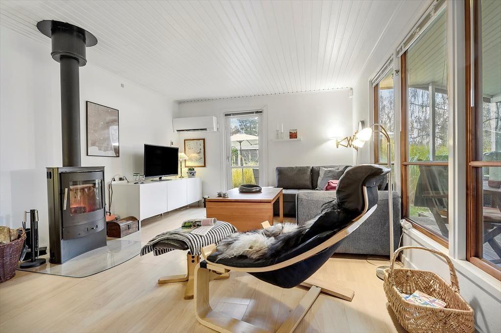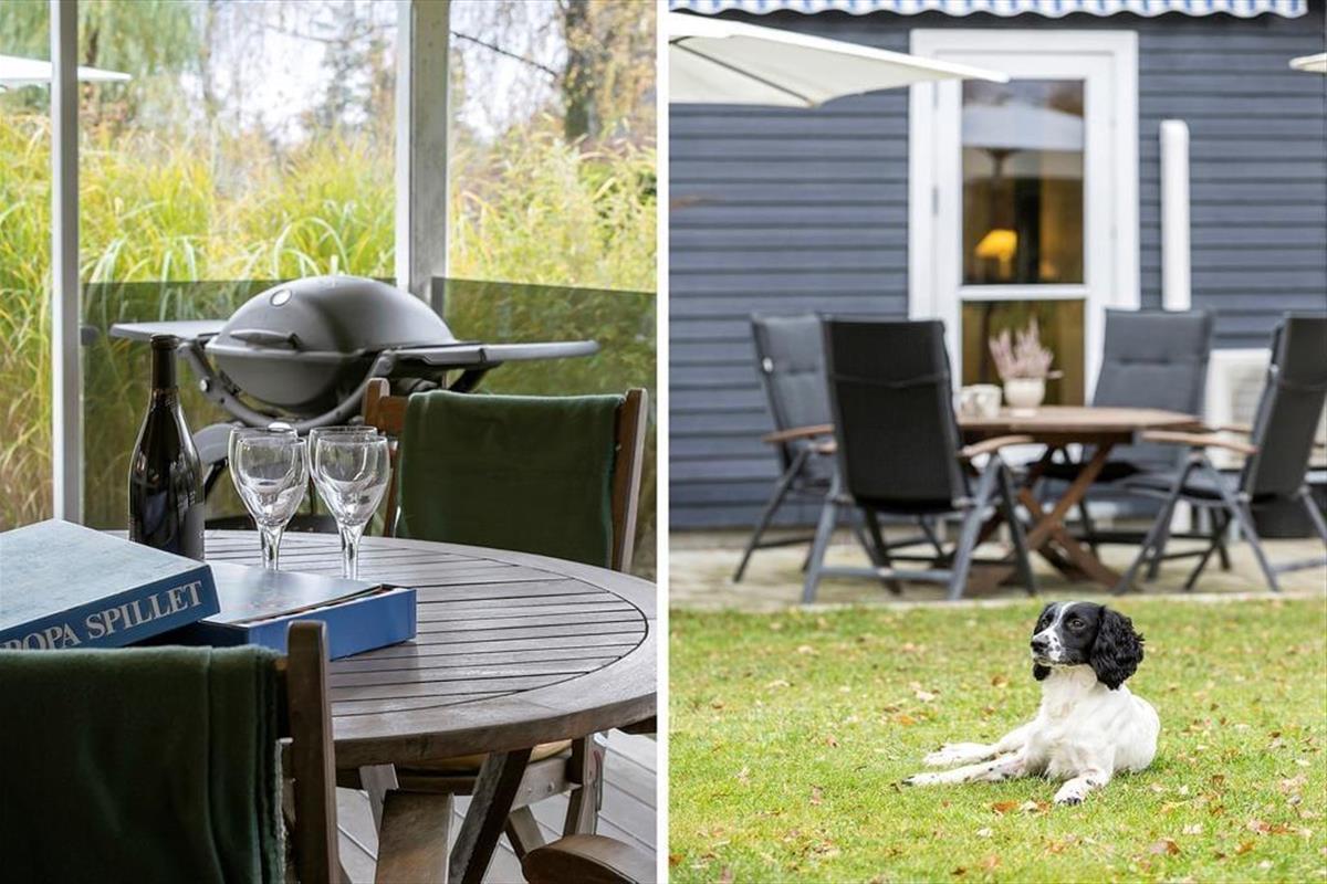 Schön und stimmungsvoll geht es auch auf deinem Ferienhausgrundstück zu. Der Garten bietet dir und deiner Familie beste Möglichkeiten, die Sonne zu genießen, euch zu erholen und unter freiem Himmel zusammen zu essen. Mache es dir in aller Ruhe mit einem Buch auf einer der Gartenliegen gemütlich oder spiele mit deinen Kinder auf der weitläufigen Rasenfläche Fußball. Am Abend lädt der hauseigene Grill zum gemütlichen Abendessen ein, bei dem ihr in der Dämmerung die Erlebnisse des Tages Revue passieren lasst. Wenn du dich zwischendurch ein wenig zurückziehen möchtest, bietet sich der überdachte Terrassenbereich vor dem Hauseingang an.