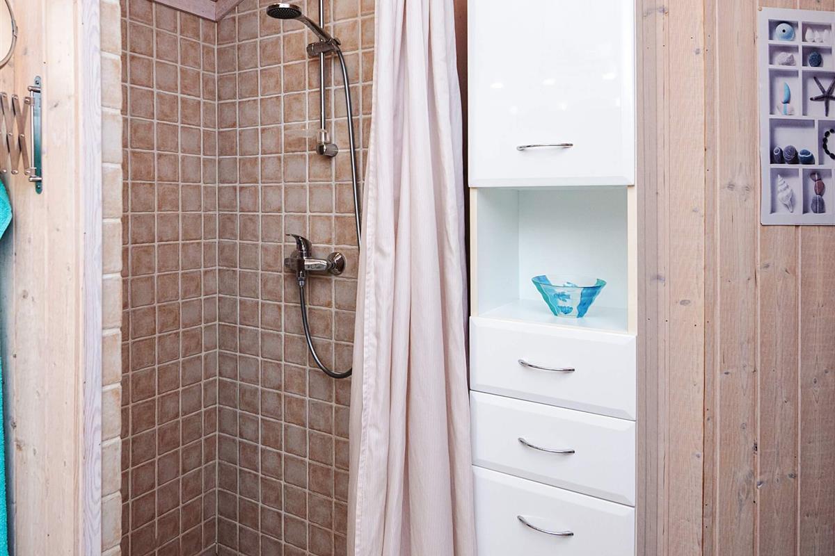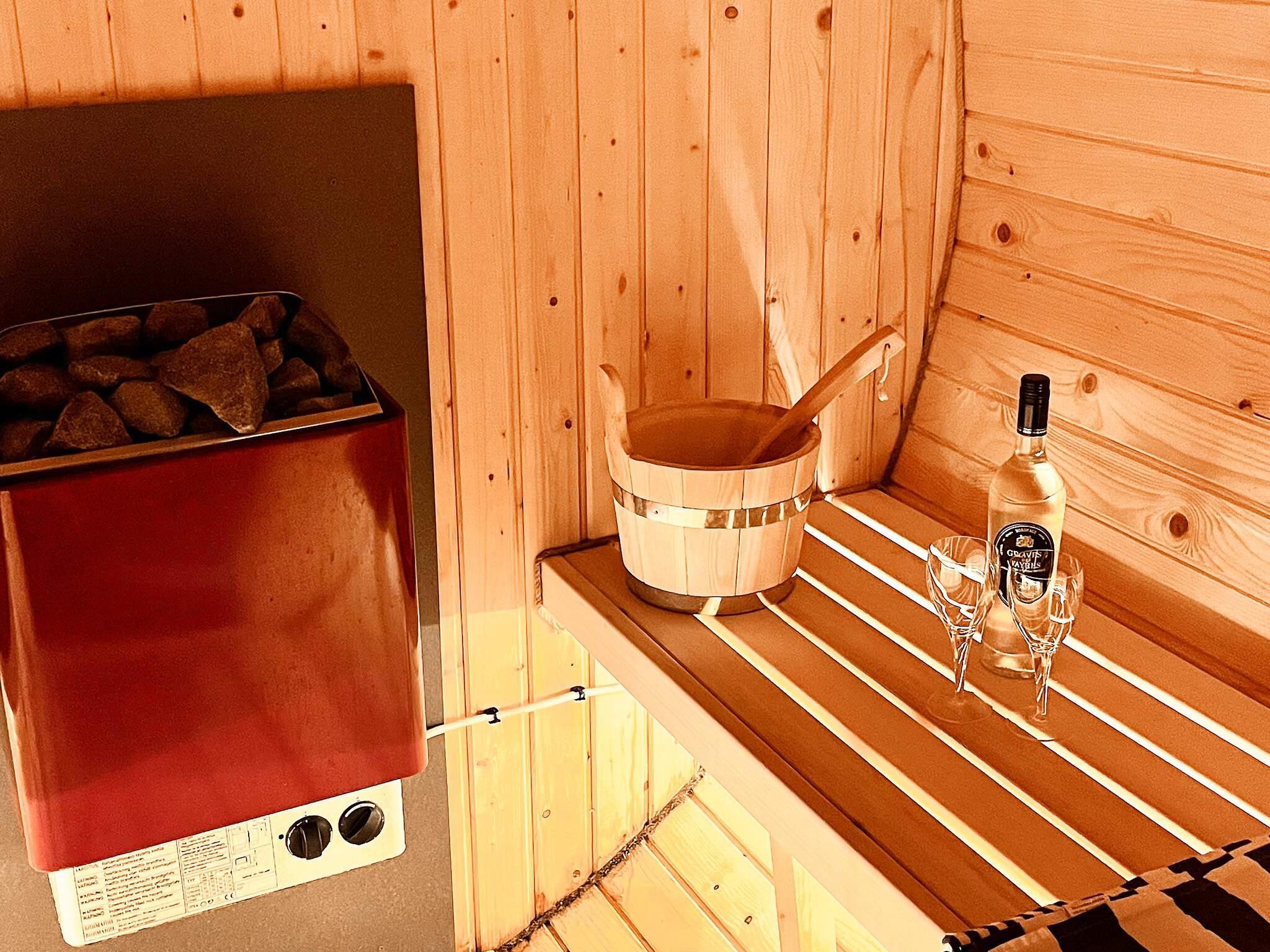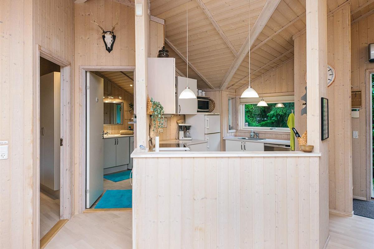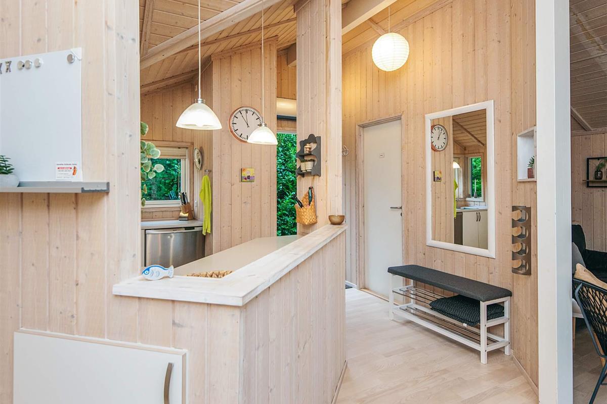 Und: Terrasse, überd. Terrasse, Carport, Außendusche, E-Heiz., Luft-Luft-Wärmepumpe, Grill, Naturgrundst. m. Bäumen 1200 m2, moderne Möblierung, Ferienhausgebiet, Nichtraucherhaus
