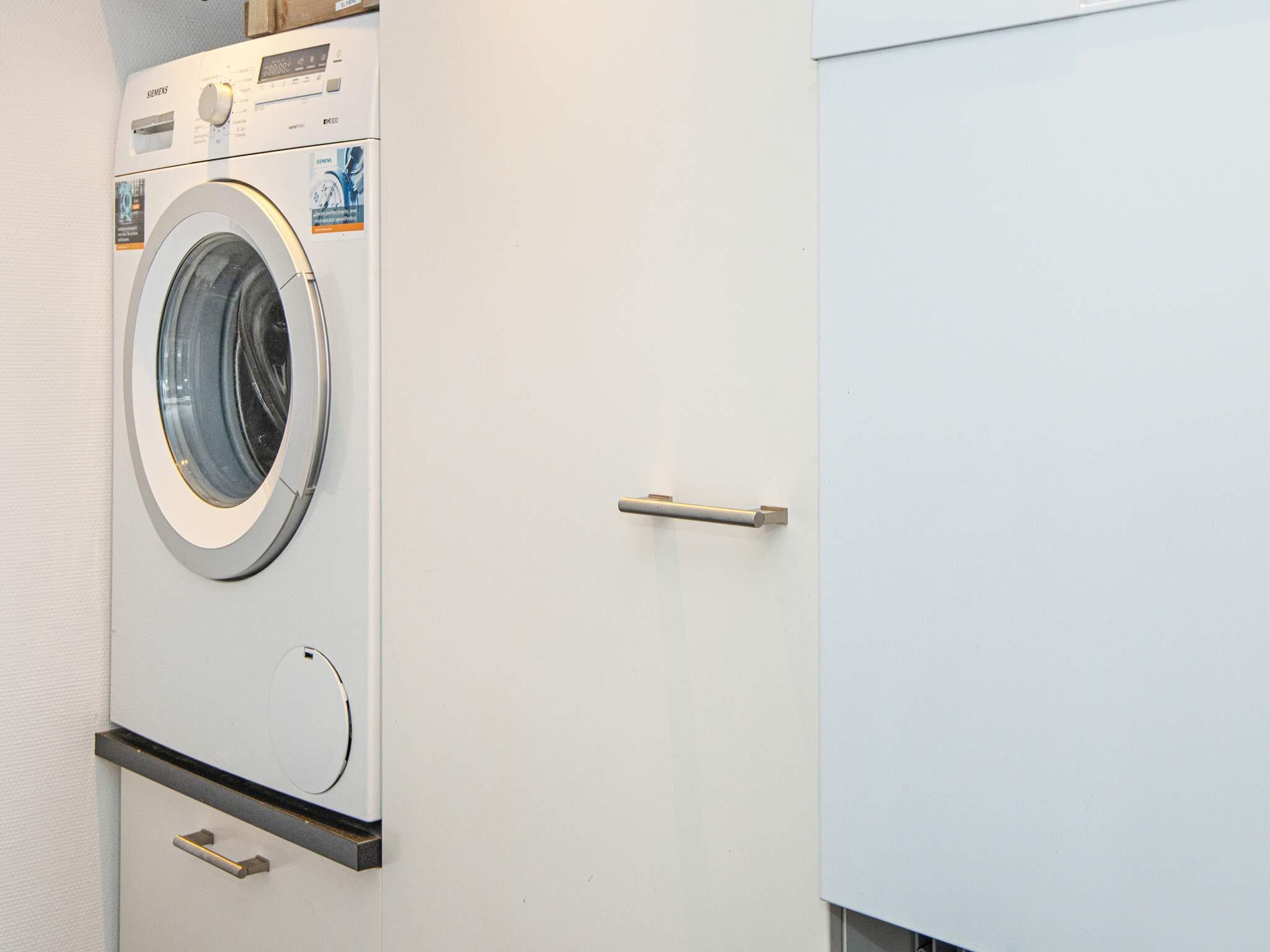 Küche: E-Herd, Kühlschr. m. Gefrierfach, Mikrow., Kaffeem., Spülm., Waschm.