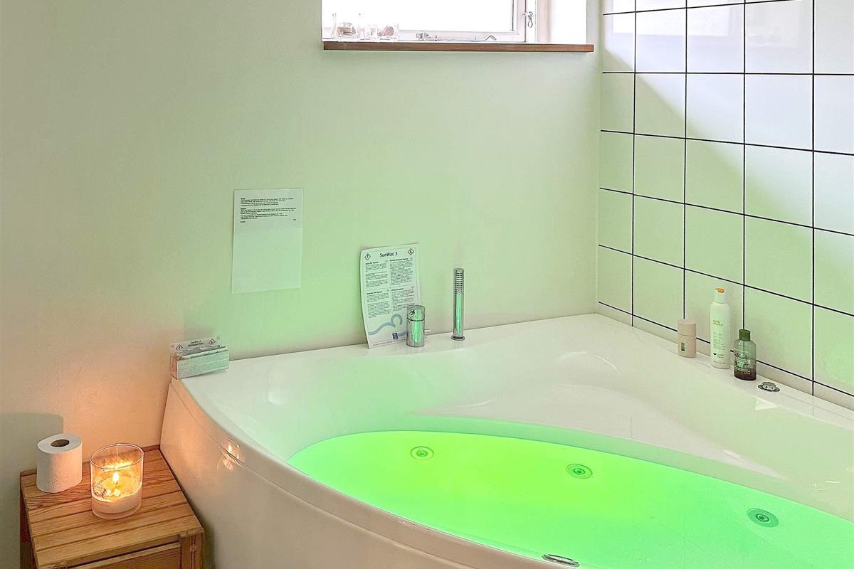 Das modern eingerichtete Haus hat u.a. eine Treppe hinauf zu einem Schlafzimmer, mit Zugang weiter zu einer großen, sonnigen Dachterrasse. Im Erdgeschoss gibt es eine Eingangsdiele und eine Küche mit Essbereich sowie ein Wohnzimmer und einem großen Fernseher. An der Vorderseite des Hauses befindet sich ein geräumiges Bad/WC mit Eck-Whirlpool. Ein Schlafzimmer mit Doppelbett. Die 3. Person schläft auf der Couch im Wohnzimmer.