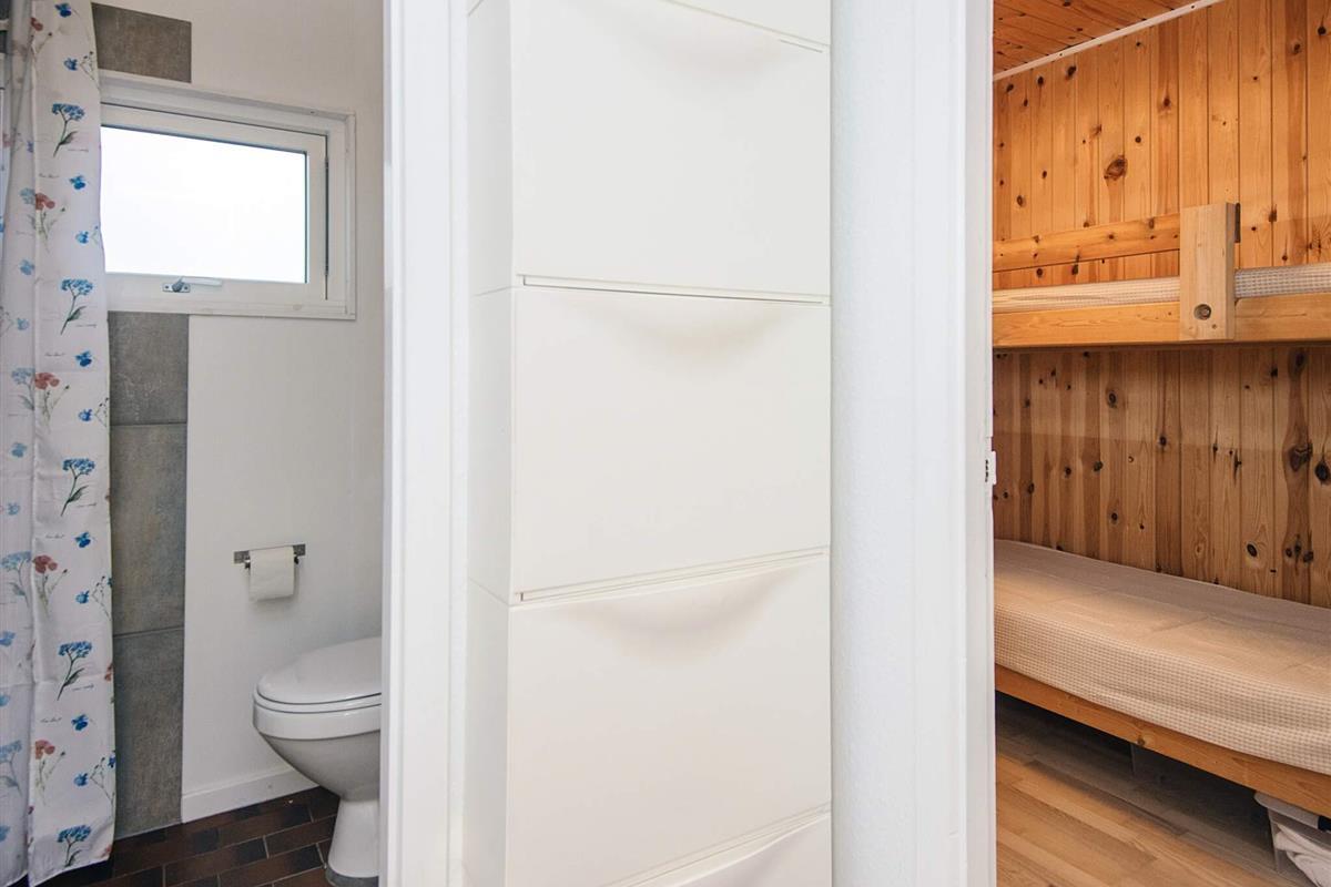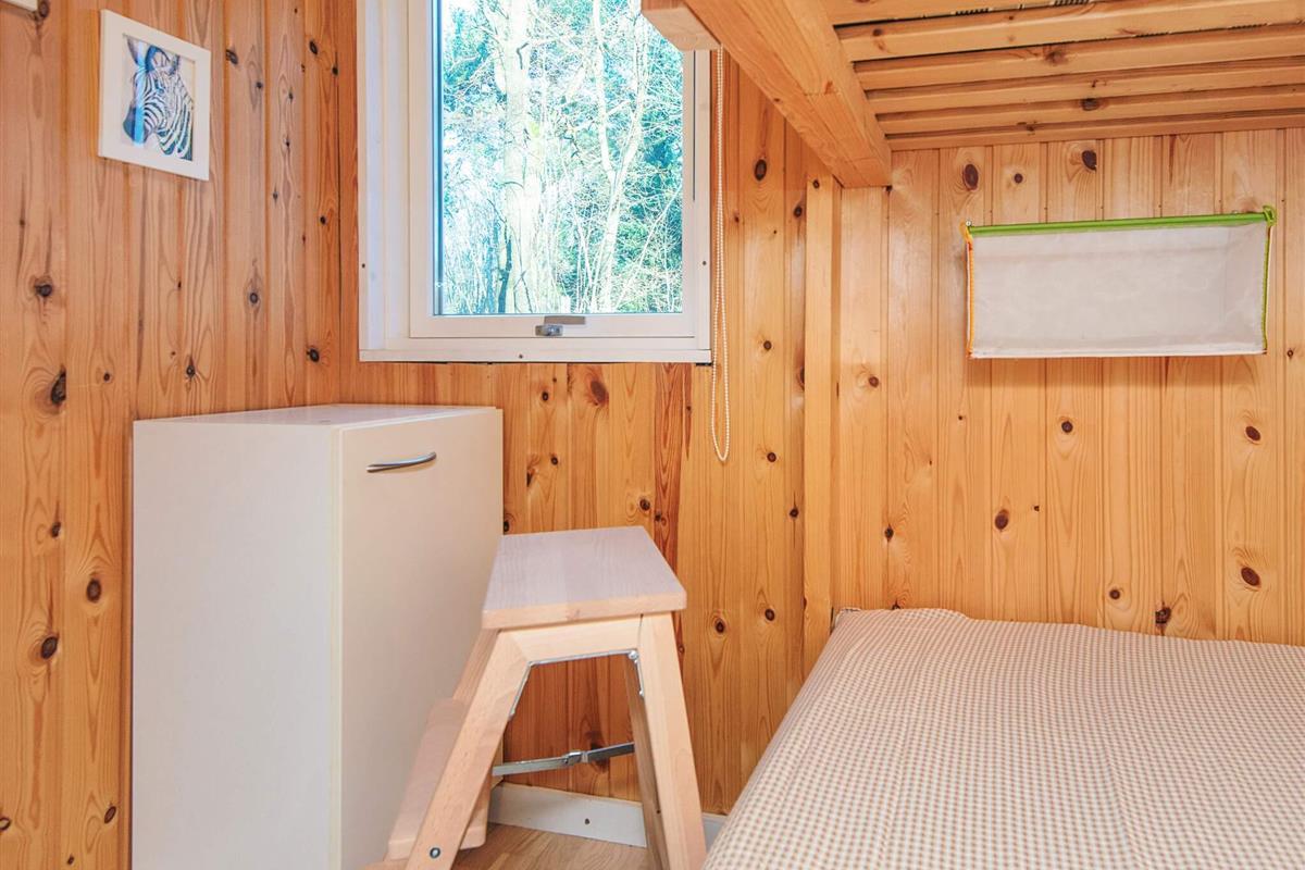 Das Innere des Hauses ist schlicht und minimalistisch eingerichtet. Es verfügt über einen Raum mit einem Etagenbett und einem Schlafsofa, das in ein Doppelbett umgewandelt werden kann, sodass es für ein Paar, eine kleine Familie oder enge Freunde geeignet ist. Das Fehlen eines Fernsehers betont die persönliche Interaktion und Gemütlichkeit und ermutigt die Gäste, Zeit miteinander zu verbringen, sich zu unterhalten oder ruhige Momente mit einem Buch zu genießen. Die Innenausstattung unterstreicht die Offenheit und Helligkeit und lässt die natürliche Umgebung draußen den Ton im Innenraum bestimmen.