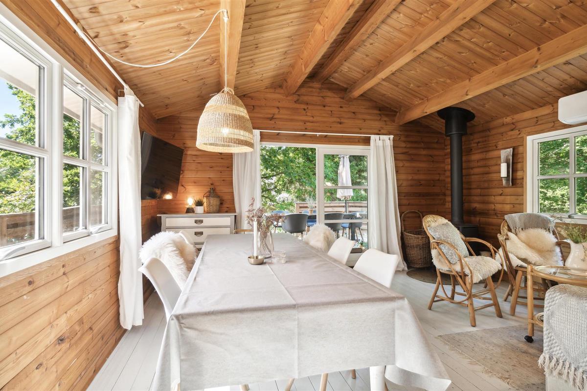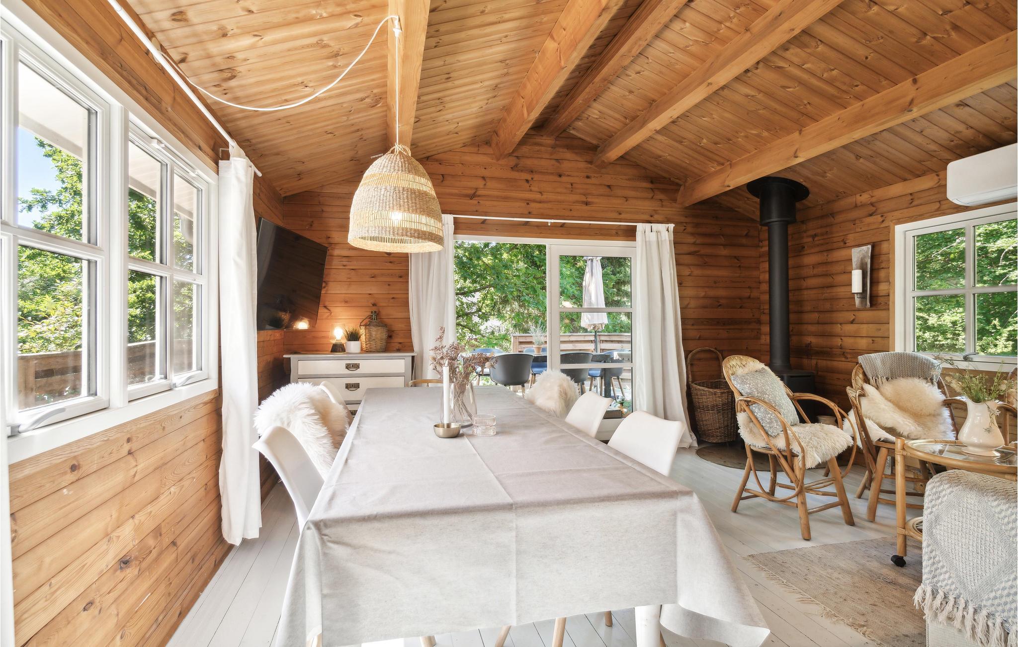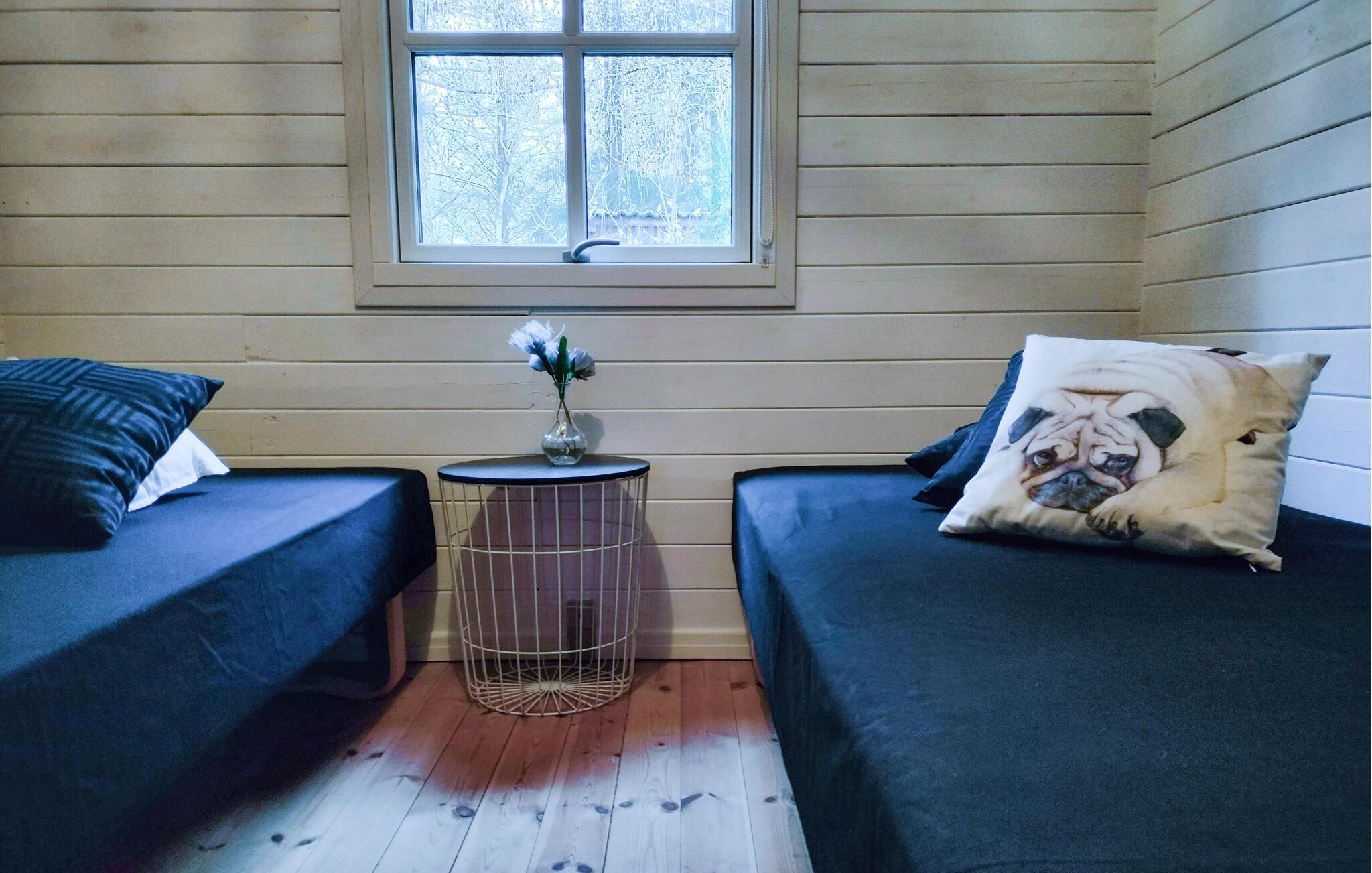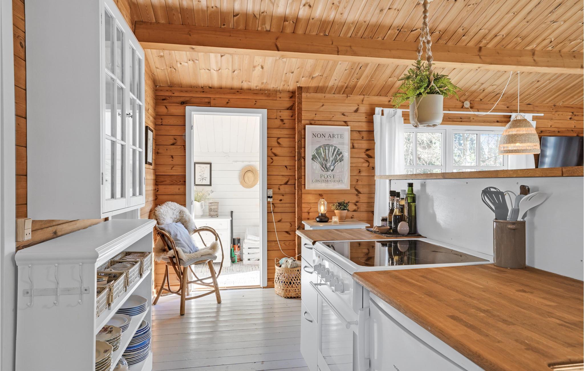 Dit uitnodigende houten vakantiehuis biedt u een rustige buitenruimte met een open terras om te zonnebaden, een Fins houten bad om te ontspannen en een grote tuin waar uw kinderen en viervoeters kunnen rondrennen. Een grote tuin waar uw kinderen en viervoeters kunnen spelen.