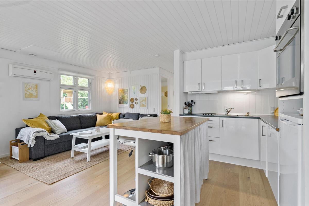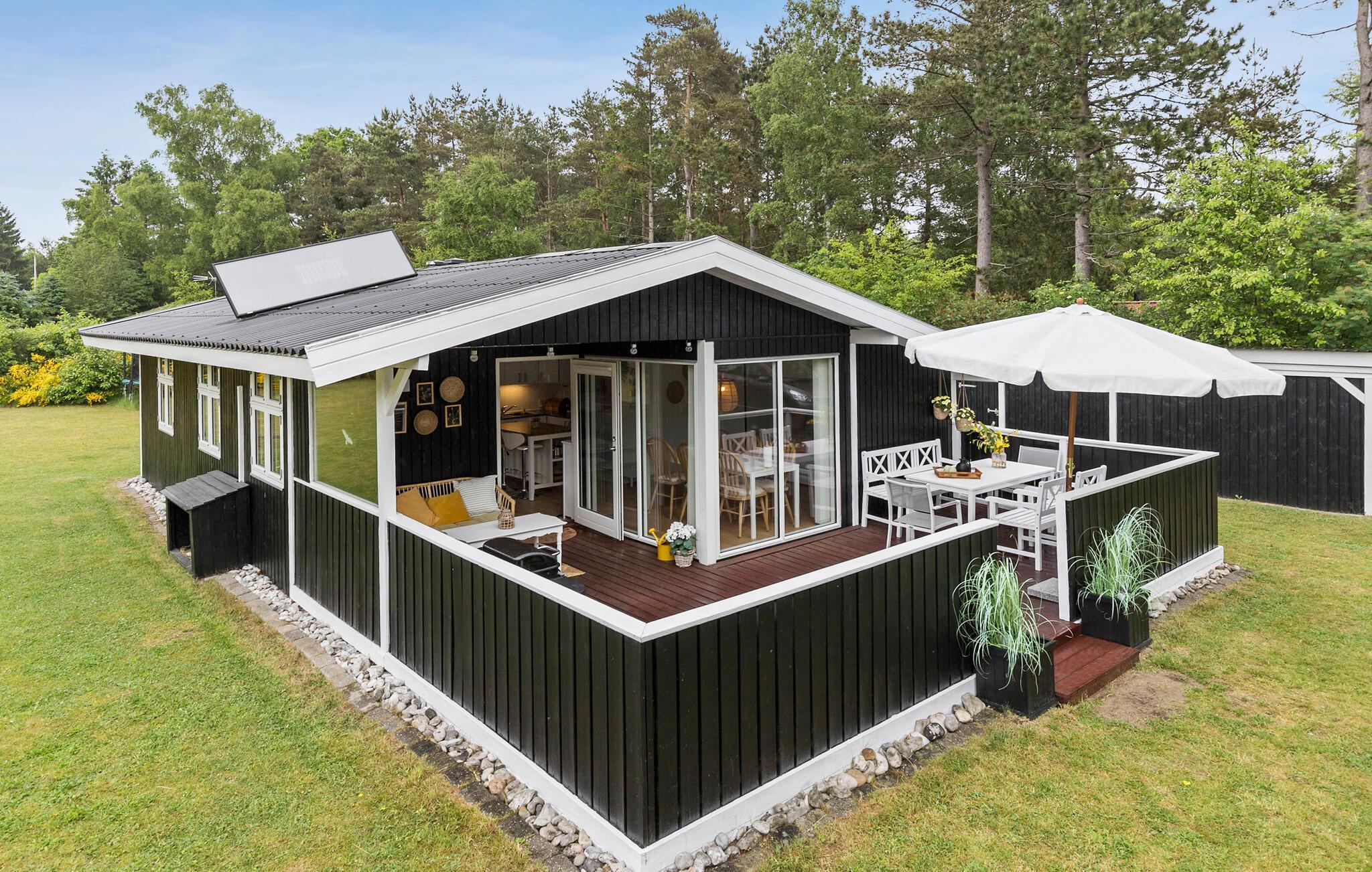 Charmant vakantiehuis nabij Ebeltoft met tuin, trampoline en gezellige open keuken voor een ontspannen familievakantie.