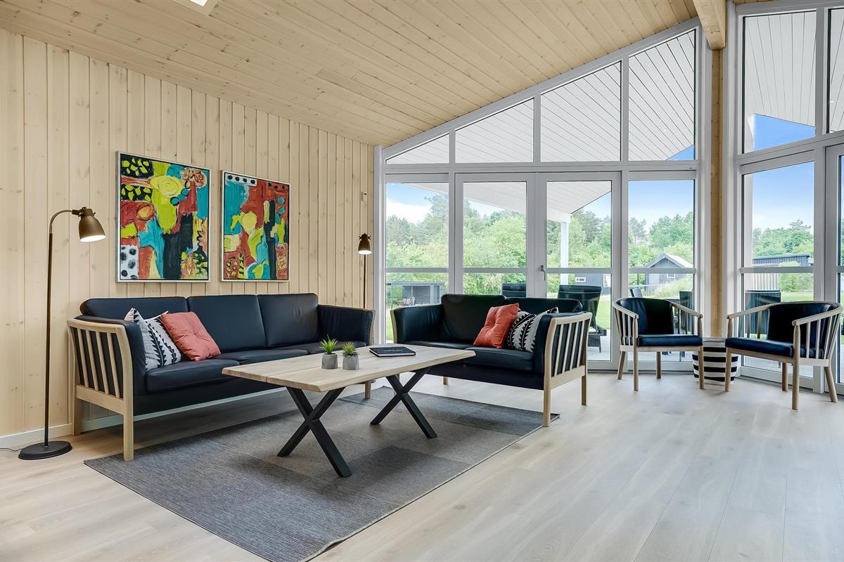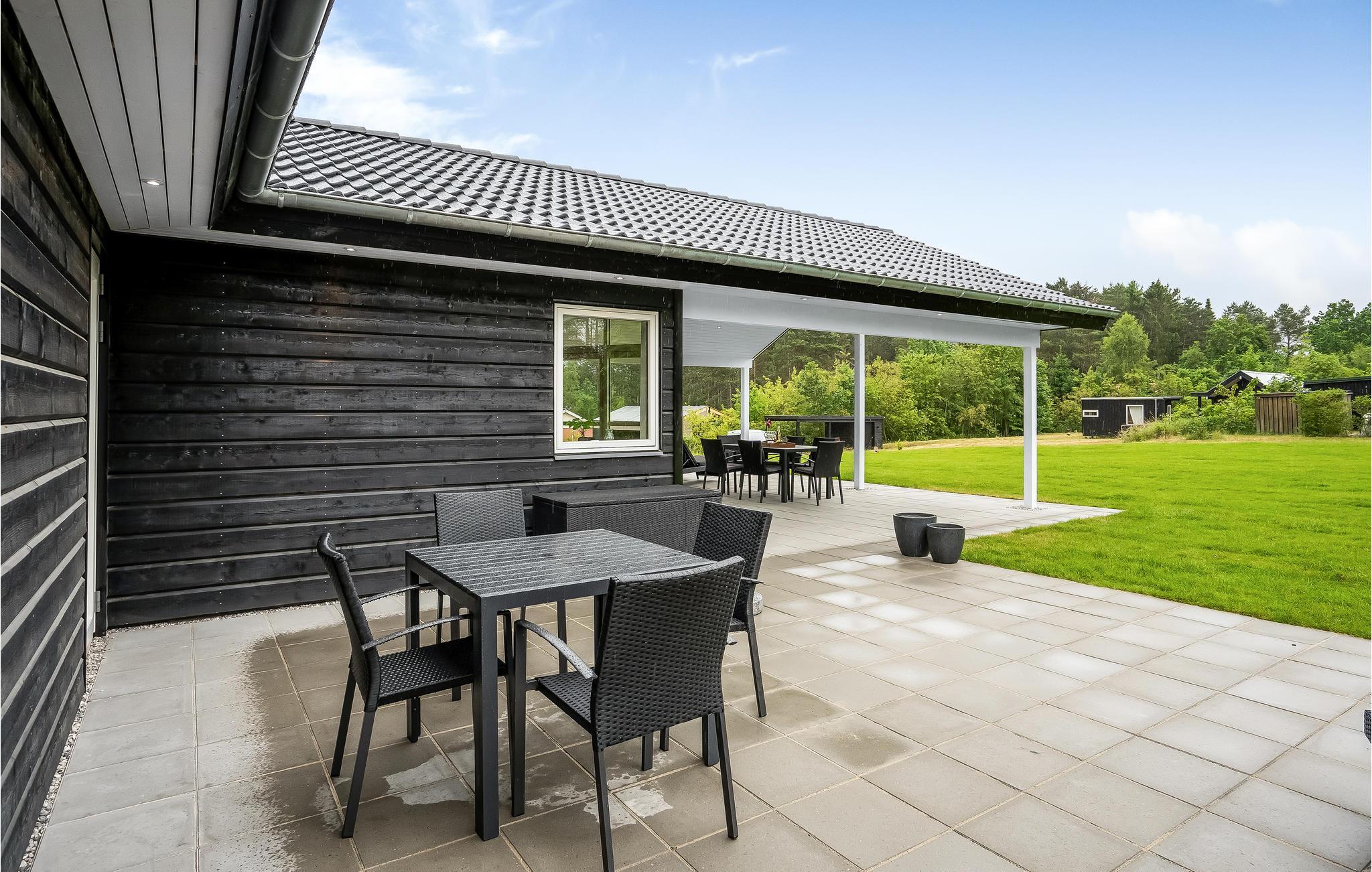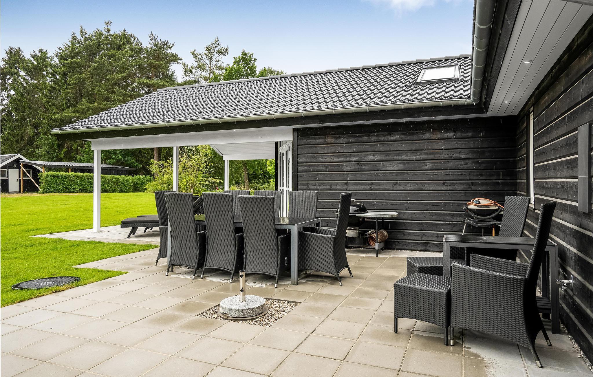 Ruim en modern vakantiehuis in Fuglslev met sauna, activiteitenruimte en groot terras, ideaal voor ontspanning en plezier.