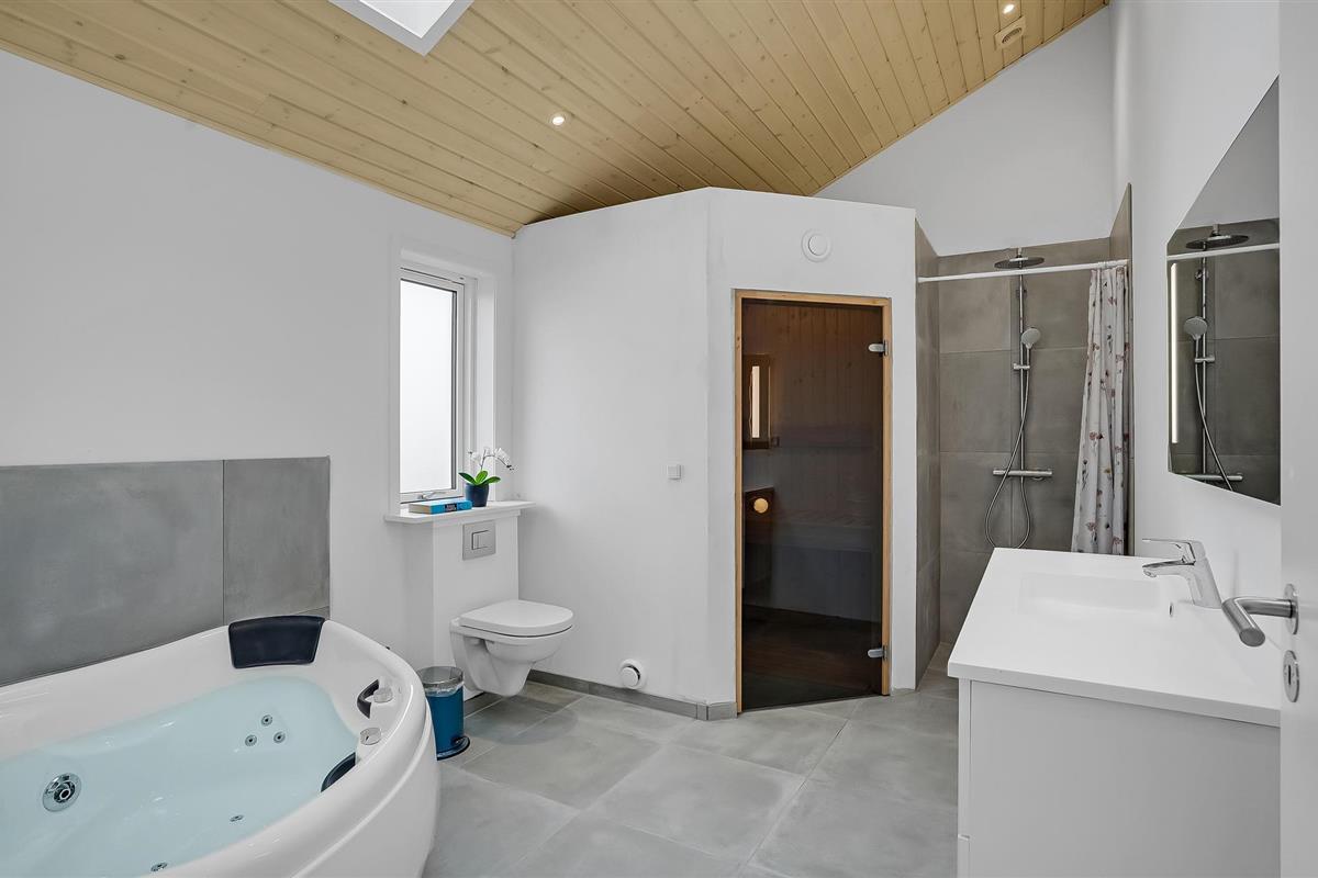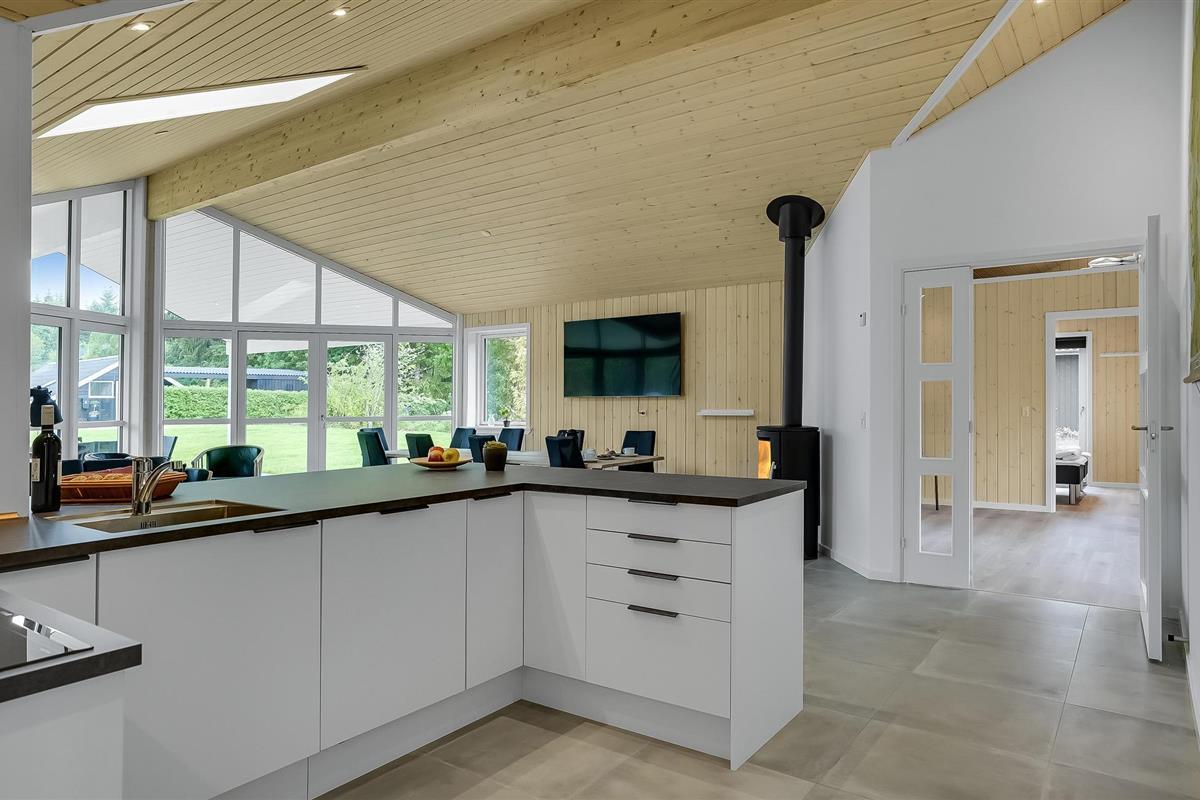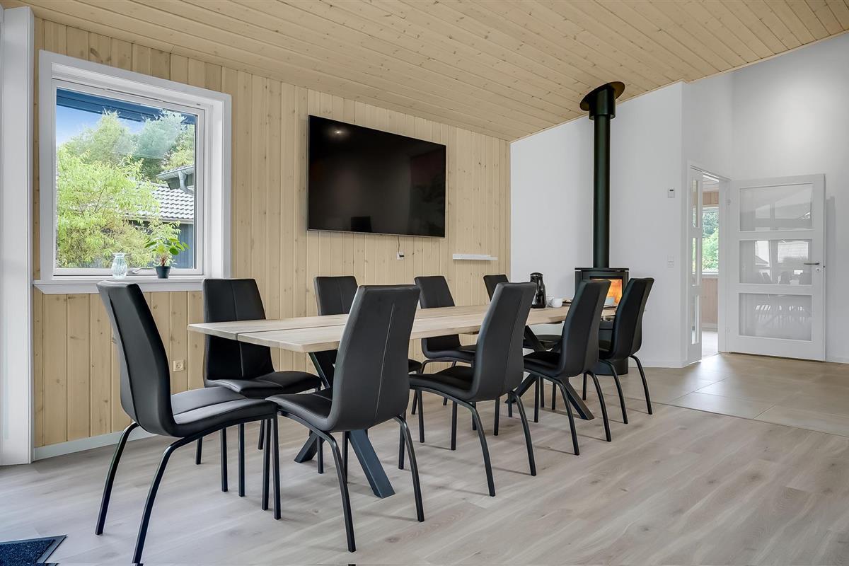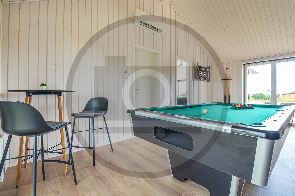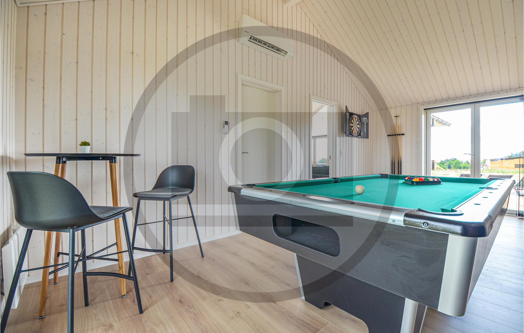 Dit moderne en ruime vakantiehuis verwelkomt zijn gasten in Fuglslev. Tot 10 personen kunnen het zich comfortabel maken in het huis met 4 slaapkamers en 2 badkamers. 2 slaapplaatsen bevinden zich op de slaapzolder onder het plafond. Naast een sauna waar u kunt ontspannen, biedt het huis ook een activiteitenruimte met tafeltennis en biljart.