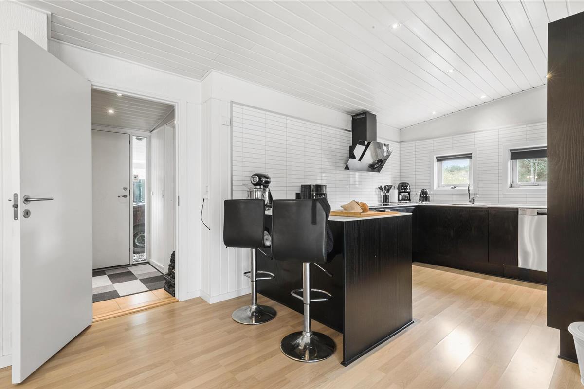 Dompel jezelf onder in de hygge en stijlvolle sfeer van je vakantiehuis, dat zowel ontspanning als mogelijkheden voor spannende uitstapjes belooft. Binnen vind je een gezellige sfeer met zachte tinten en lichtgekleurd hout. De open keuken is de perfecte plek om 's ochtends samen te ontbijten en 's avonds samen te koken. Geniet van je eerste kopje koffie van de dag aan het aanrecht en ontspan daarna in de gezellige zithoek. Breng hier rustige uren door met een goed boek of een spannende film. De knisperende houtkachel zorgt voor warmte en een gezellige sfeer op kille dagen.