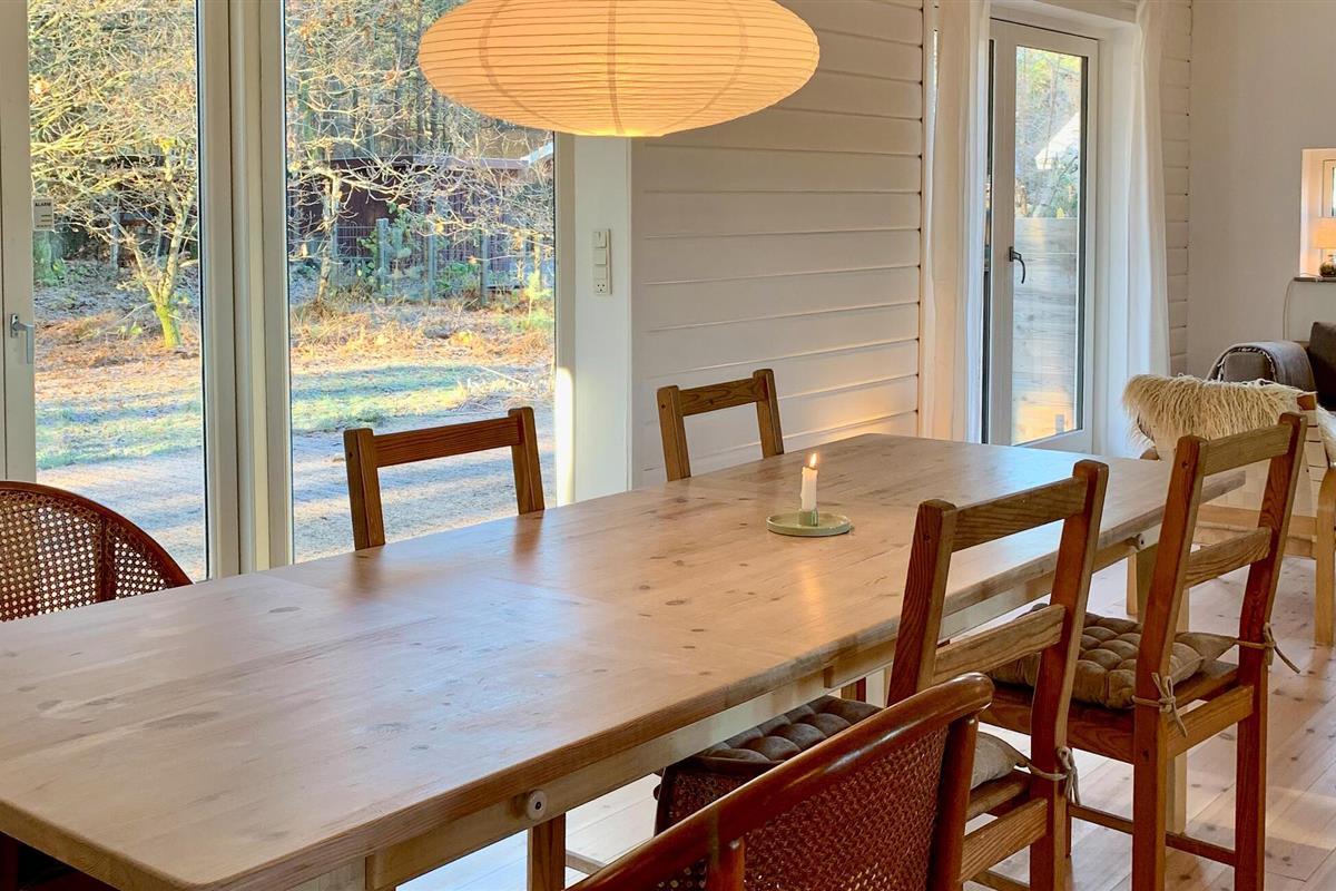 Verheug je op een ontspannen vakantie in dit charmante houten huis, dat je verwelkomt met zijn warme sfeer en idyllische locatie. In het kleine dorpje Fuglslev breng je je vakantie door in een vredige omgeving, omgeven door bossen en weiden. Stap binnen en geniet van de gezellige sfeer met lichtgekleurde houten muren en brede vensterpuien. Maak het jezelf gemakkelijk op de bank in de woonkamer en voel de warmte van de knisperende open haard. De open keuken is modern uitgerust en heeft alles wat je nodig hebt om samen maaltijden te bereiden. De grote eettafel met uitzicht op de tuin is een heerlijke plek om samen te zitten, spelletjes te spelen of de dag te plannen.
