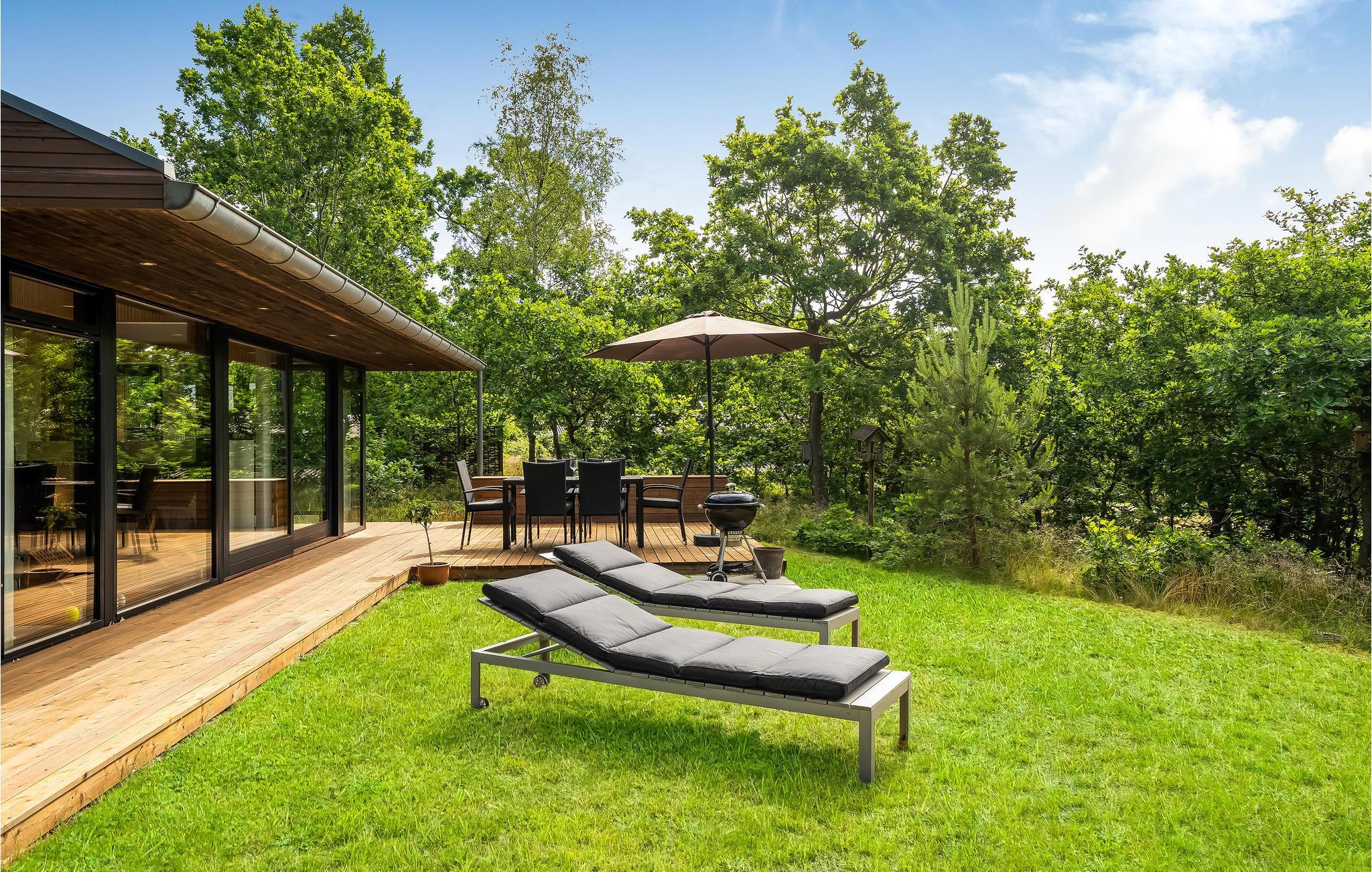Modern vakantiehuis in Fuglslev met eigen terras en energiezuinige voorzieningen, vlakbij Ebeltoft en strand.