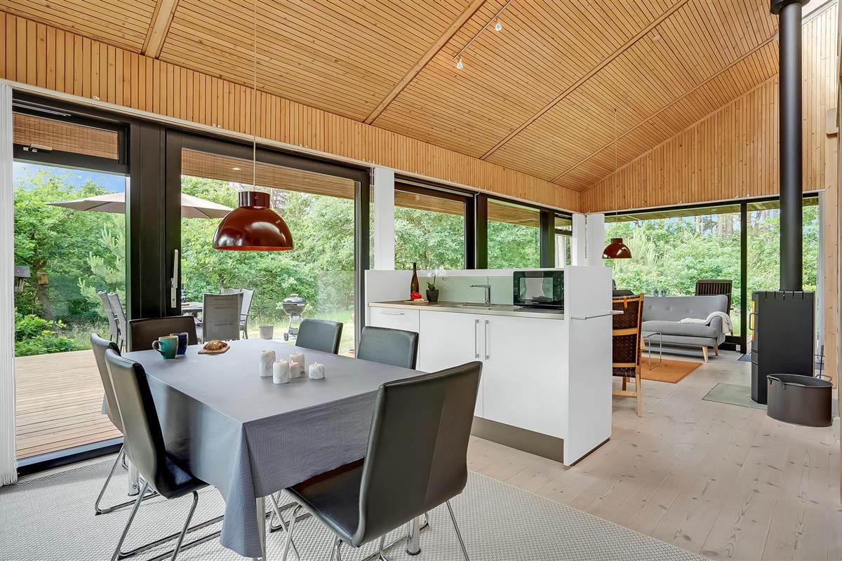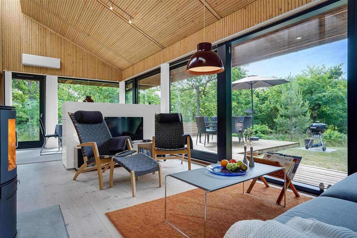 Modern vakantiehuis met interessante architectuur in het gebied Fuglslev, een vakantie- en natuurgebied dat rust biedt en dankzij de centrale ligging uitstapjes naar alle bezienswaardigheden in de omgeving mogelijk maakt. Het huis is mooi en modern ingericht en heeft een goede keuken en badkamer. Breng een heerlijke tijd buiten door op de mooie terrassen. Natuurlijk perceel met gazon en bomen en veel ruimte. Ca. 10 minuten rijden van Ebeltoft en het strand.