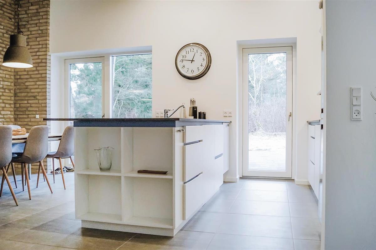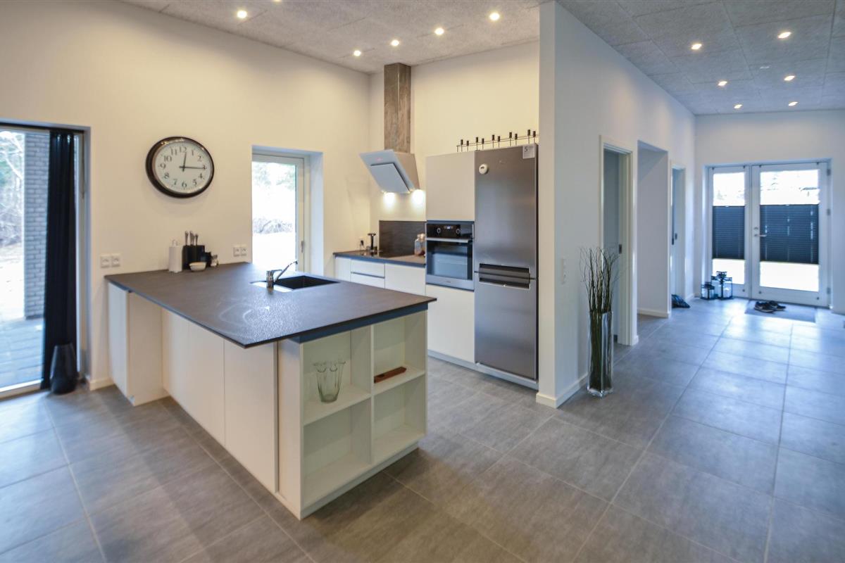 Ruim en stijlvol vakantiehuis in Ebeltoft, omgeven door natuur met luxe voorzieningen en speelplezier voor jong en oud.