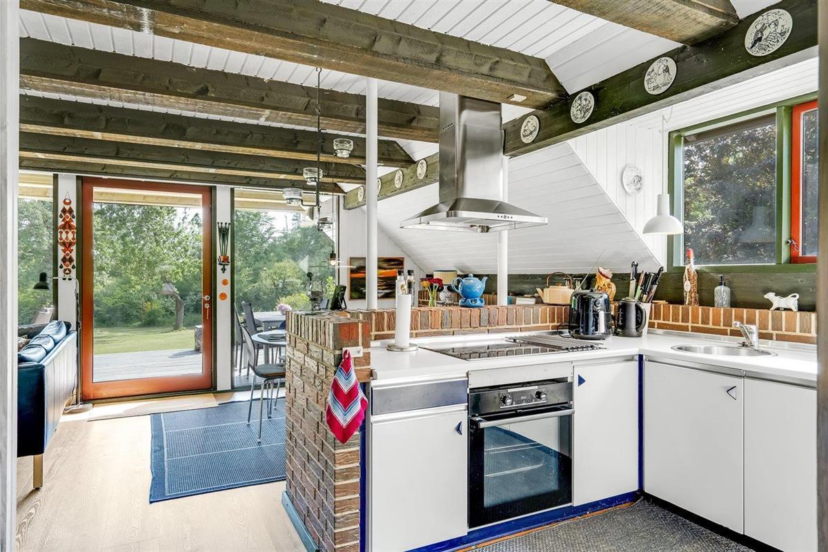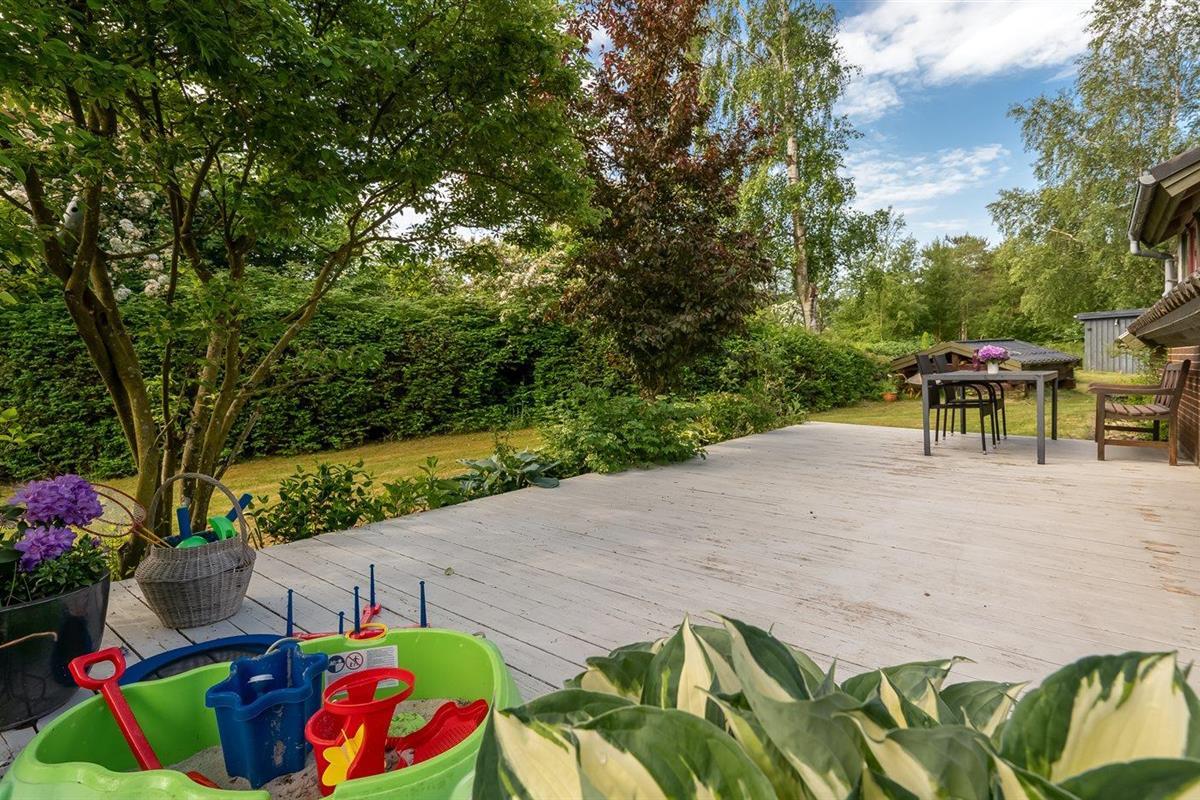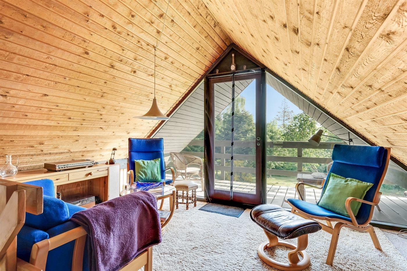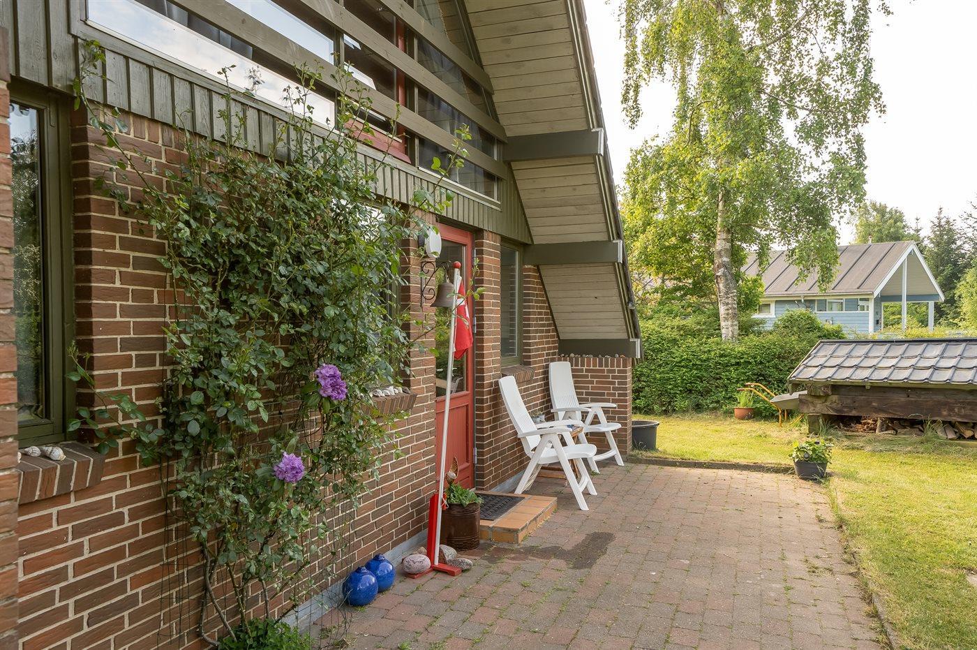 De vakantiewoning is gelegen op een 3000 m² groot aangelegde tuin. Afstand tot de fjord 200 m. Dichtstbijzijnde winkel 3000 m. Bij de vakantiewoning hoort 70 m² terras. Daarnaast is er een 12 m² groot overdekt terras. Gereedschapsruimte. Schommel. Zandbak. Parkeerplaats bij het huis.