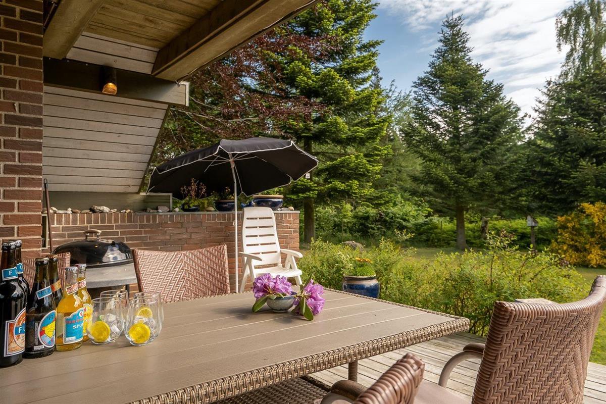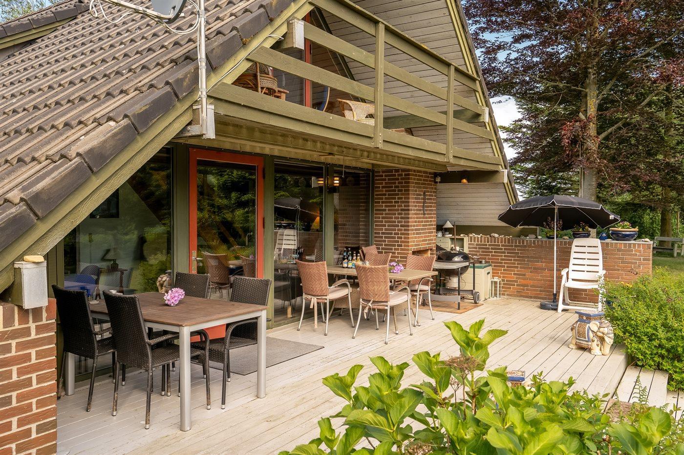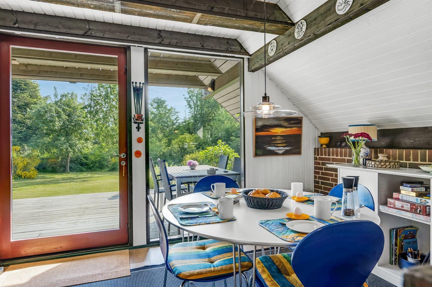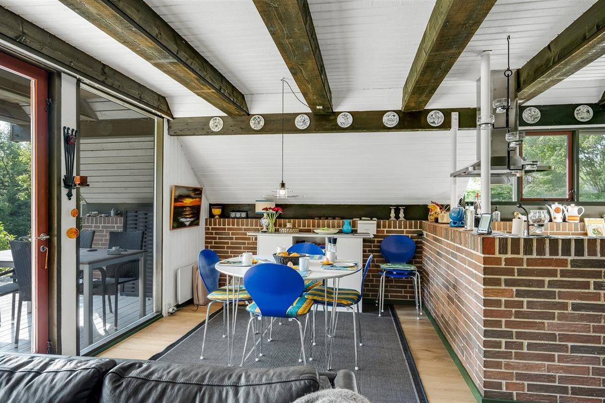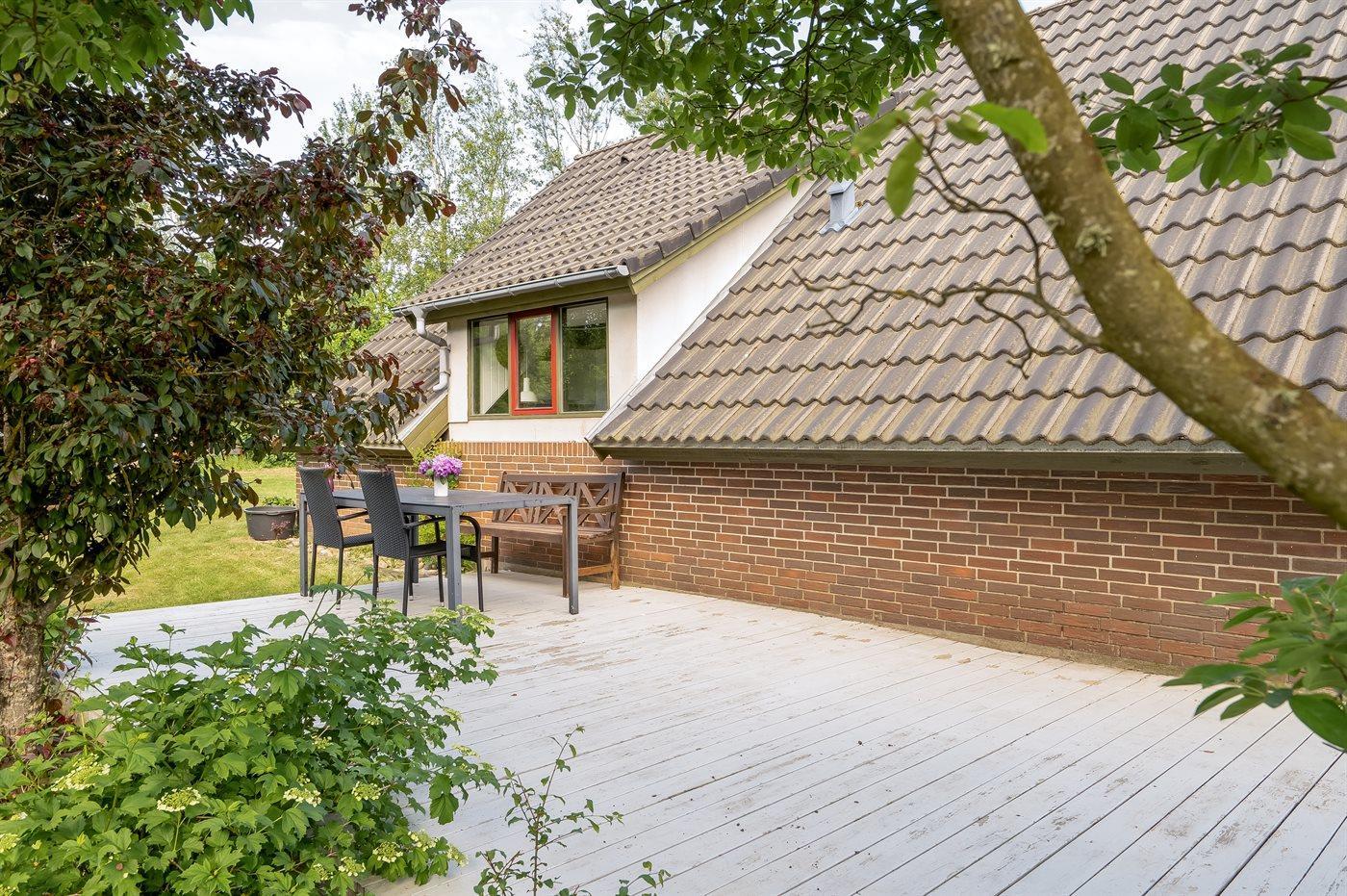 De vakantiewoning is gelegen op een 3000 m² groot aangelegde tuin. Afstand tot de fjord 200 m. Dichtstbijzijnde winkel 3000 m. Bij de vakantiewoning hoort 70 m² terras. Daarnaast is er een 12 m² groot overdekt terras. Gereedschapsruimte. Schommel. Zandbak. Parkeerplaats bij het huis.