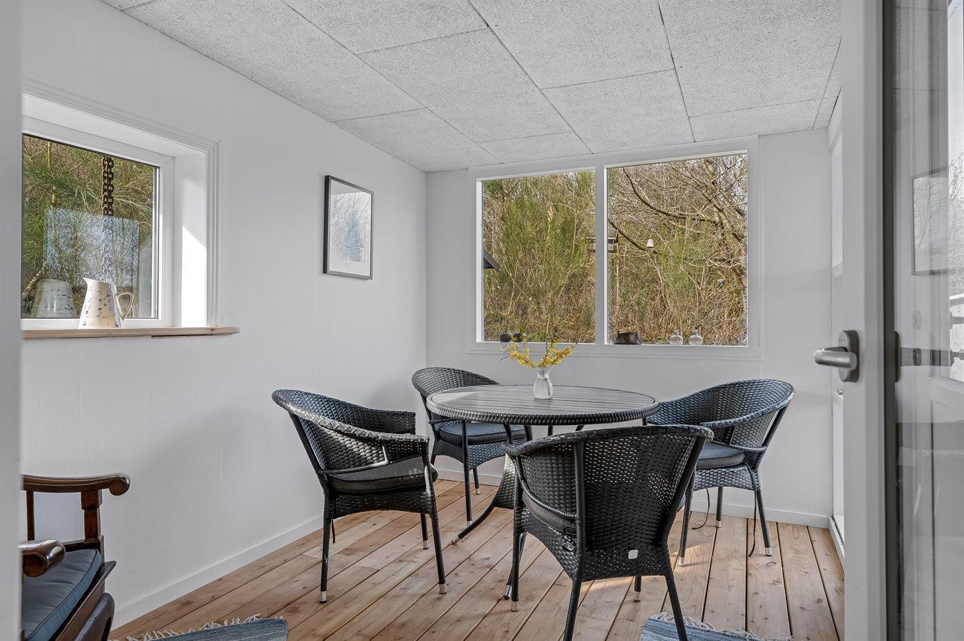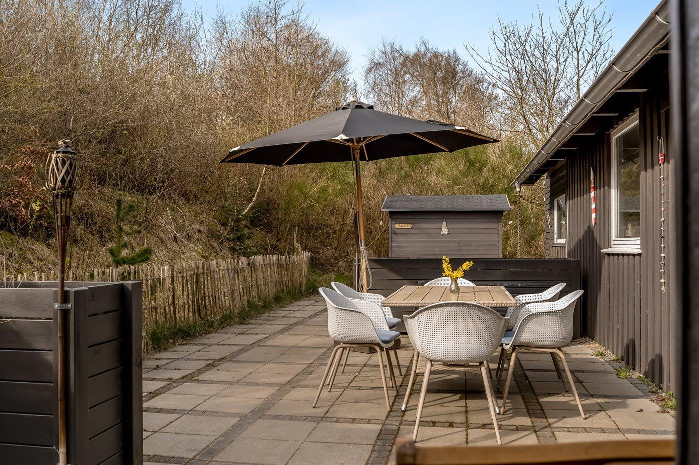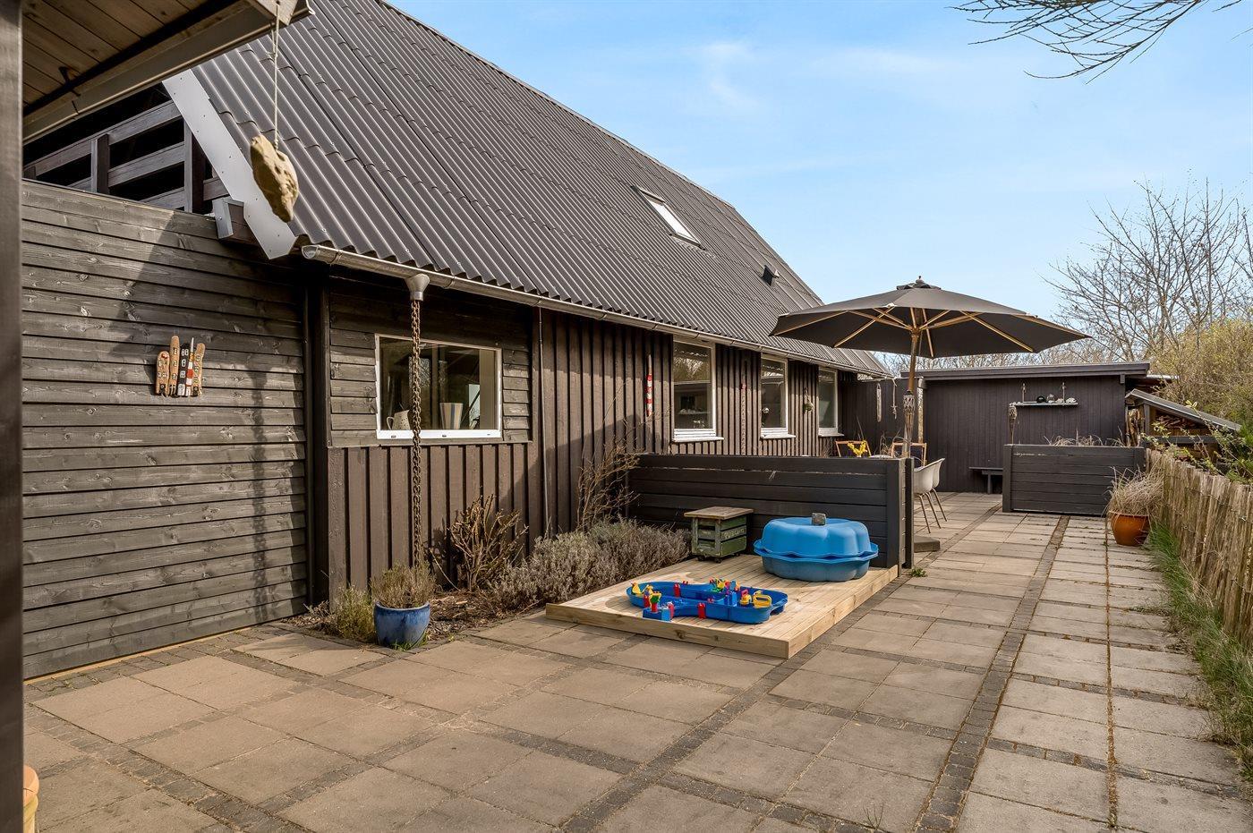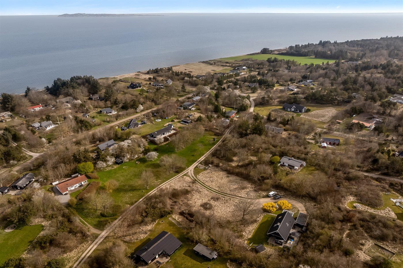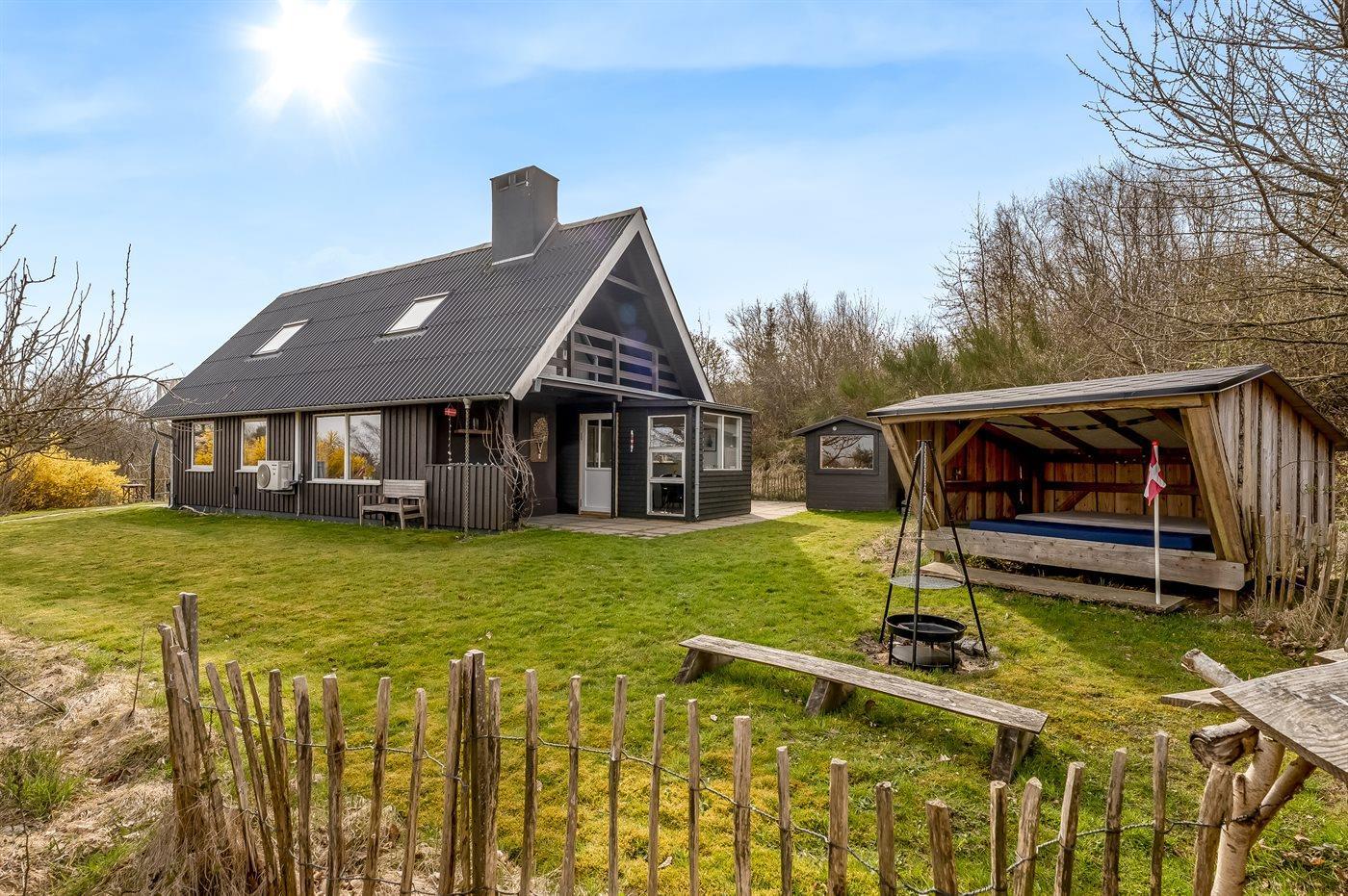 De vakantiewoning is gelegen op een 3350 m² groot natuural grond. Afstand tot de fjord 500 m. Dichtstbijzijnde winkel 5000 m. Er is een golfbaan op een afstand van 20000 m. Bij de vakantiewoning hoort 80 m² terras. Daarnaast is er een 20 m² groot overdekt terras. Balkon. Schommel. Zandbak.Vuurplaats. Shelter. Buitensauna. Barbecue. Parkeerplaats bij het huis.