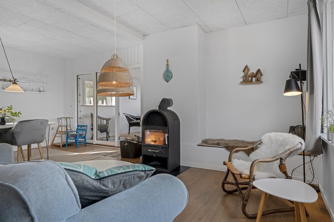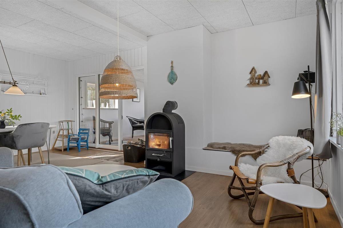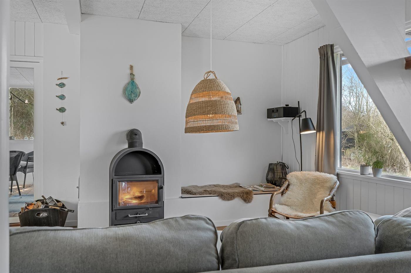 Ruim vakantiehuis op Fur met sauna, houtkachel en uitzicht op de fjord, ideaal voor een ontspannen verblijf.