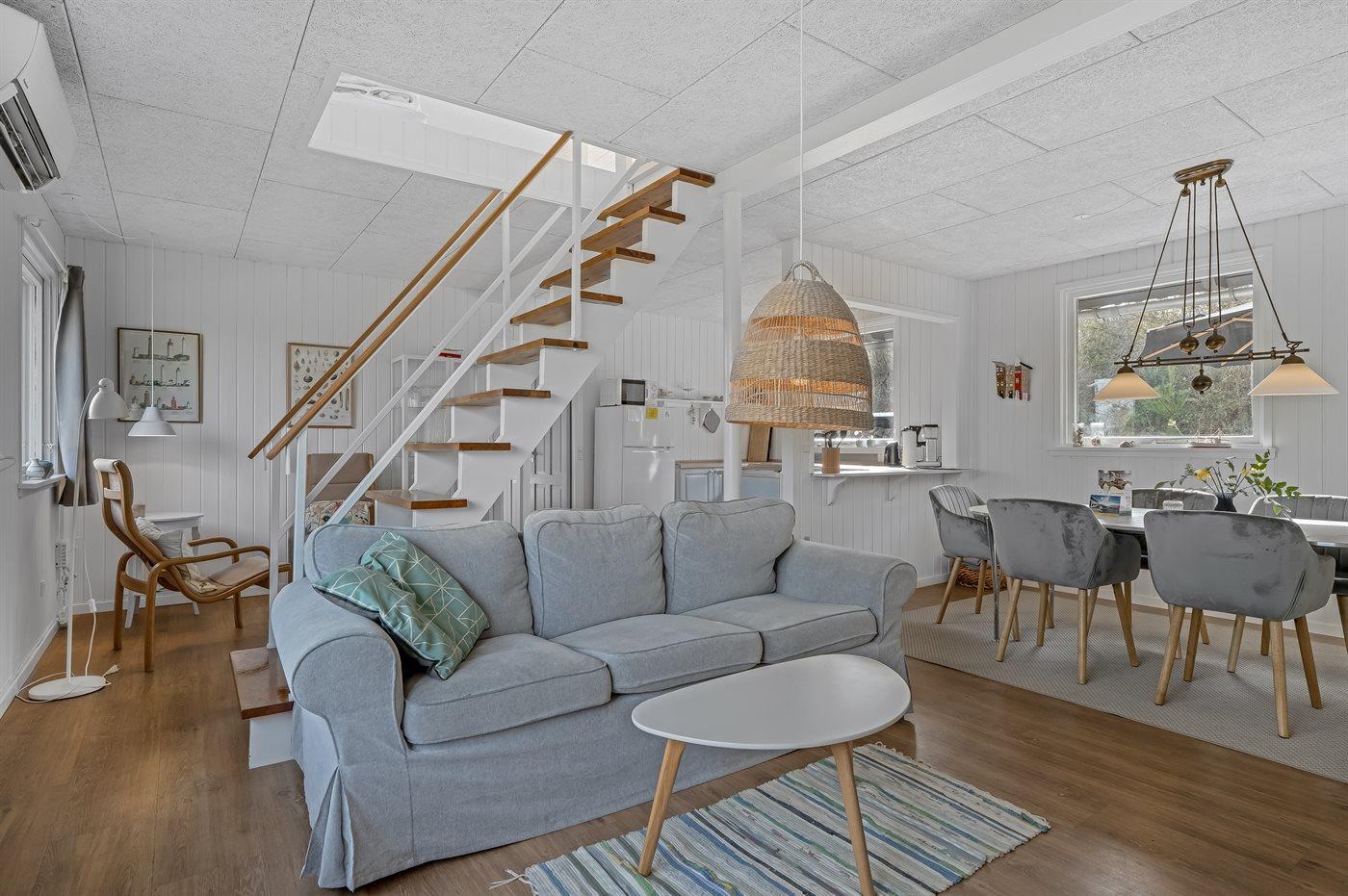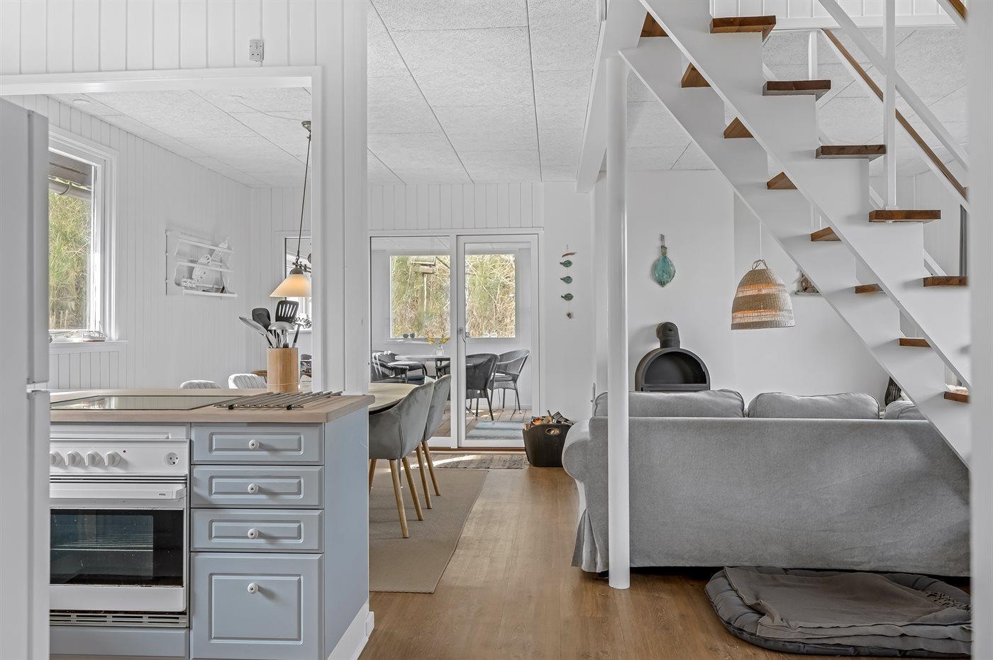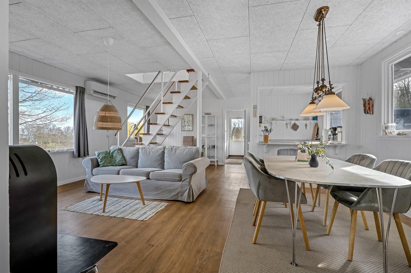 Ruim vakantiehuis op Fur met sauna, houtkachel en uitzicht op de fjord, ideaal voor een ontspannen verblijf.