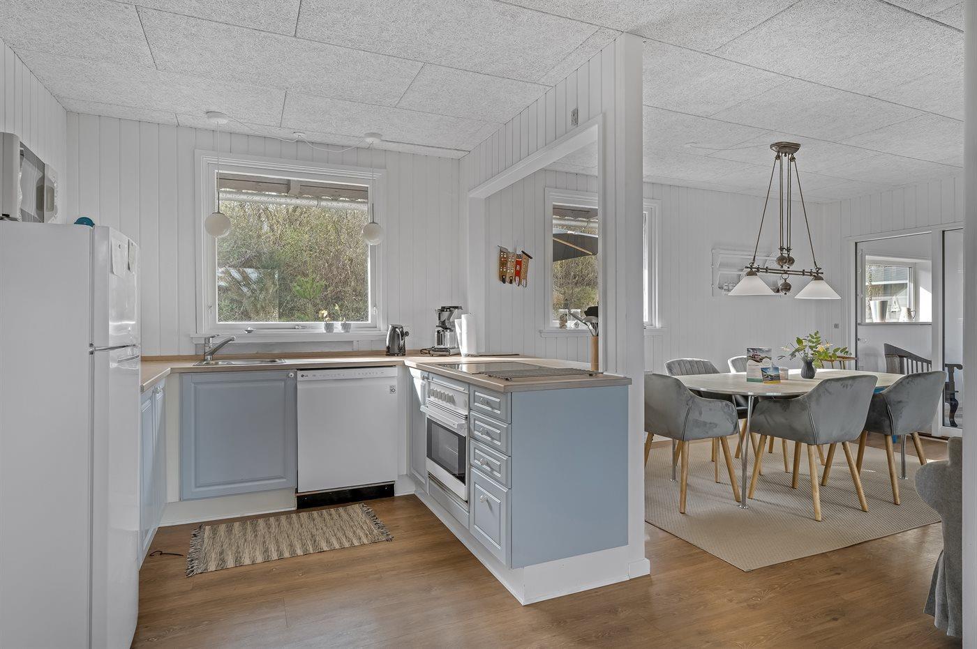 De keuken is uitgerust met koelkast Er zijn 4 keramische kookplaten, heteluchtoven, magnetron en vaatwasser.
