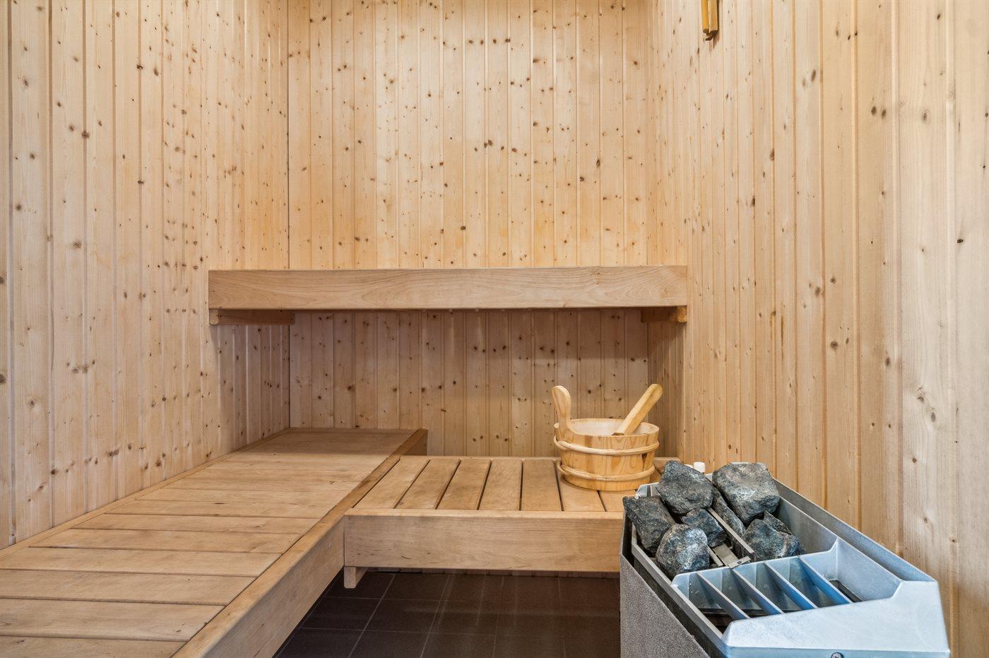 Er is 1 badkamer met douchehok en 1 toilet. De sauna biedt de gelegenheid tot ontspanning.