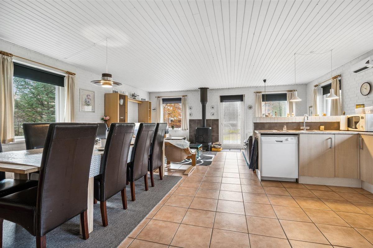 De vakantiewoning is gelegen op een 3000 m² groot natuural grond. Afstand tot de fjord 200 m. Dichtstbijzijnde winkel 3000 m. Er is een golfbaan op een afstand van 20000 m. Bij de vakantiewoning hoort 50 m² terras. Barbecue. Carport ter beschikking. Parkeerplaats bij het huis.