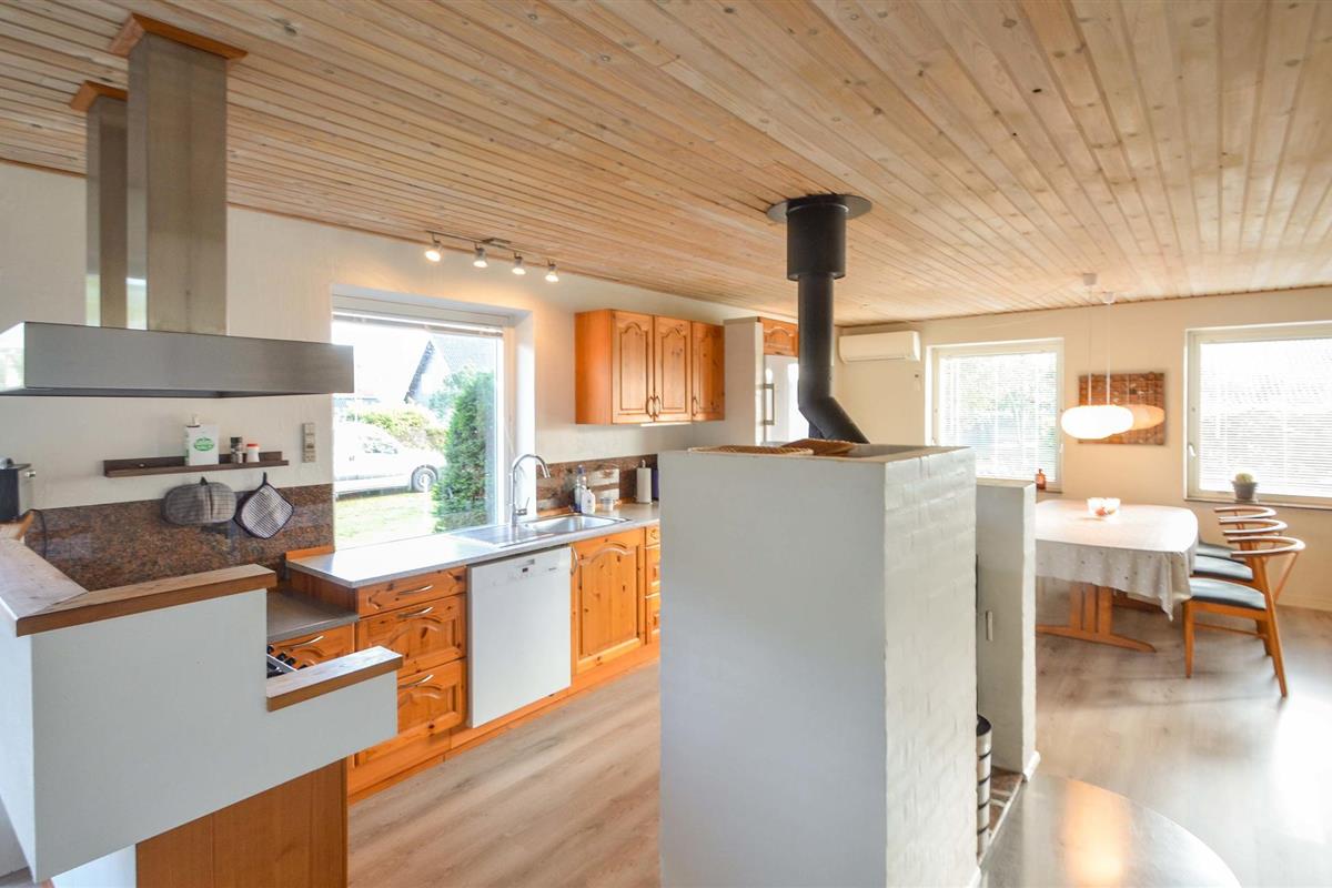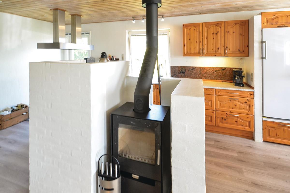 Hier kan het hele gezin van elkaars gezelschap genieten in de grote, open keuken, die een verlengstuk is van de woon- en eetkamer. De keuken is goed uitgerust met onder andere een vaatwasser, koffiezetapparaat en magnetron. De badkamer heeft vloerverwarming en een wasmachine. Op warme zomeravonden kunt u ontspannen op het mooie houten terras, waar u ook 's ochtends en 's avonds kunt genieten van uw maaltijden. In de tuin kunnen de jongste gezinsleden actief bezig zijn, er is veel ruimte om te spelen en de schommel in een boom zal zeker een hit zijn.