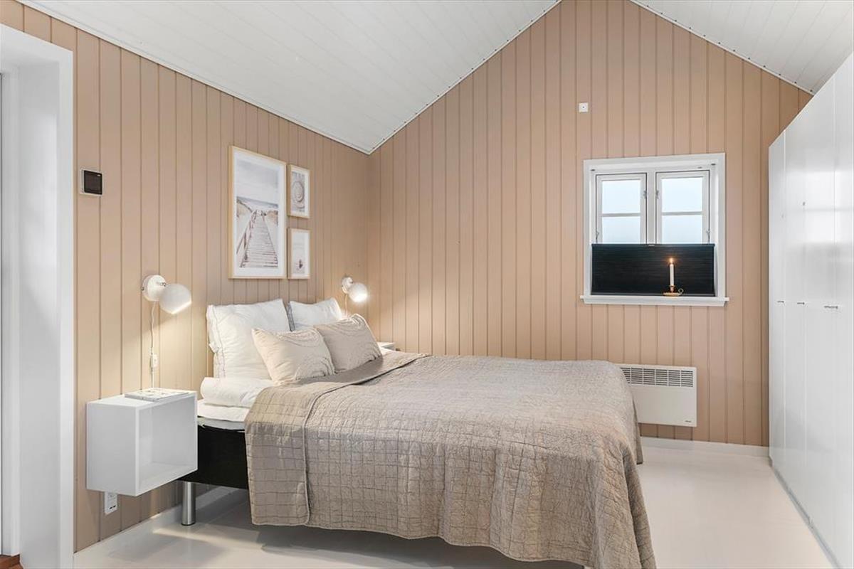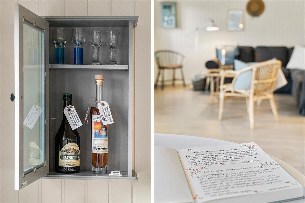 Die Atmosphäre im 89 m² großen Ferienhaus, das 2015 erbaut wurde, ist hell und freundlich. Das stilvolle Mobiliar passt perfekt zu den hellen Holzwänden und der bis unter den Giebel offenen Decke, während der Kaminofen die Gemütlichkeit unterstreicht. Im Wohnzimmer gibt es außerdem einen Flachbildfernseher, und der Raum ist offen mit einer hübschen, gut ausgestatteten Küche verbunden, in der mehrere Personen problemlos gemeinsam kochen können. Zur Raumaufteilung gehören auch ein schönes Duschbad und ein Eingangsbereich mit Waschturm sowie zwei gute Schlafzimmer mit insgesamt Schlafplätzen für vier Erwachsene und zwei Kinder.