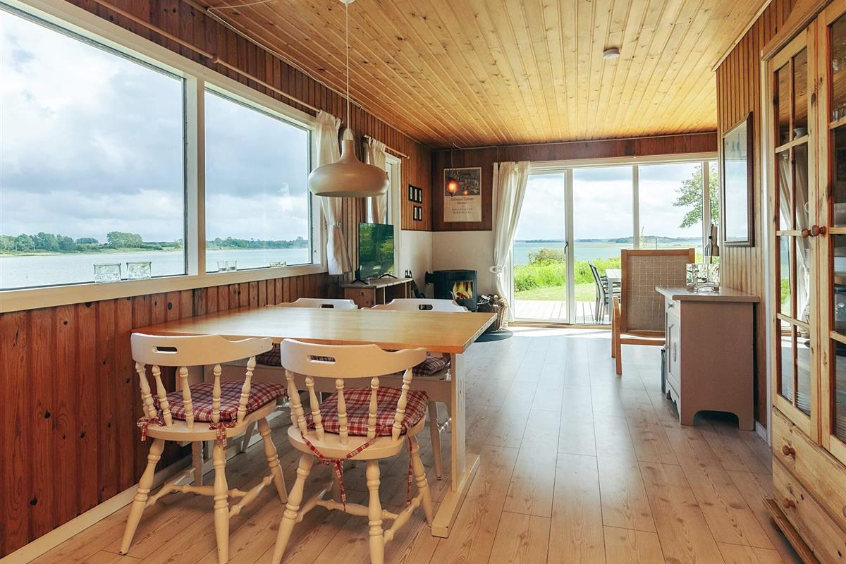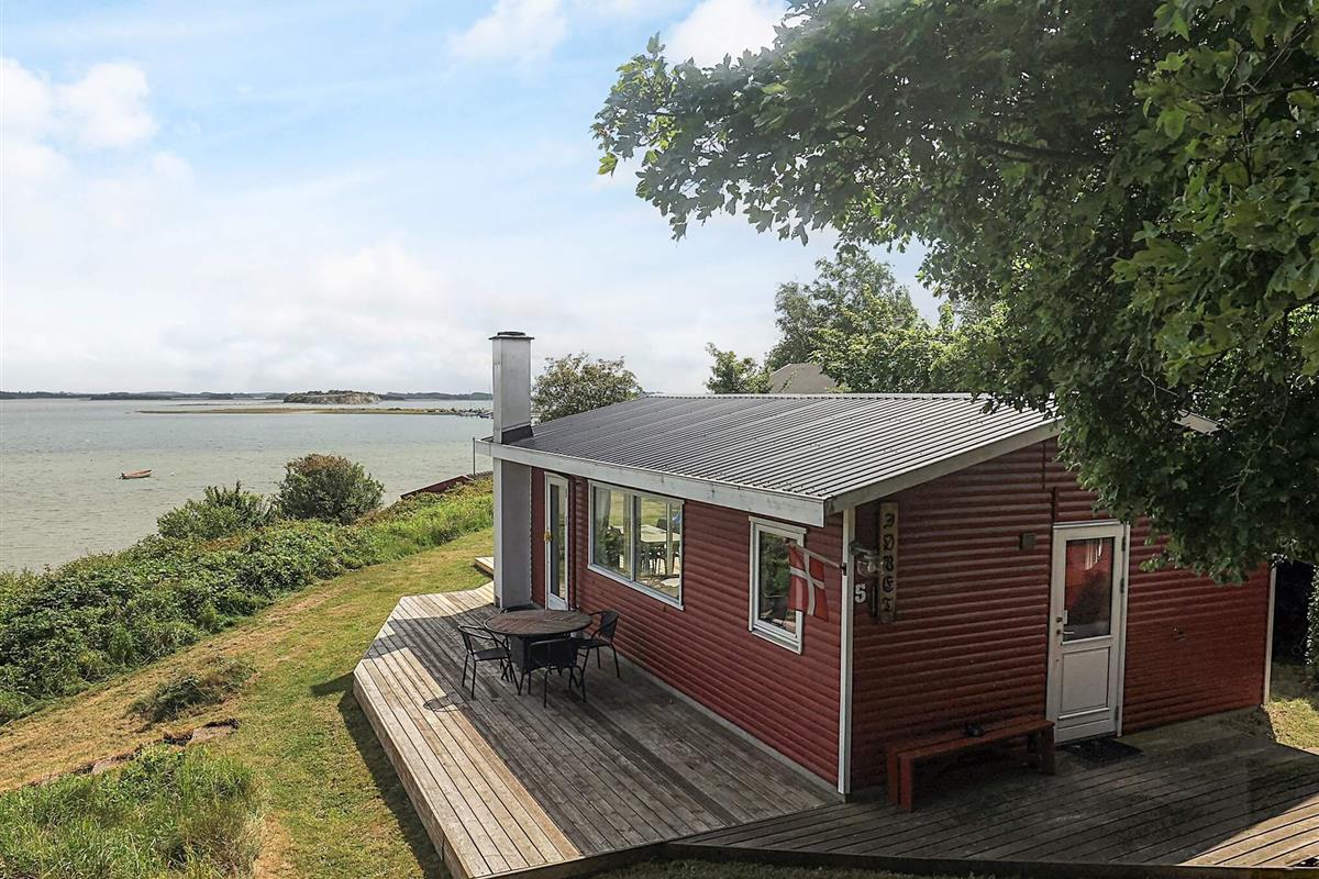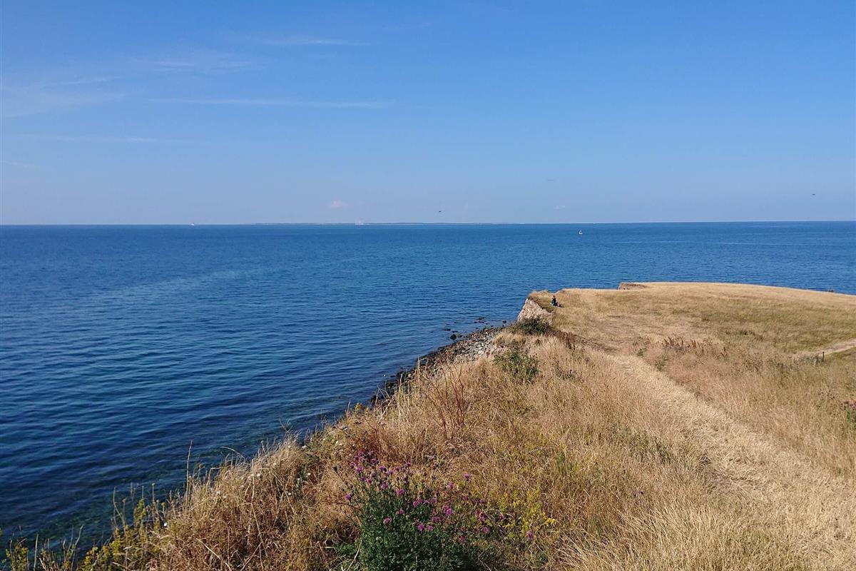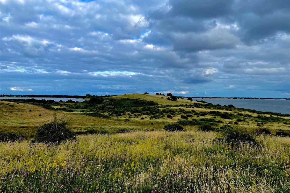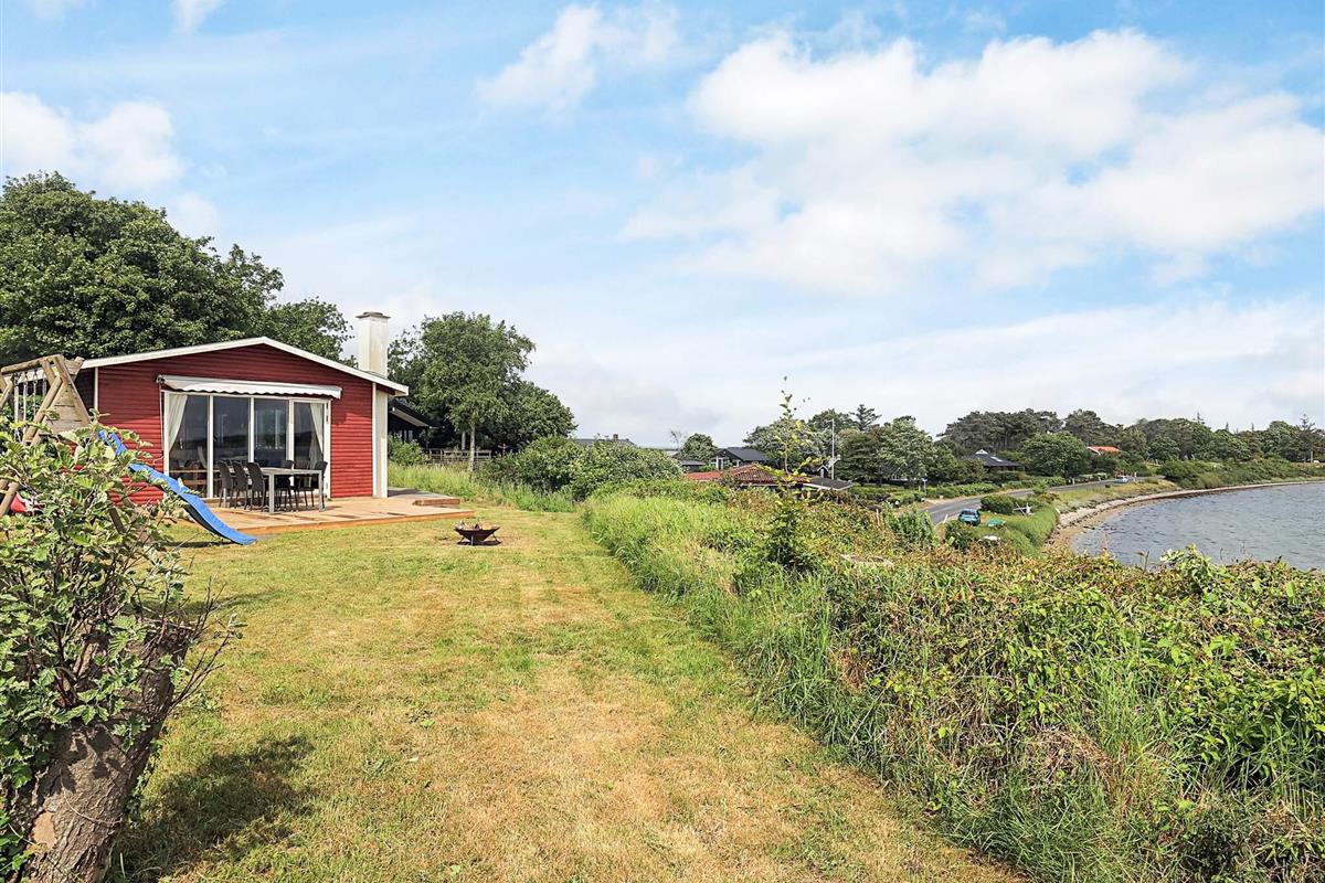 Ganz vorne in der ersten Reihe liegt auf einem etwas erhöhten und leicht abschüssigen Rasengrundstück dieses Ferienhaus mit herrlichem Panoramaausblick zum nahen Meer! Sie wohnen hier bei Fyns Hoved und können die wunderbare Aussicht sowohl vom Haus als auch von der Terrasse aus genießen. Es sind nur ca. 25 m zum Meer!