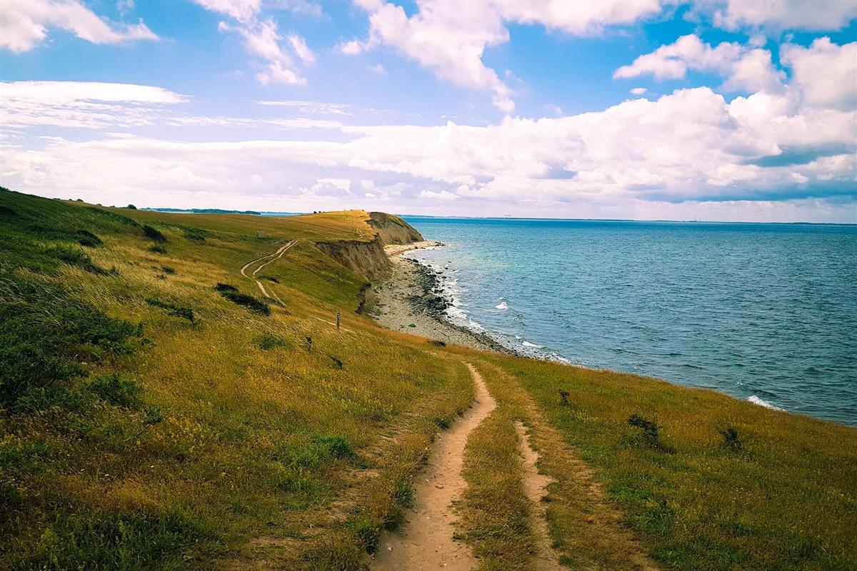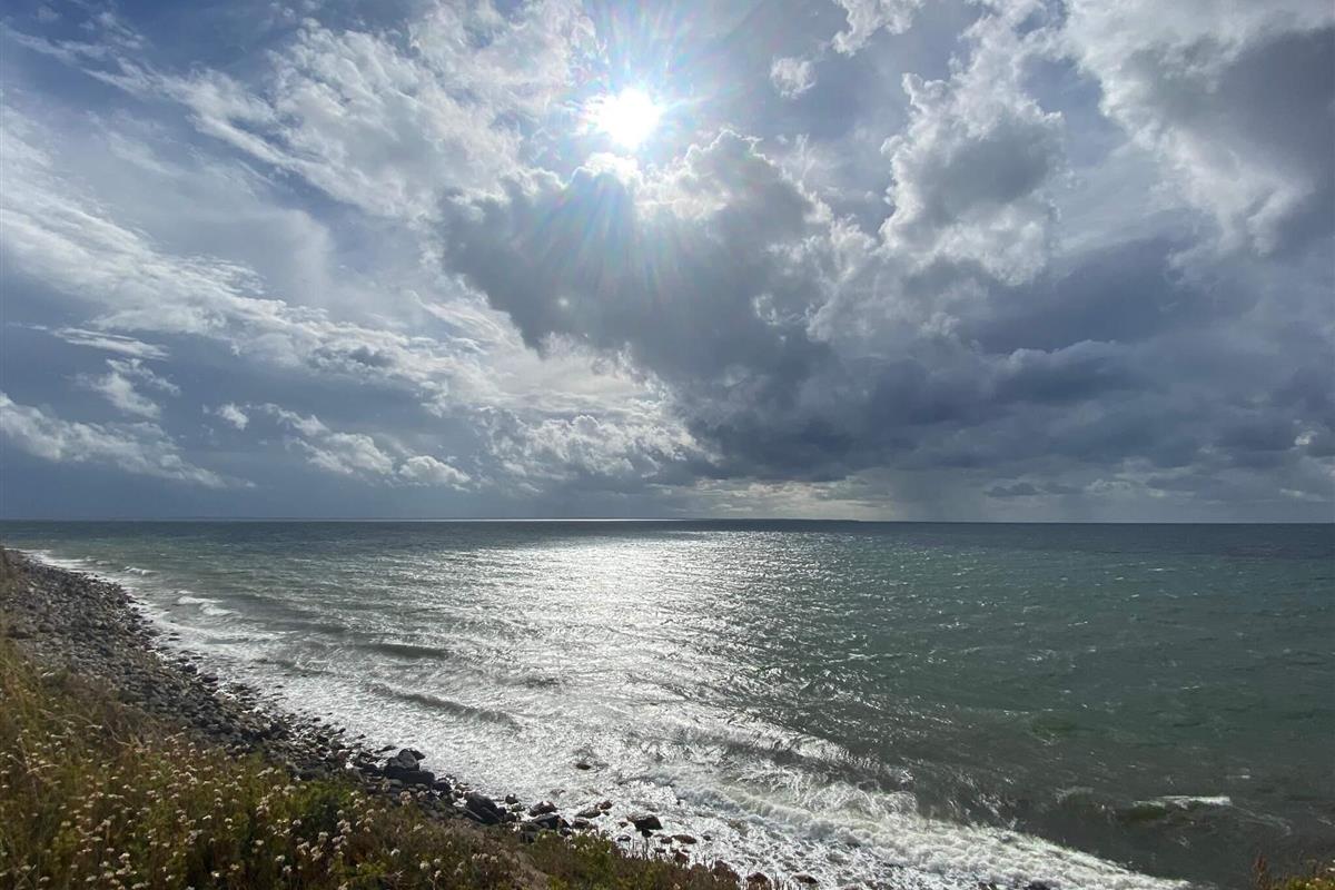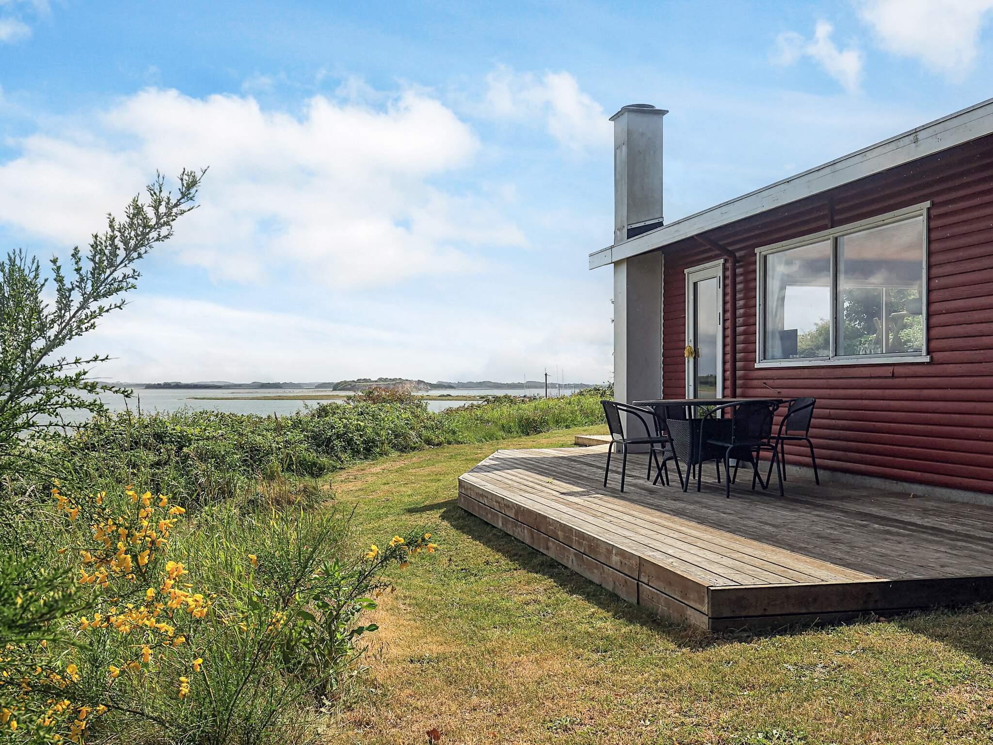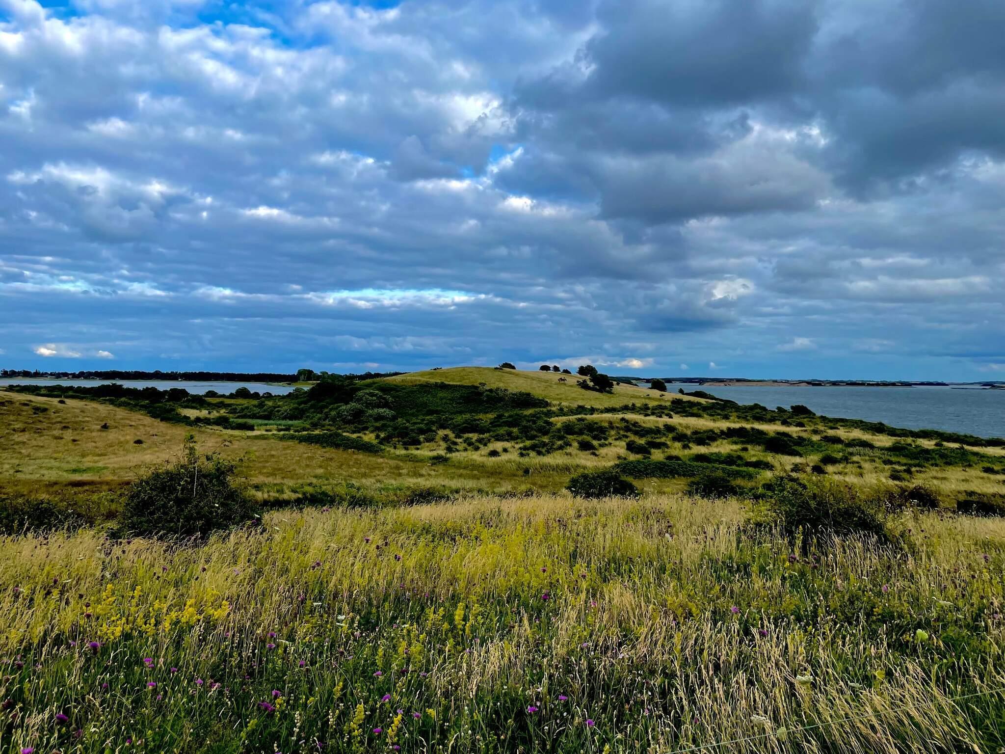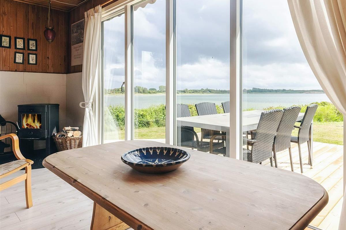 Ganz vorne in der ersten Reihe liegt auf einem etwas erhöhten und leicht abschüssigen Rasengrundstück dieses Ferienhaus mit herrlichem Panoramaausblick zum nahen Meer! Sie wohnen hier bei Fyns Hoved und können die wunderbare Aussicht sowohl vom Haus als auch von der Terrasse aus genießen. Es sind nur ca. 25 m zum Meer!