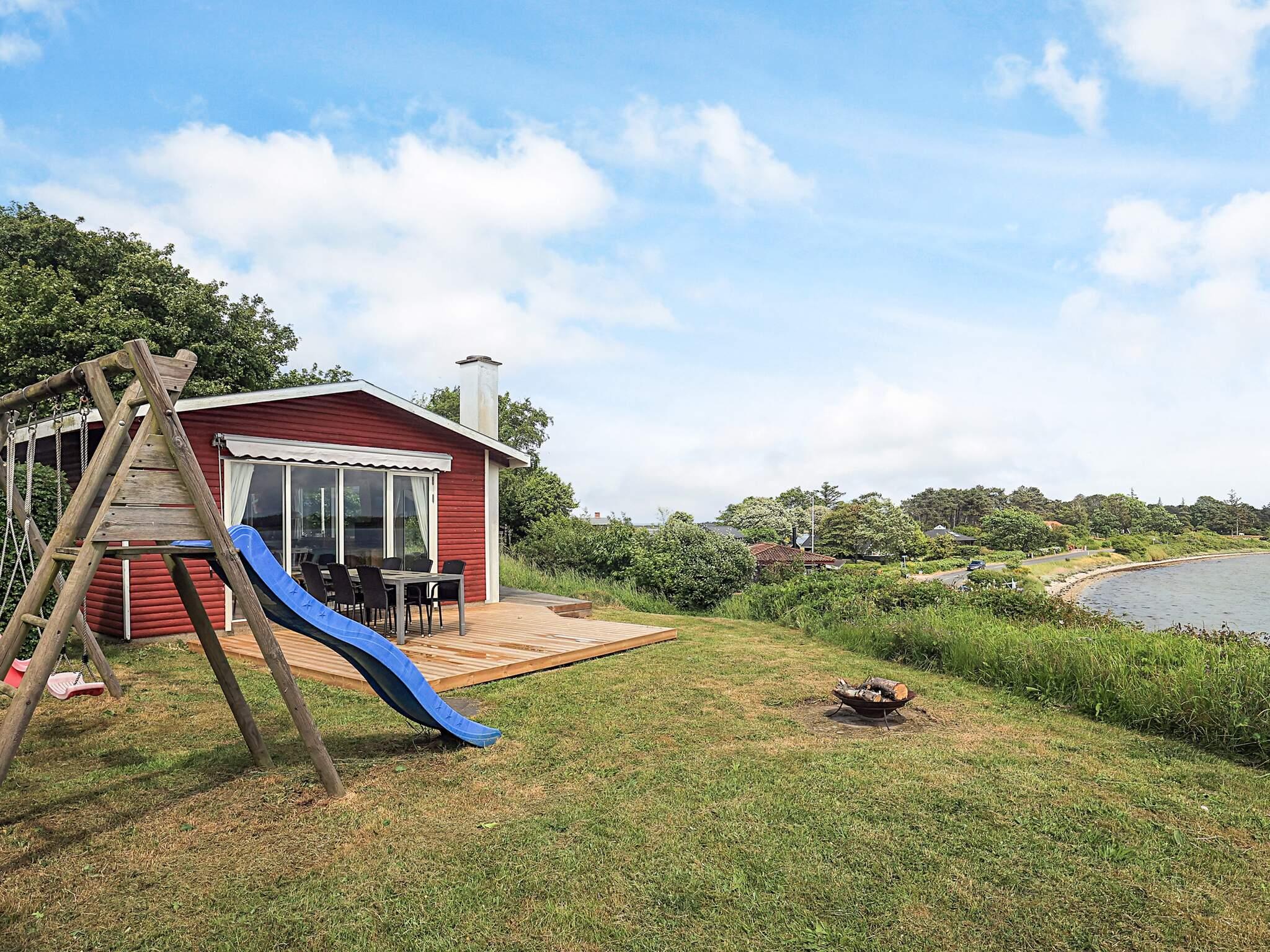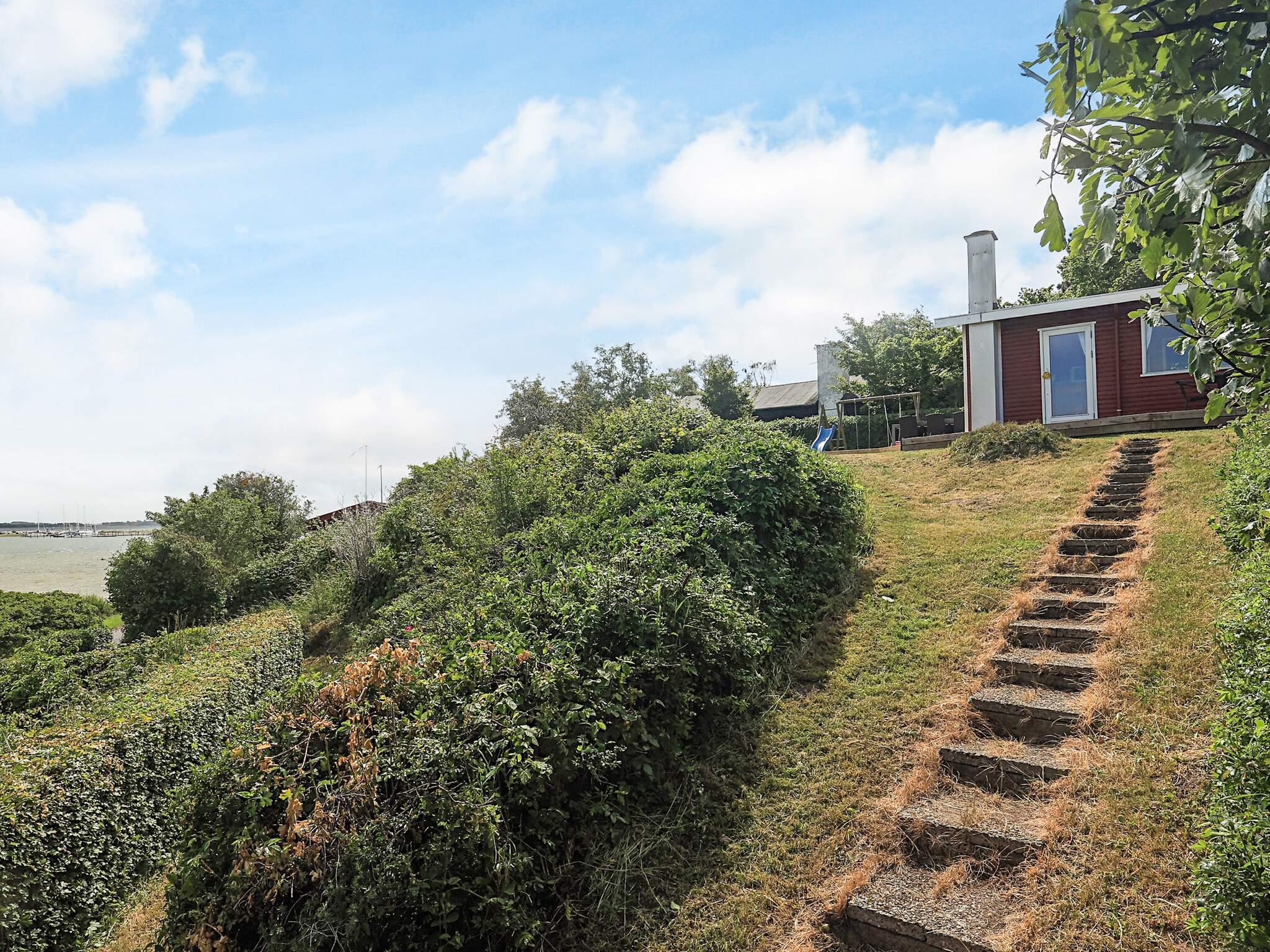 Das Ferienhaus liegt auf einem 1.000 m2 großen Naturgrundstück mit Schaukel. Das Strandufer unterhalb ist kinderfreundlich mit guten Bademöglichkeiten.
