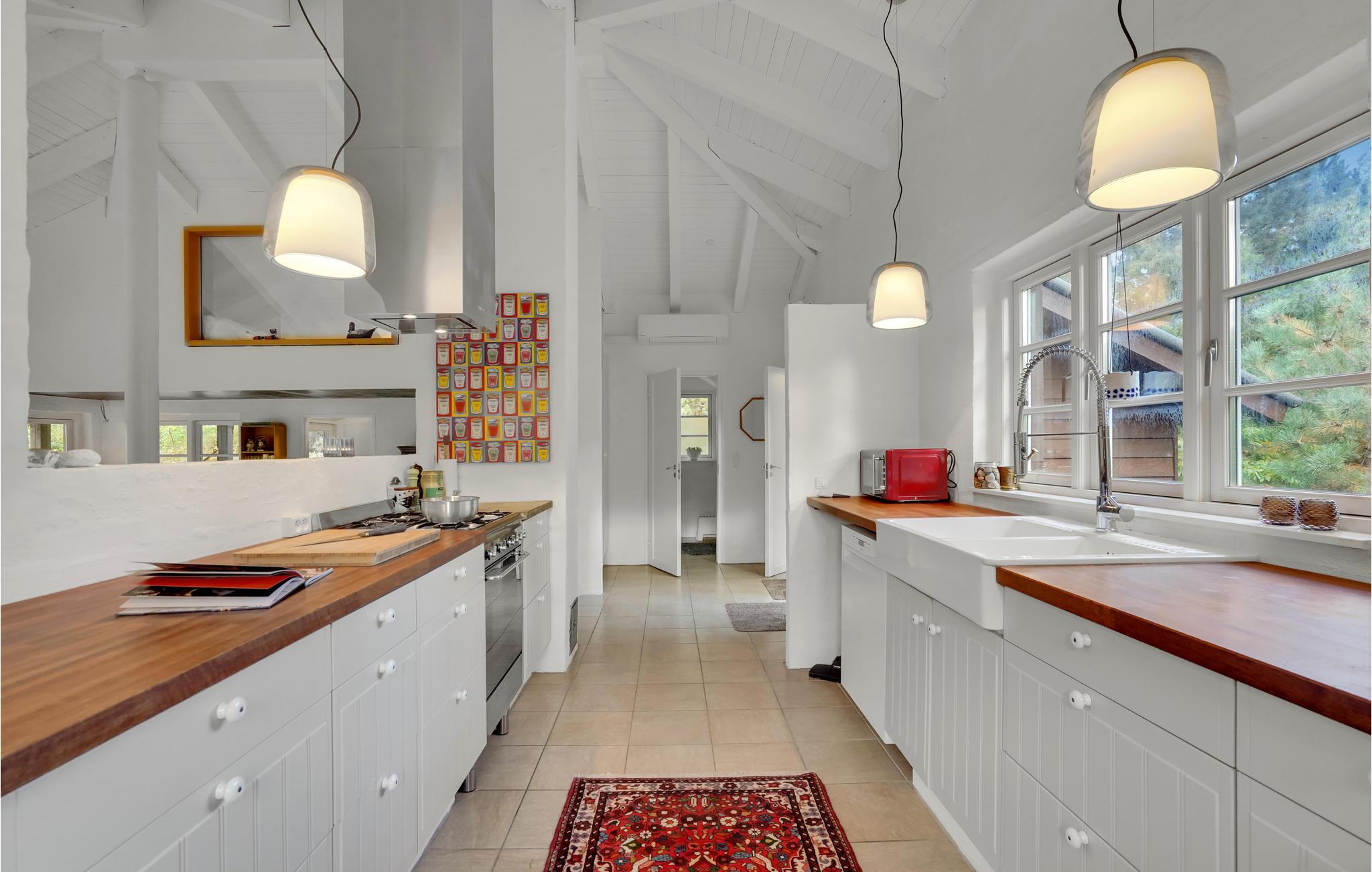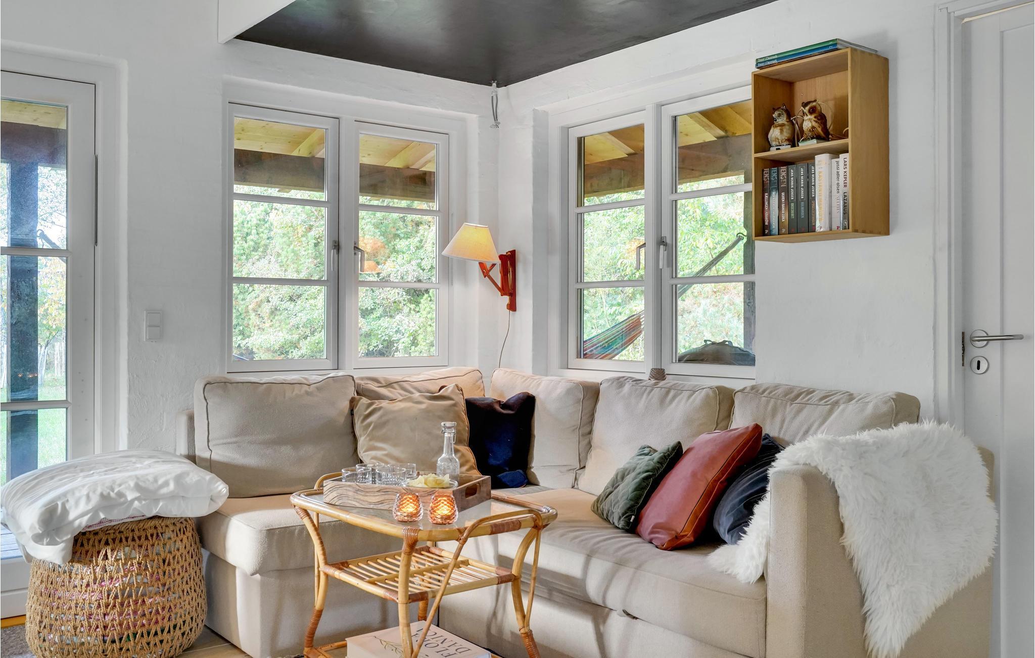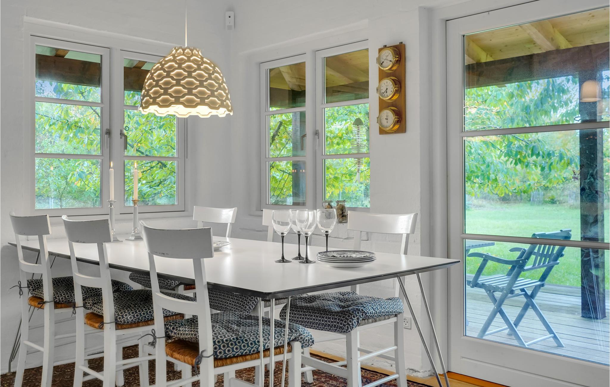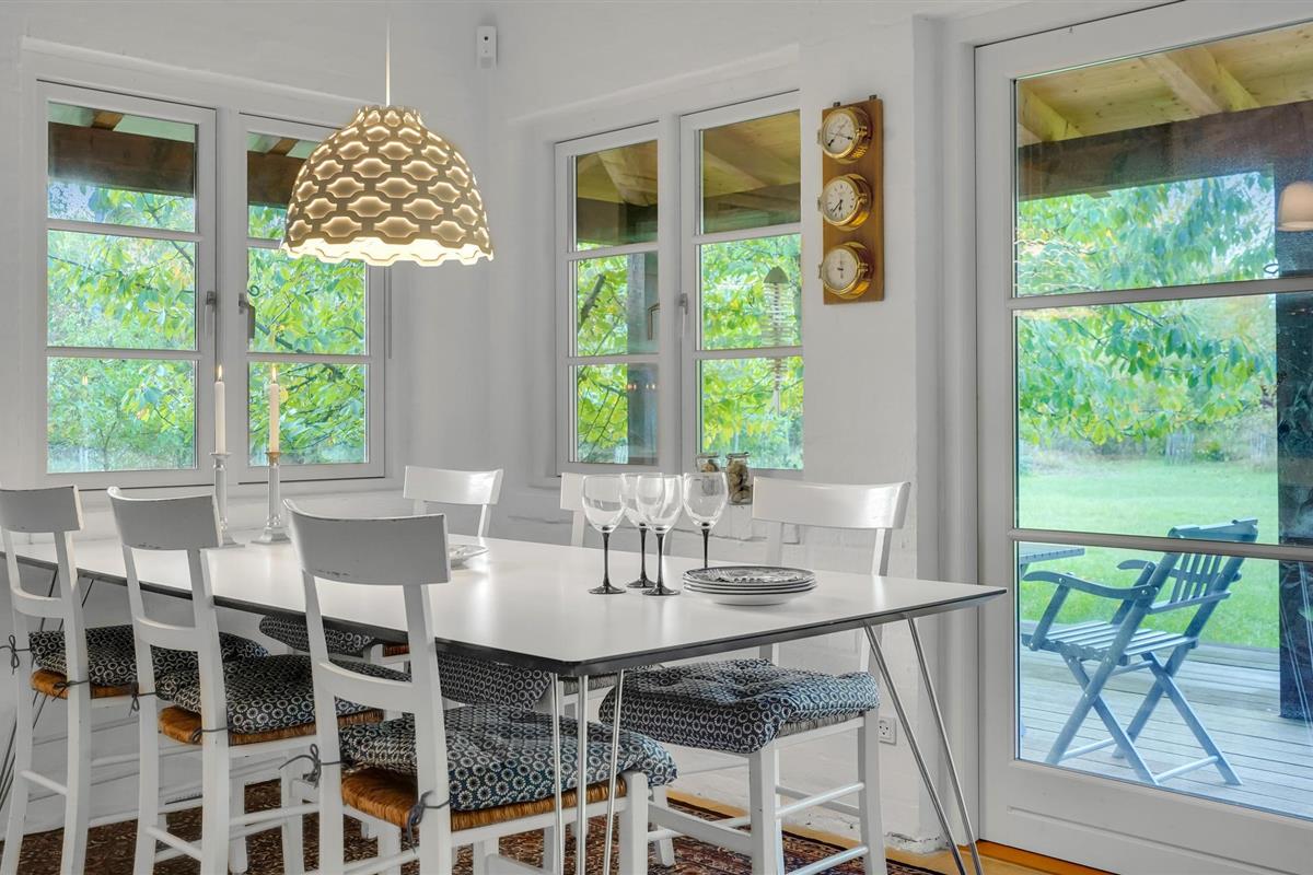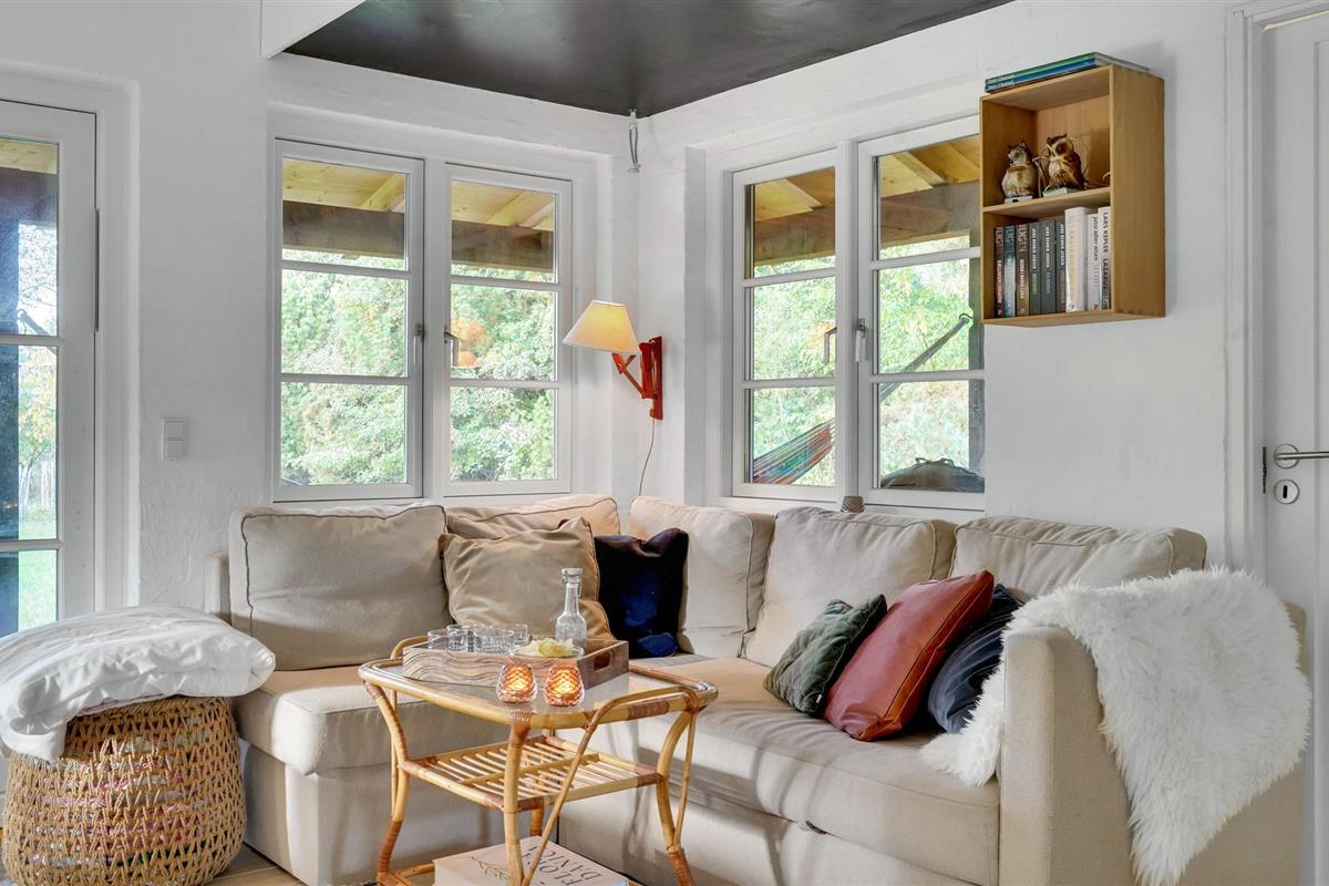 In een idyllische, natuurlijke omgeving heet dit mooie vakantiehuis u welkom. Het huis ligt op een rustig natuurperceel met bloembedden en bomen en biedt een licht, hoogwaardig interieur met alles wat u nodig heeft voor een comfortabel verblijf. Breng ontspannende uren door in de stijlvolle woonkamer, eet maaltijden met uitzicht op het groen en verwarm uzelf 's avonds voor de open haard terwijl u luistert naar het knisperende vuur.