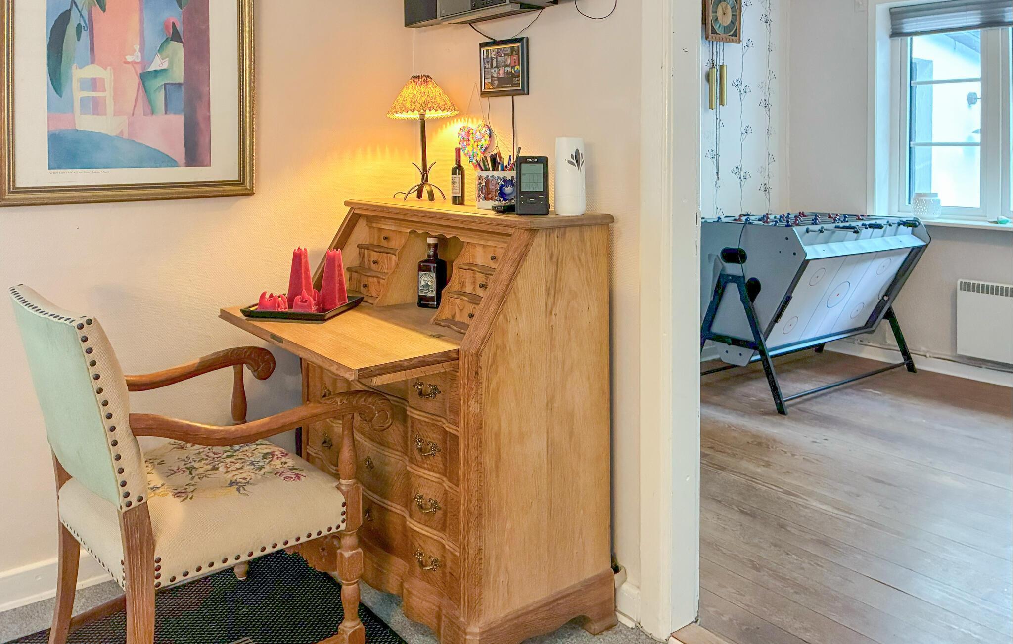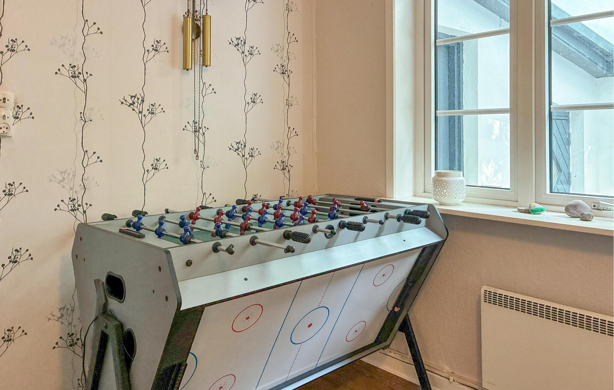 Hier vind je rust en talloze mogelijkheden om je vakantie afwisselend te maken. Maak het jezelf gemakkelijk in de gezellige woonkamer voor de houtkachel. Ontspan in de comfortabele fauteuils of op de bank en geniet samen van een goede film. Gebruik de eethoek voor uitgebreide maaltijden met familie of vrienden en bereid je maaltijden in de praktische keuken, die is uitgerust met diverse apparatuur. Ontdek de activiteitenruimte met tafelvoetbal en spelletjes, die vooral leuk is voor kinderen.