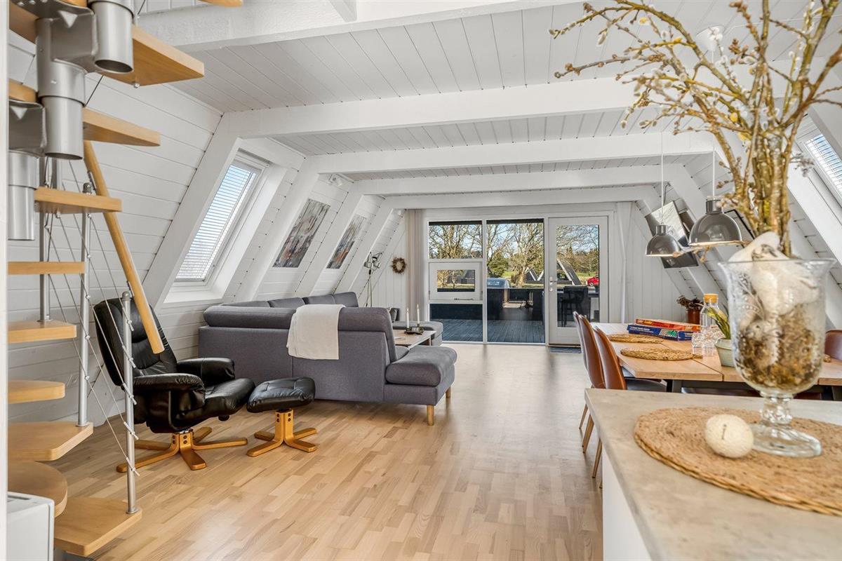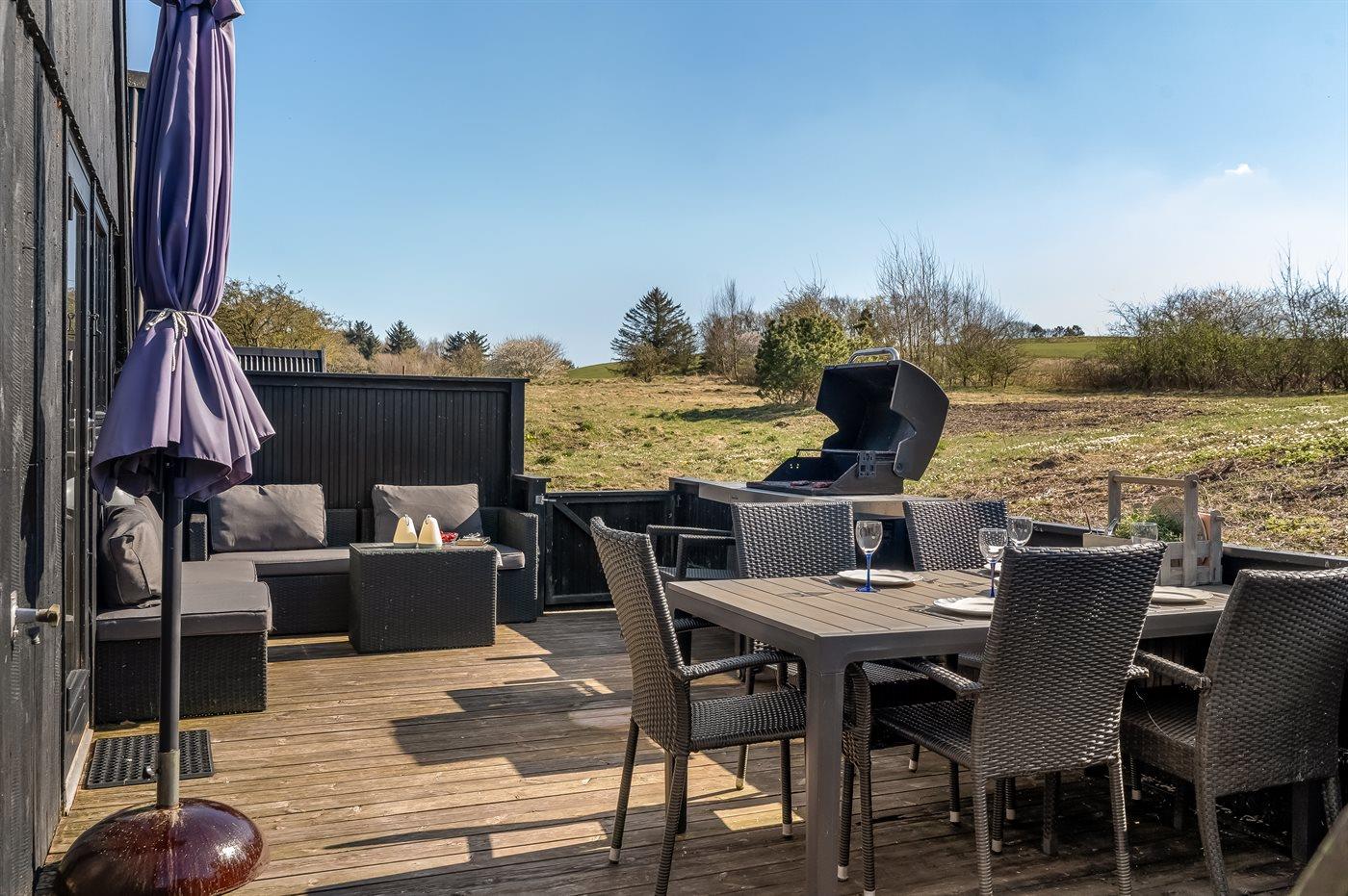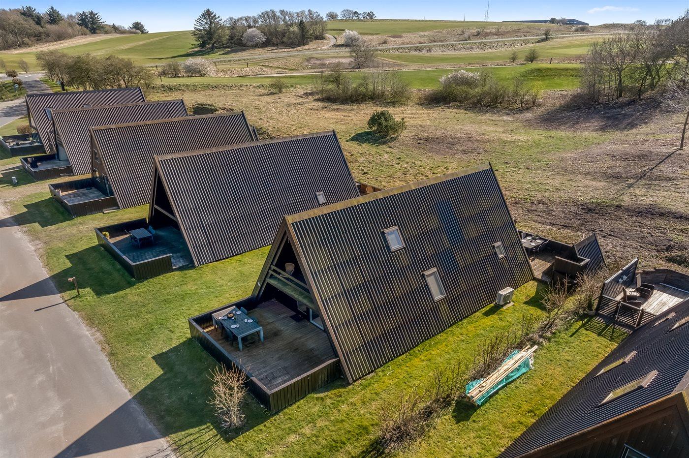 De vakantiewoning is gelegen op een 300 m² groot aangelegde tuin. Afstand tot de zee 35000 m. Afstand tot de fjord 16000 m. Dichtstbijzijnde winkel 5000 m. Er is een golfbaan op een afstand van 10 m. Bij de vakantiewoning hoort terras en beschut terras. Balkon. Parkeerplaats bij het huis.