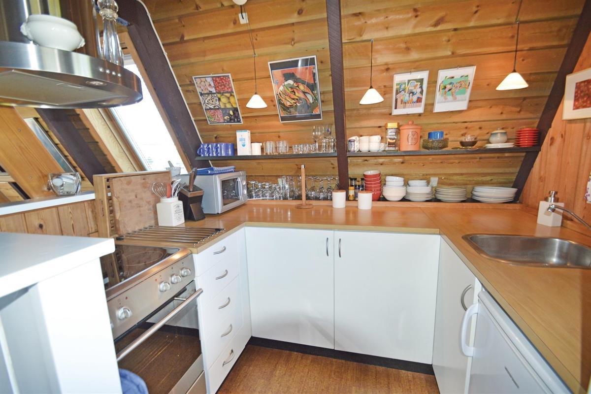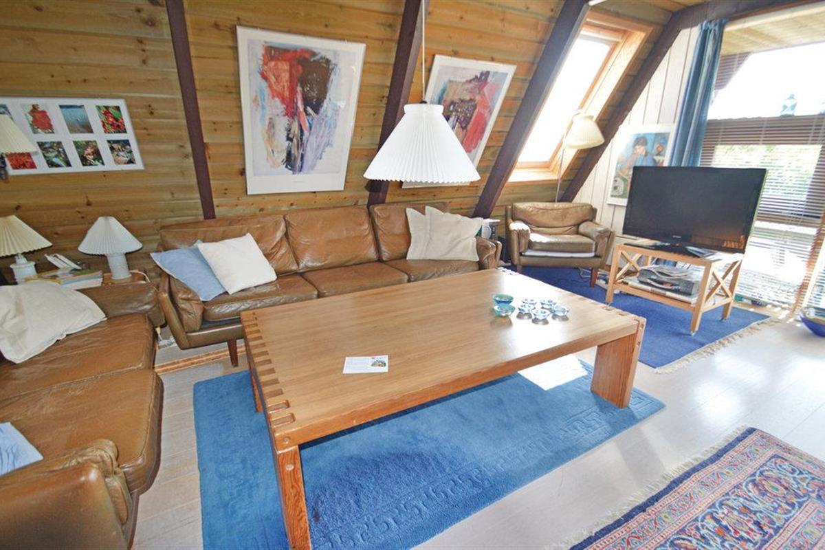 Stap binnen in een gezellige leefruimte omgeven door houten lambrisering, tapijten en lederen meubilair. Hier zult u het zeker naar uw zin hebben, want niet alleen het interieur staat in het teken van comfort, ook het open terras biedt u een ideale plek om te ontspannen, de zon op uw huid te voelen of samen met uw gezelschap te barbecueën en uw avonden langzaam te laten verstrijken.