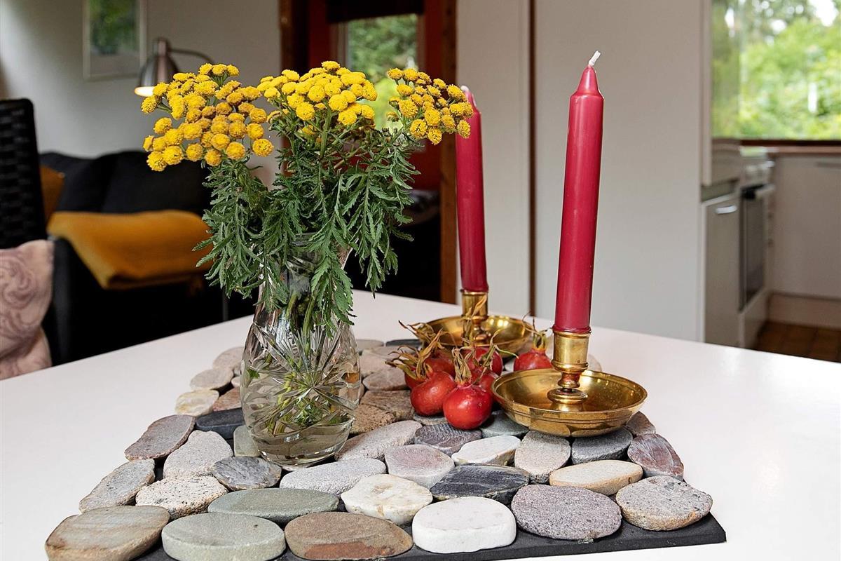 Im gemütlich eingerichteten Küchen-/Wohnbereich verfügen Sie sowohl über einen wärmenden Kaminofen, als auch über eine energieeffiziente Wärmepumpe. Zur Unterhaltung stehen ein Fernseher mit internationaler Programmauswahl sowie eine Stereoanlage mit CD-Player bereit. Die kleine Küche ist hell und mit allen wichtigen Hilfsmitteln, u.a. Geschirrspüler, eingerichet. Kleines Bad mit Dusche, Waschbecken und einer kleinen Waschmaschine. Das eine Schlafzimmer ist mit einem Doppelbett, das zweite mit zwei Einzelbetten eingerichtet.