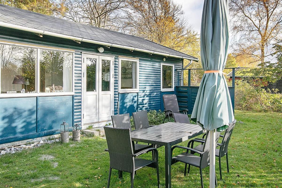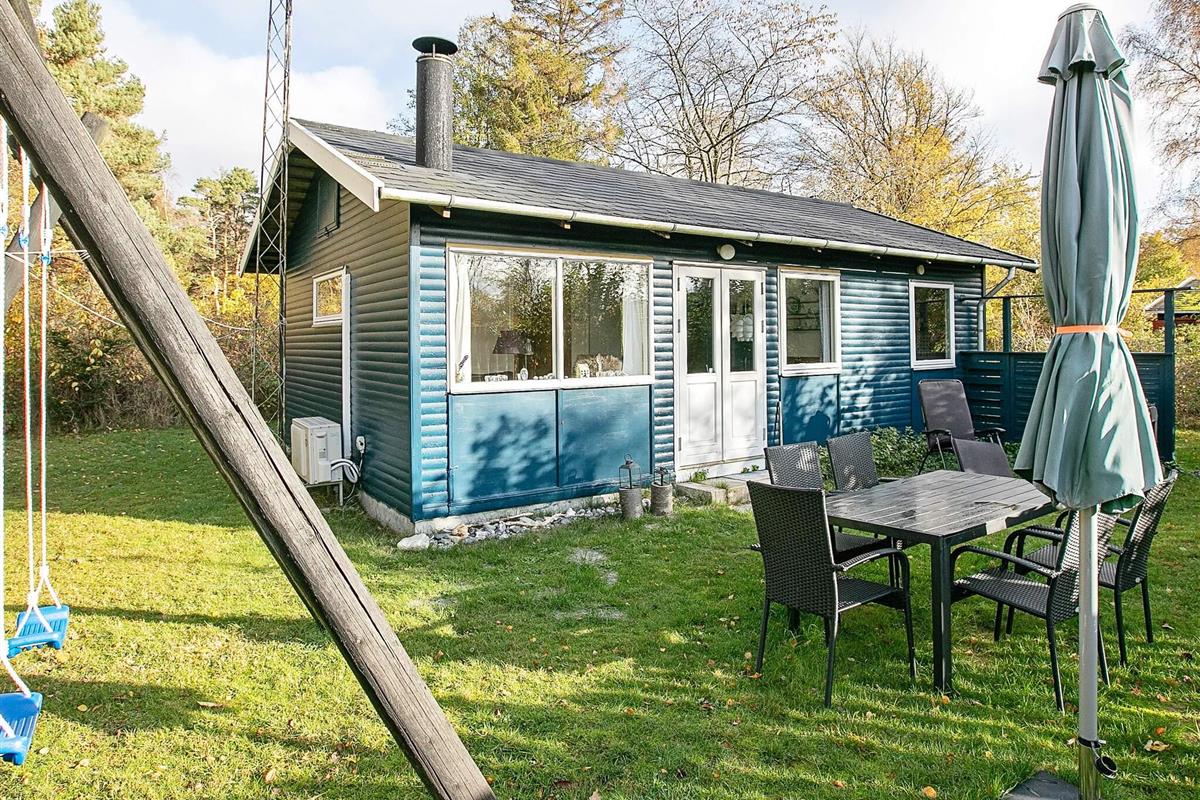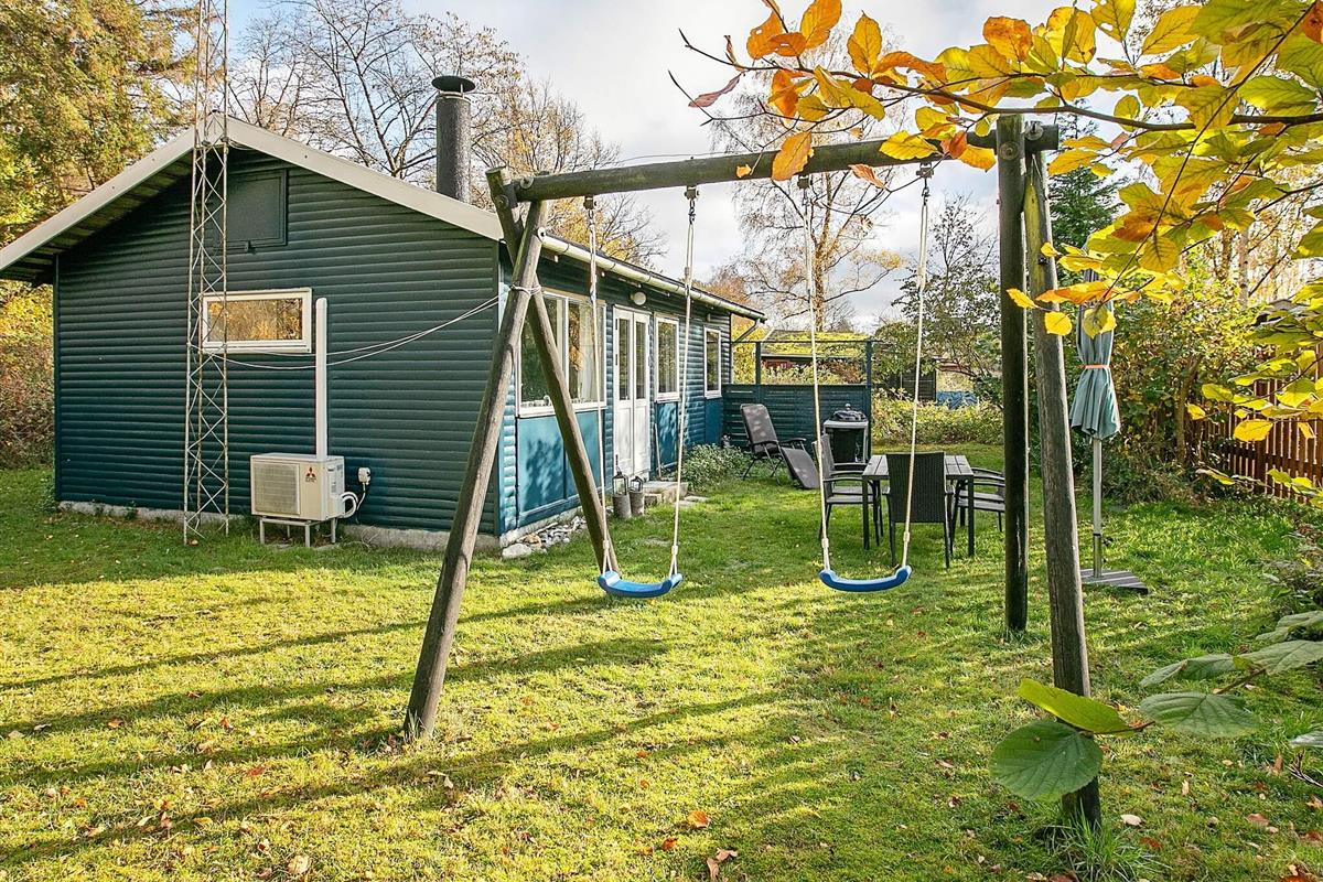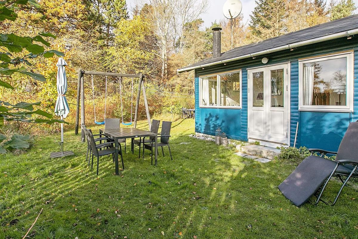 Das Ferienhaus liegt auf einem schön geschützten Naturgrundstück mit Schaukel und einer gefliesten Terrasse mit Gartenmöbeln und Grill.