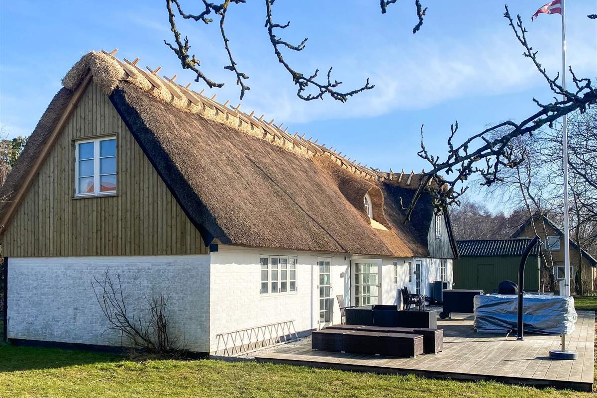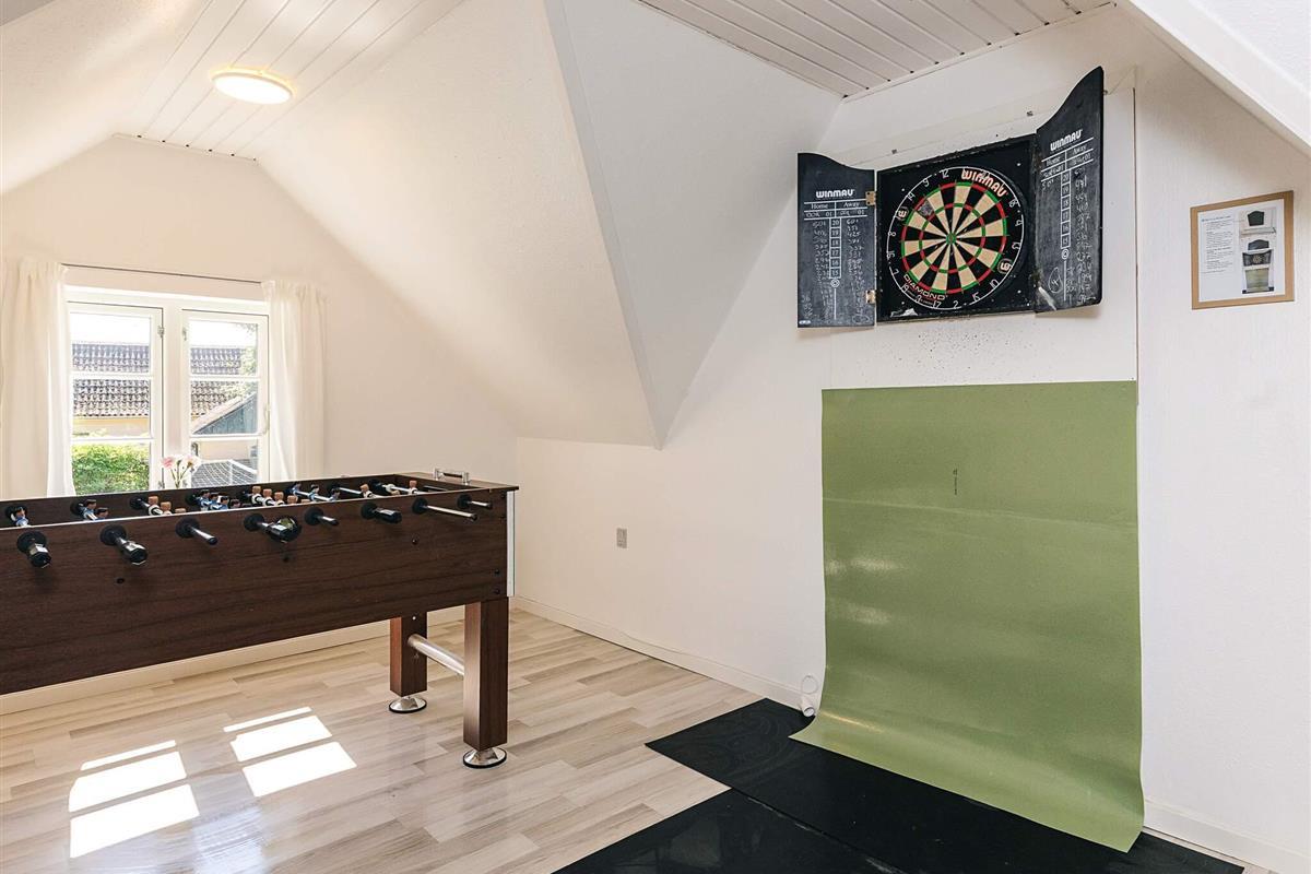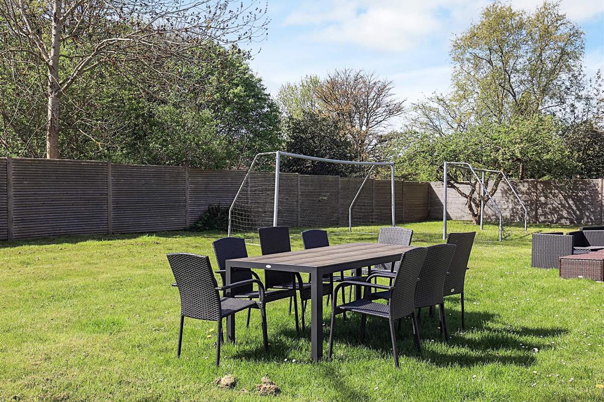 Im großen Garten können Sie Fußball mit Tor spielen oder das Leben auf der großen Holzterrasse genießen, wo es einen Außenwhirlpool und eine Außendusche, einen Grill und Sonnenliegen sowie Gartenmöbel gibt. Wenn Sie gerne angeln, gibt es einen Filetierbereich und einen Gefrierschrank mit einem Fassungsvermögen von mindestens 60 Litern. Bis zur Küste, wo Sie schwimmen und angeln können, sind es etwa 1,5 km. Gedesby Strand ist ein guter, kinderfreundlicher, breiter Sandstrand.