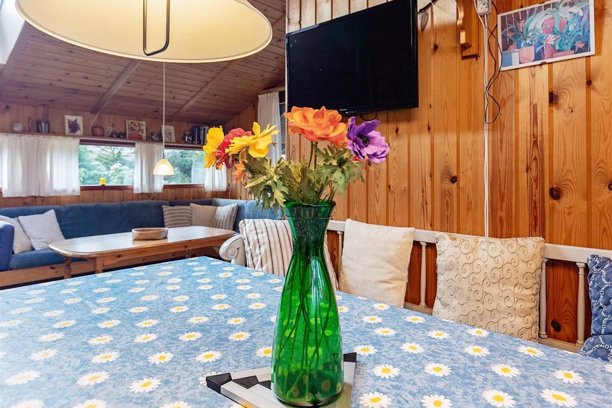 Gut instand gehaltenes Ferienhaus bei Gedesby. Liegt auf einem schön begrünten Naturgrundstück mit Bäumen. Zur Verfügung steht sowohl eine überdachte Holzterrasse als auch eine offene Terrasse für z.B. sonnige Grillabende. Zum Haus gehört ein gut eingerichteter Annex mit zwei Schlafplätzen und Heizung. Keine Vermietung an Jugend- oder Handwerkergruppen erwünscht!