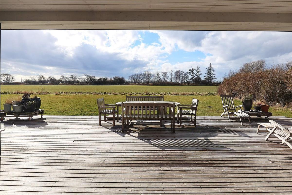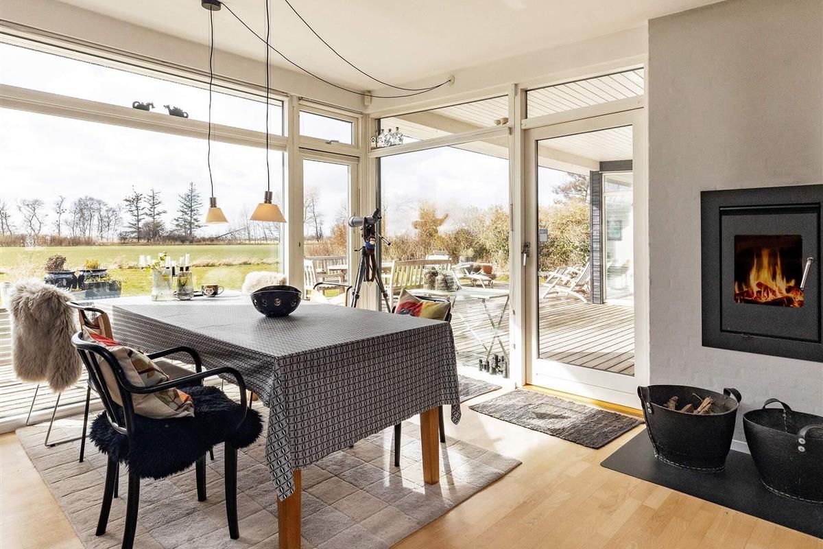 Gepflegt und hell eingerichtetes Ferienhaus mit Whirlwanne und Sauna für Wellness und Erholung. Liegt in einem Ferienhausgebiet bei Gedesby, mit Blick auf die Felder vom Wohnzimmer und der Terrasse sowie vom Whirlpool aus.