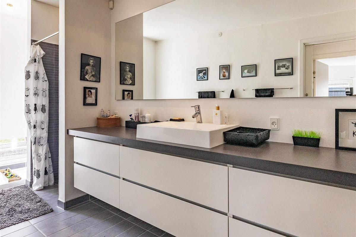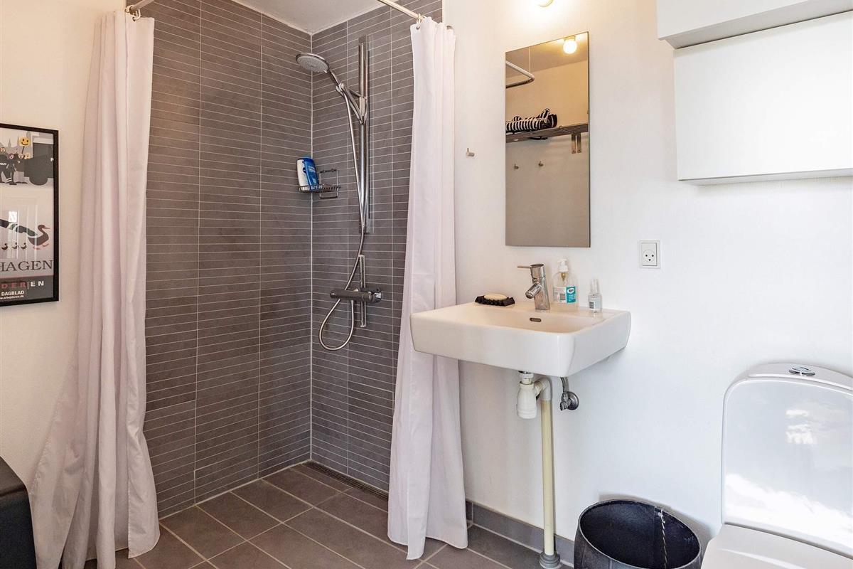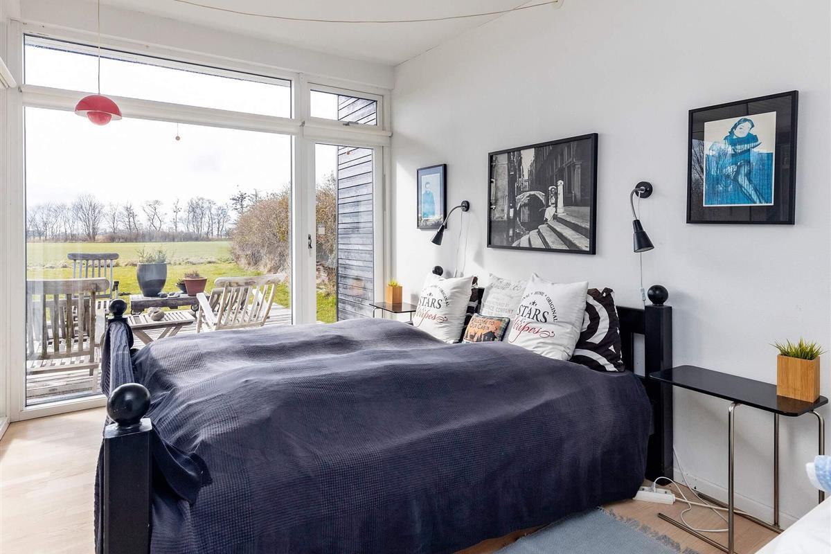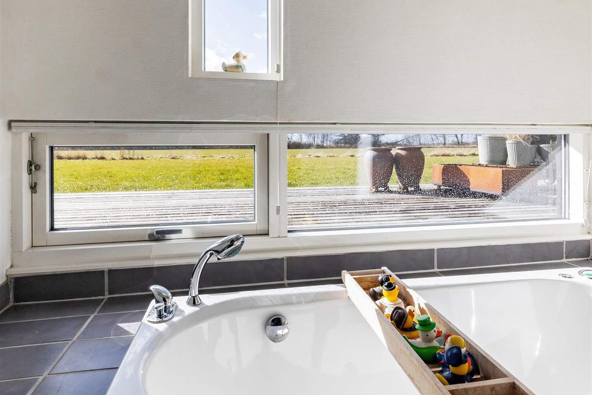 Großes, schönes Nebengebäude (Annex) mit Eingangsbereich mit Waschmaschine und Wäschetrockner. Außerdem gibt es ein Badezimmer mit WC, Waschbecken und Dusche im Annex sowie ein helles Zimmer mit einem Doppelbett und Zugang zu einer Terrasse mit Blick in den Garten und zu den Feldern ringsum.