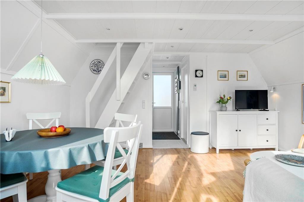 Das Haus ist mit einer Küche mit Kühlschrank, Backofen, Dunstabzugshaube und Wasserkocher ausgestattet. Badezimmer mit Fliesenboden, Toilette, Waschbecken und Dusche. Ein schönes helles Wohnzimmer, das auf der einen Seite mit einem Essbereich und auf der anderen Seite mit einem Sofa und einem TV-Bereich unterteilt ist. Im Wohnzimmer führt eine Treppe in den 1. Stock, wo sich die 2 Schlafzimmer des Hauses befinden. Beide Schlafzimmer sind mit 2 Einzelbetten ausgestattet. Vom Wohnzimmer aus haben Sie auch Zugang zur schönen geschlossenen Terrasse, von der aus Sie auf das Wasser blicken können.