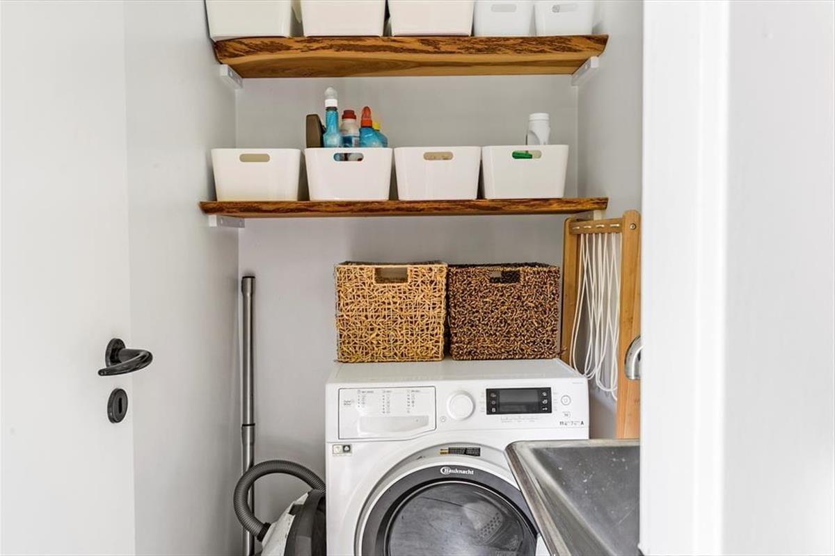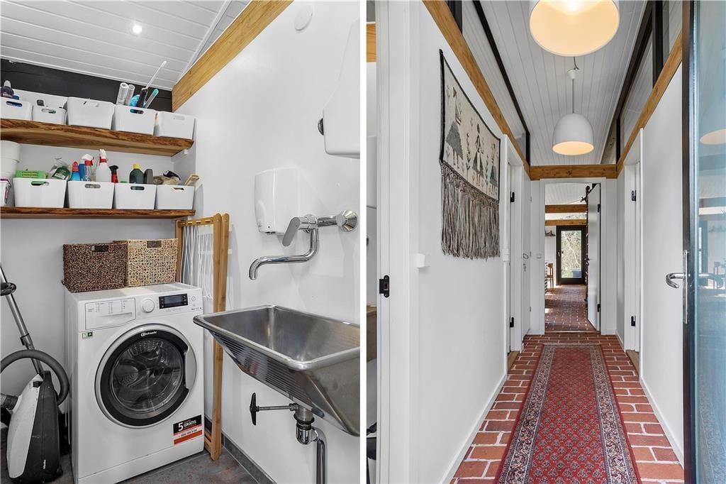 Willkommen in der hellen Eingangshalle, Hauswirtschaftsraum mit angrenzender Waschmaschine/Trockner.