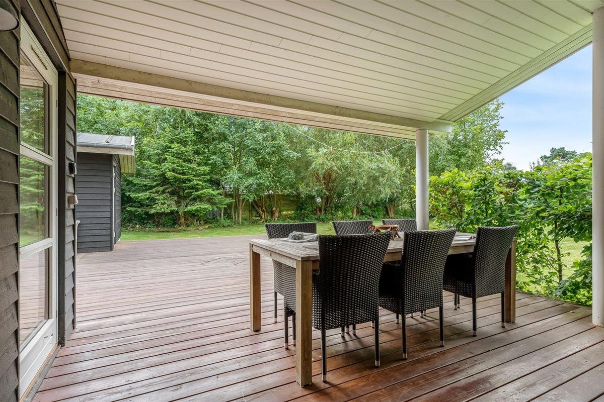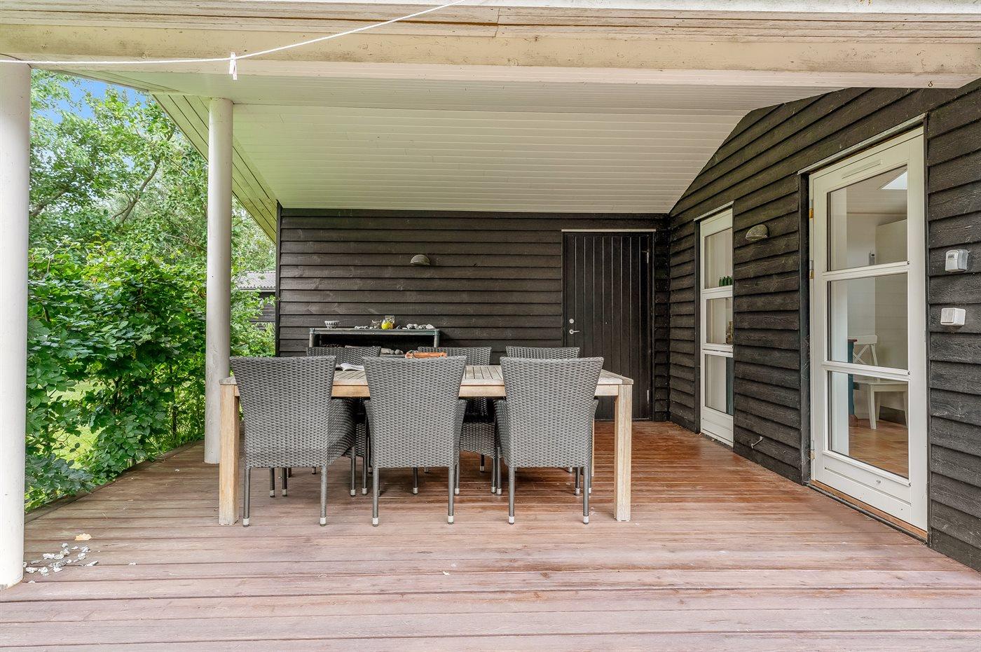 De vakantiewoning is gelegen op een 1043 m² groot aangelegde tuin. Afstand tot de zee 500 m. Dichtstbijzijnde winkel 3500 m. Bij de vakantiewoning hoort 40 m² terras. Daarnaast is er een 14 m² groot overdekt terras. Parkeerplaats bij het huis.