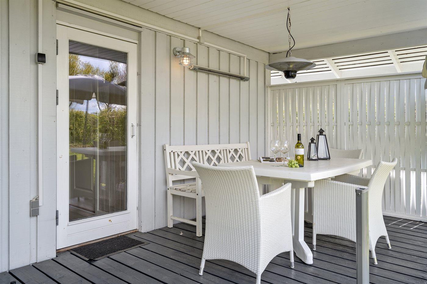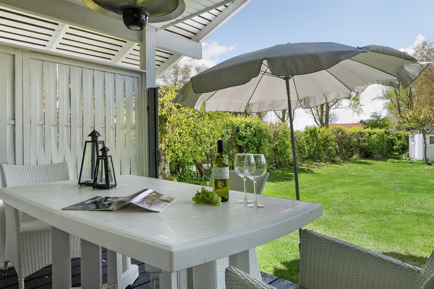 De vakantiewoning is gelegen op een 1090 m² groot aangelegde tuin. Afstand tot de zee 495 m. Dichtstbijzijnde winkel 6200 m. Bij de vakantiewoning hoort 20 m² terras. Daarnaast is er een 15 m² groot overdekt terras. Schommel. Zandbak. Parkeerplaats bij het huis.